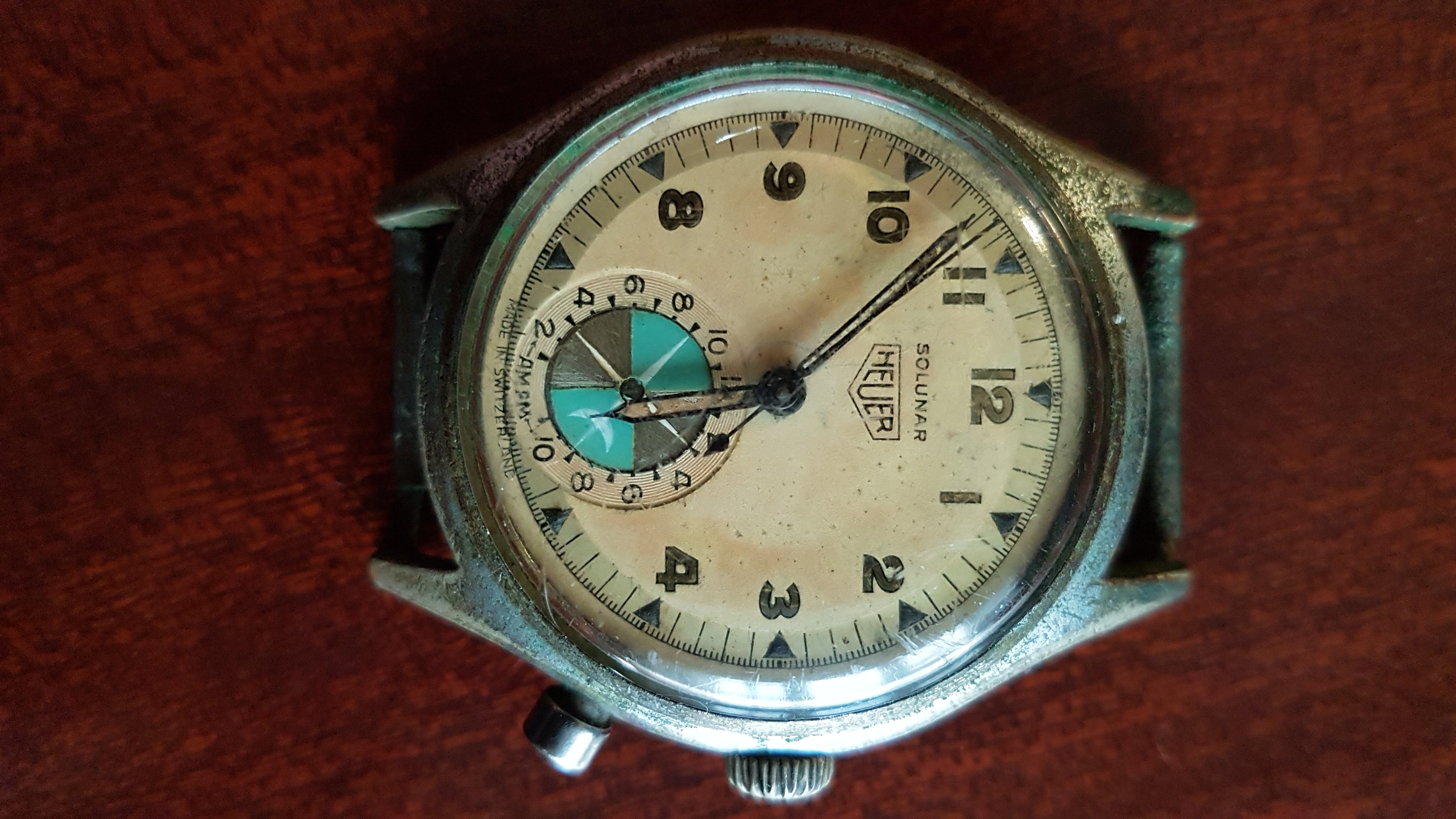 Just came up with this today in my parents' place. I have close to zero knowledge of vintage watches, but comparing with online pics it seems that the hands are not correct and the dial is not 100% accurate. Any chance this could be a genuine 1949 Solunar? Any help would be much appreciated.