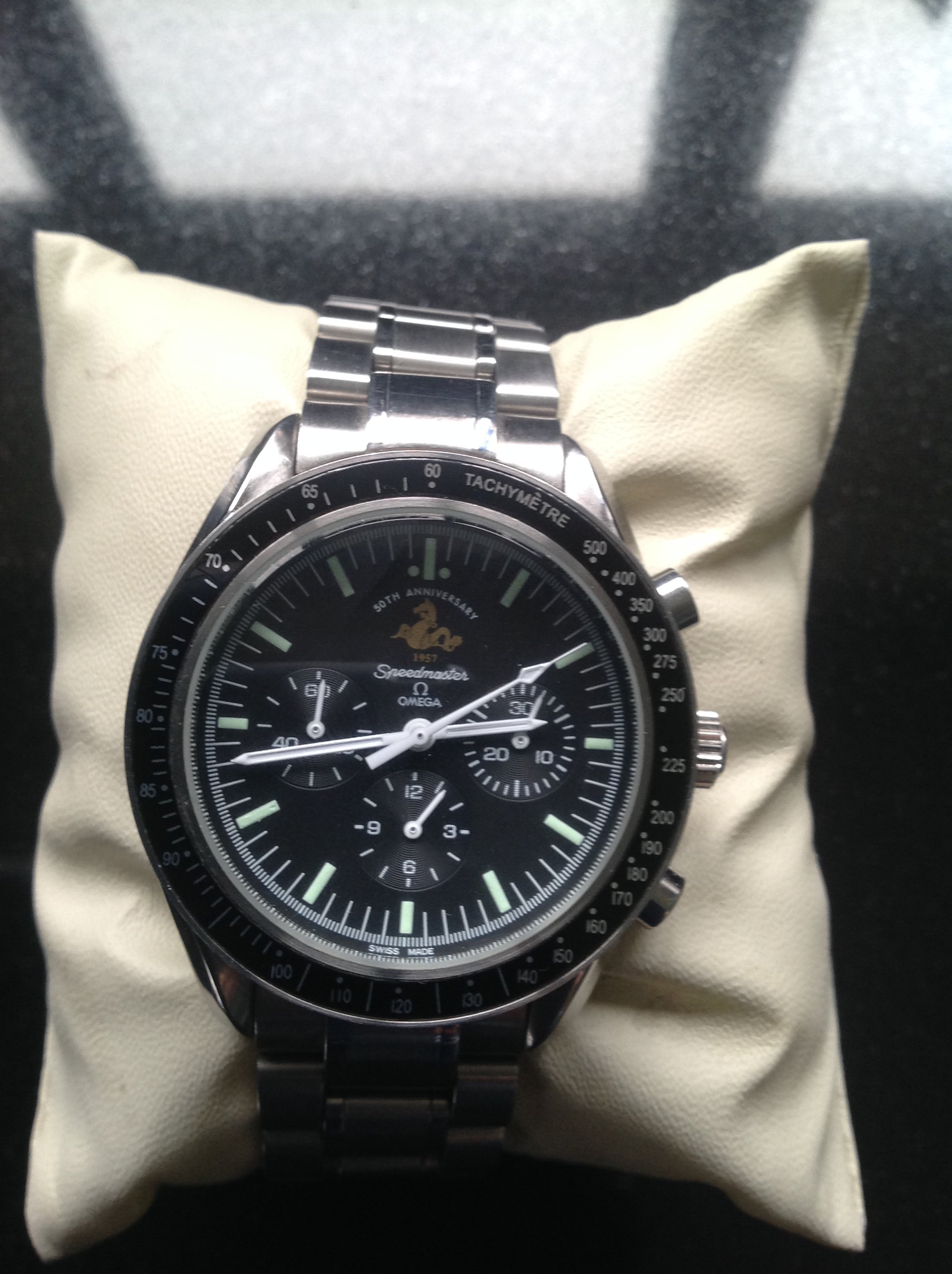 A limited limited 50th Anniversary Schumacher-Moonlanding-World Champion Speedmaster. I wonder how anyone can create this with his hands tied on the back...