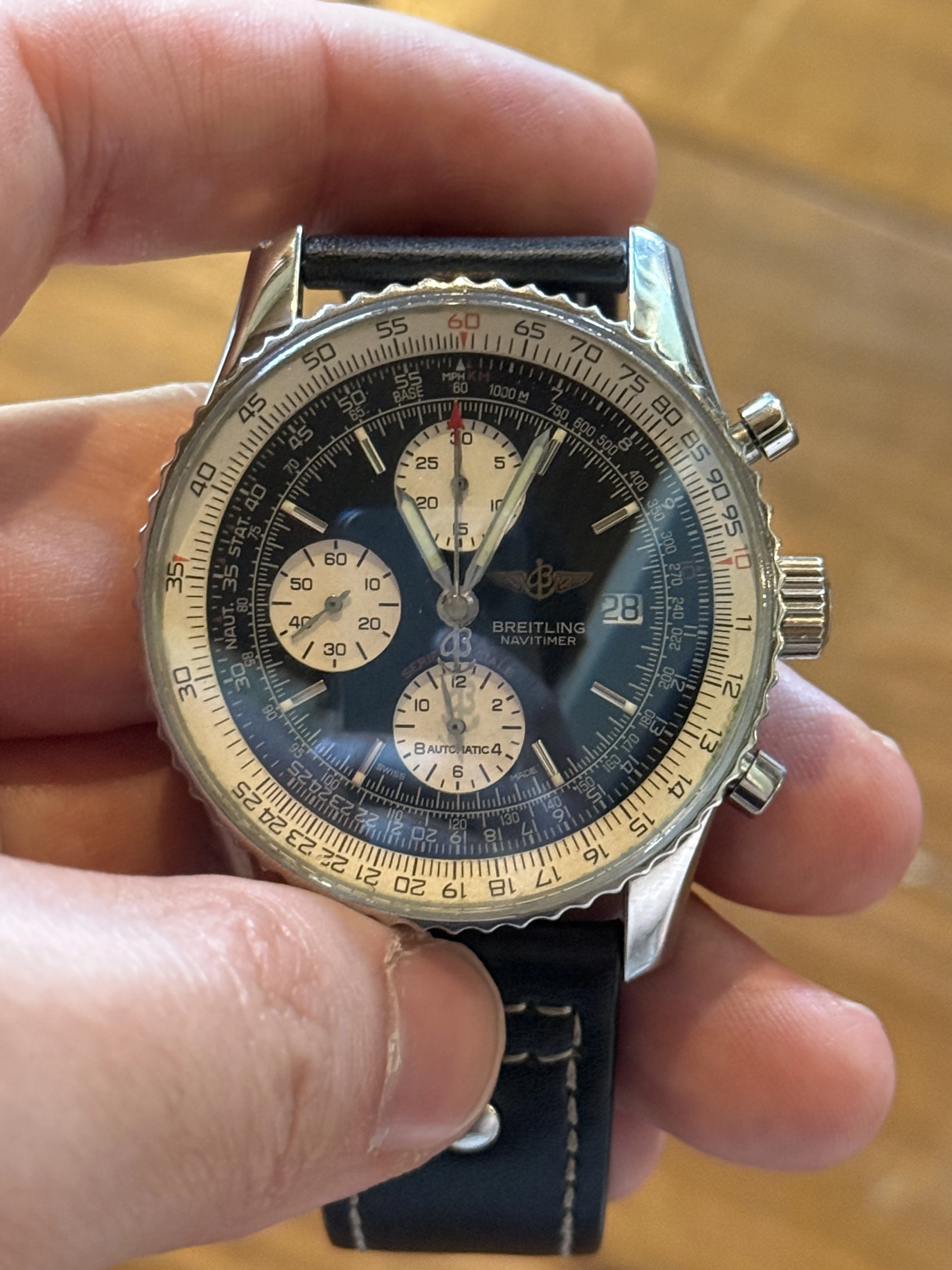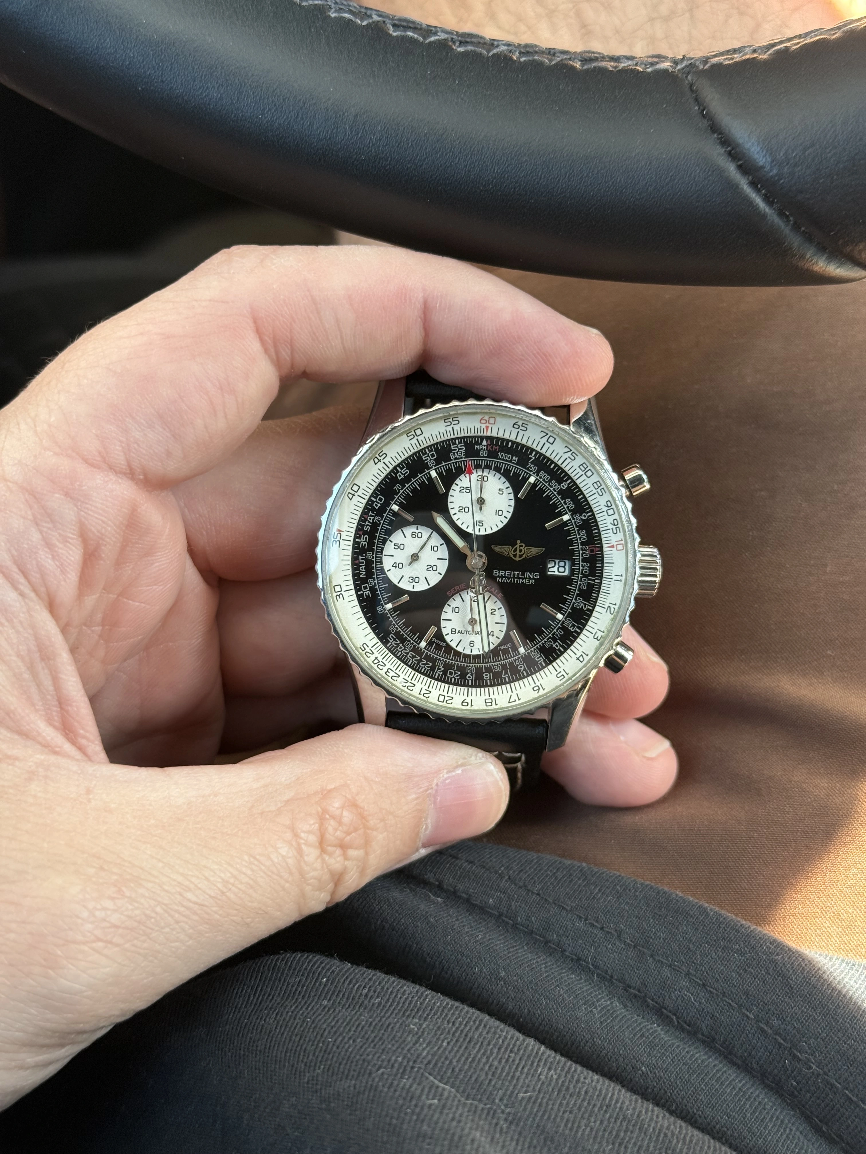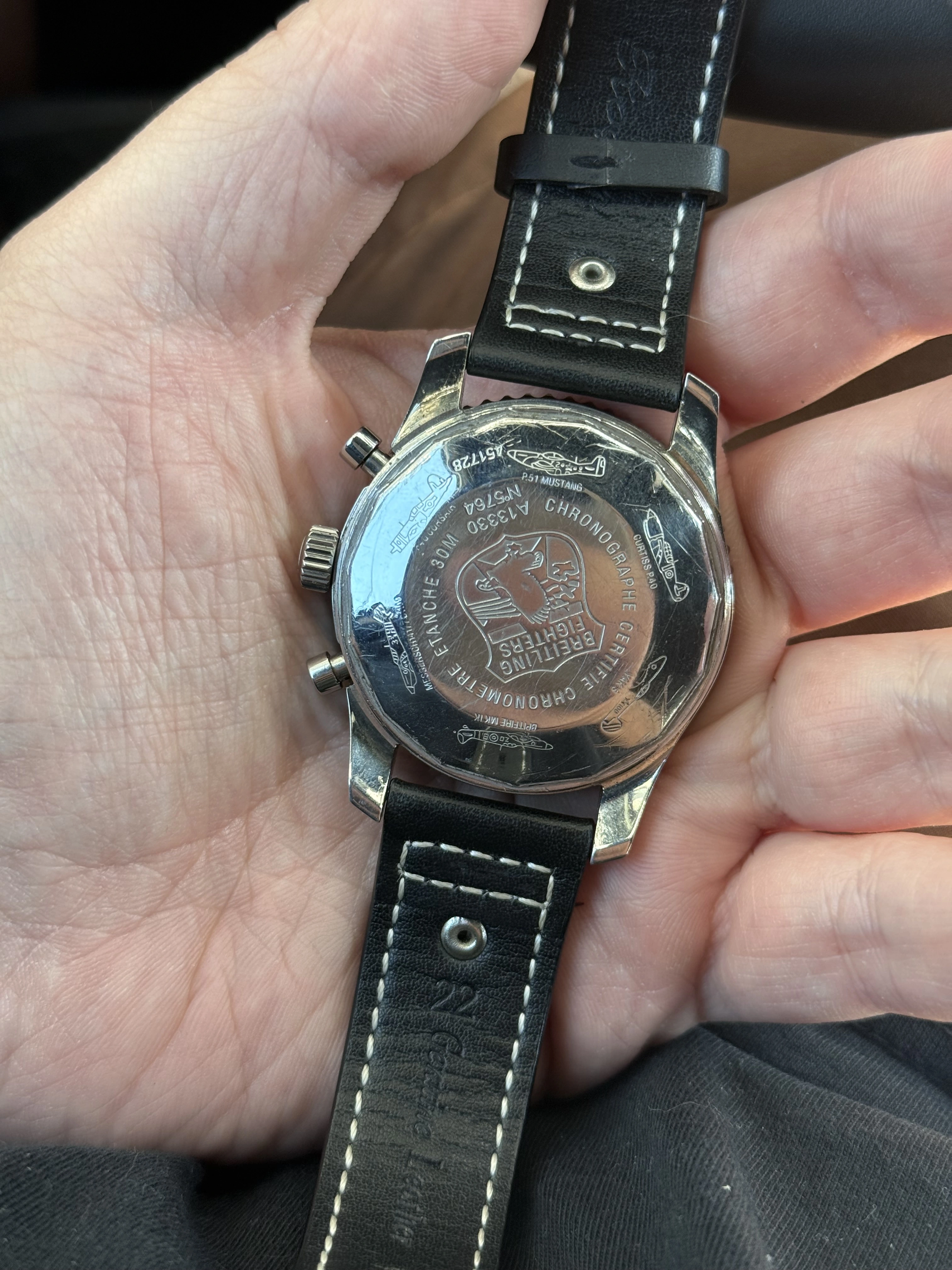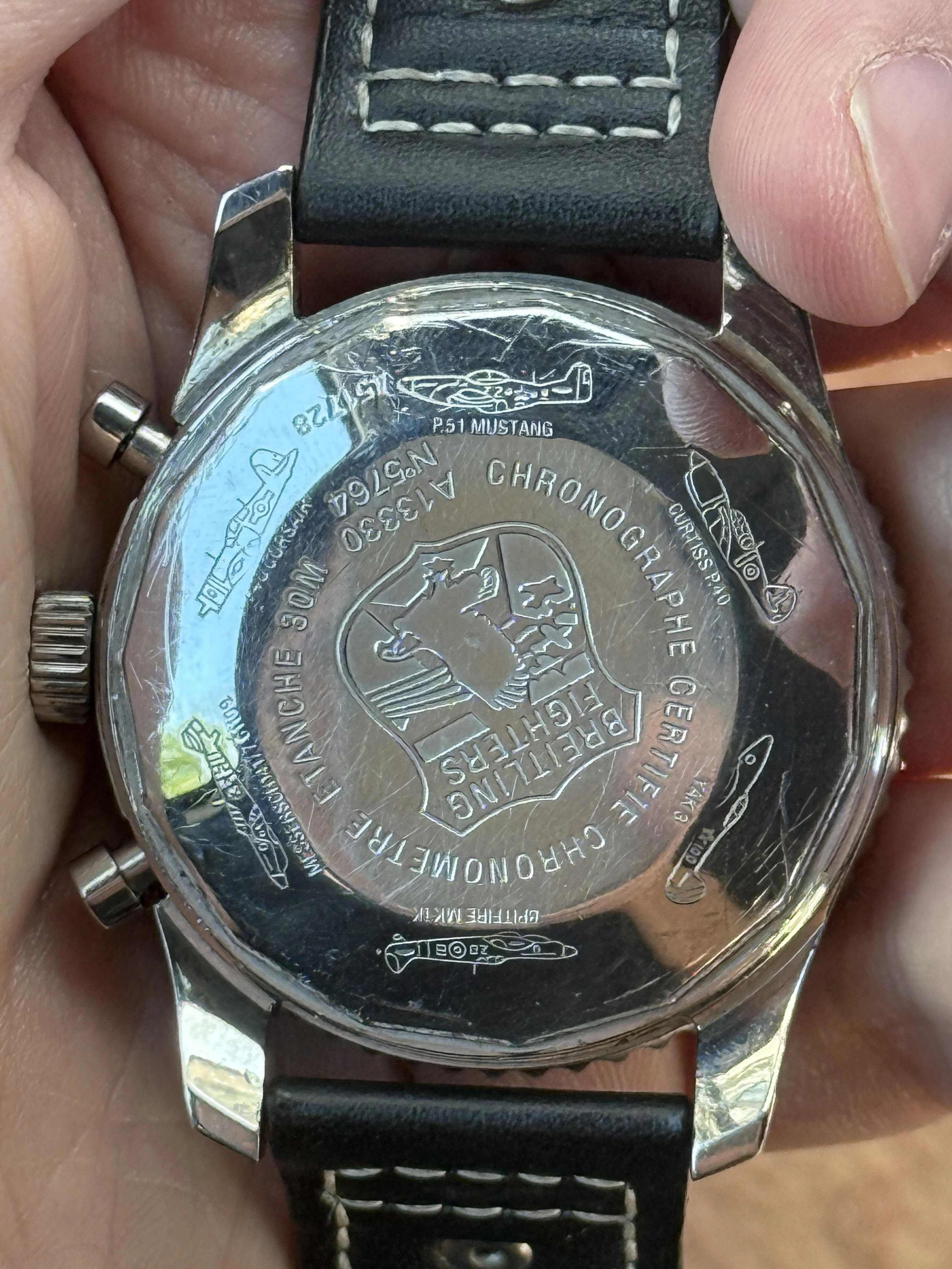 Date window horrible, every single font is wrong when compared to genuine versions of the A13330, slide rule bezel numbers are printed in the wrong location (especially the 40), caseback planes are too close to the center and they use "." instead of "-" for the plane names.... all signs pointing to fake. You should open the caseback to confirm, but it's not looking good for you.