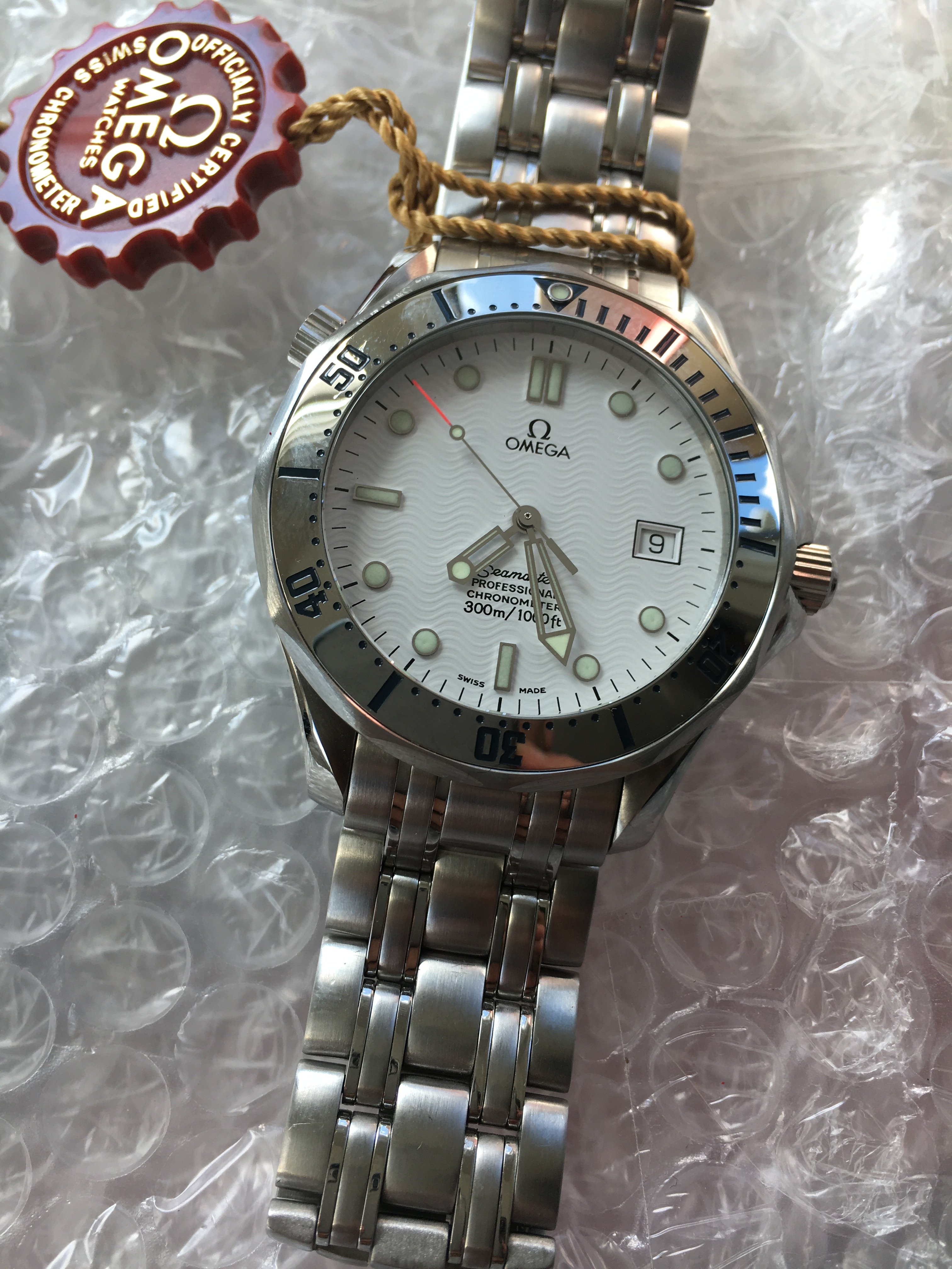 Hi all. I just received this watch through an eBay purchase: Seamster 2532.20. The seller was reputable and claimed to be the only owner. They have the card from the AD they bought it from in 1999, and the original box and kit, but no pictograph card or serial number card. I've noticed there is no serial number on the lug either as I see on most Seamasters. Is this normal?? I though Omega always makes the serial visible someplace. Any info would be appreciated. Please let me know if you need more photos.