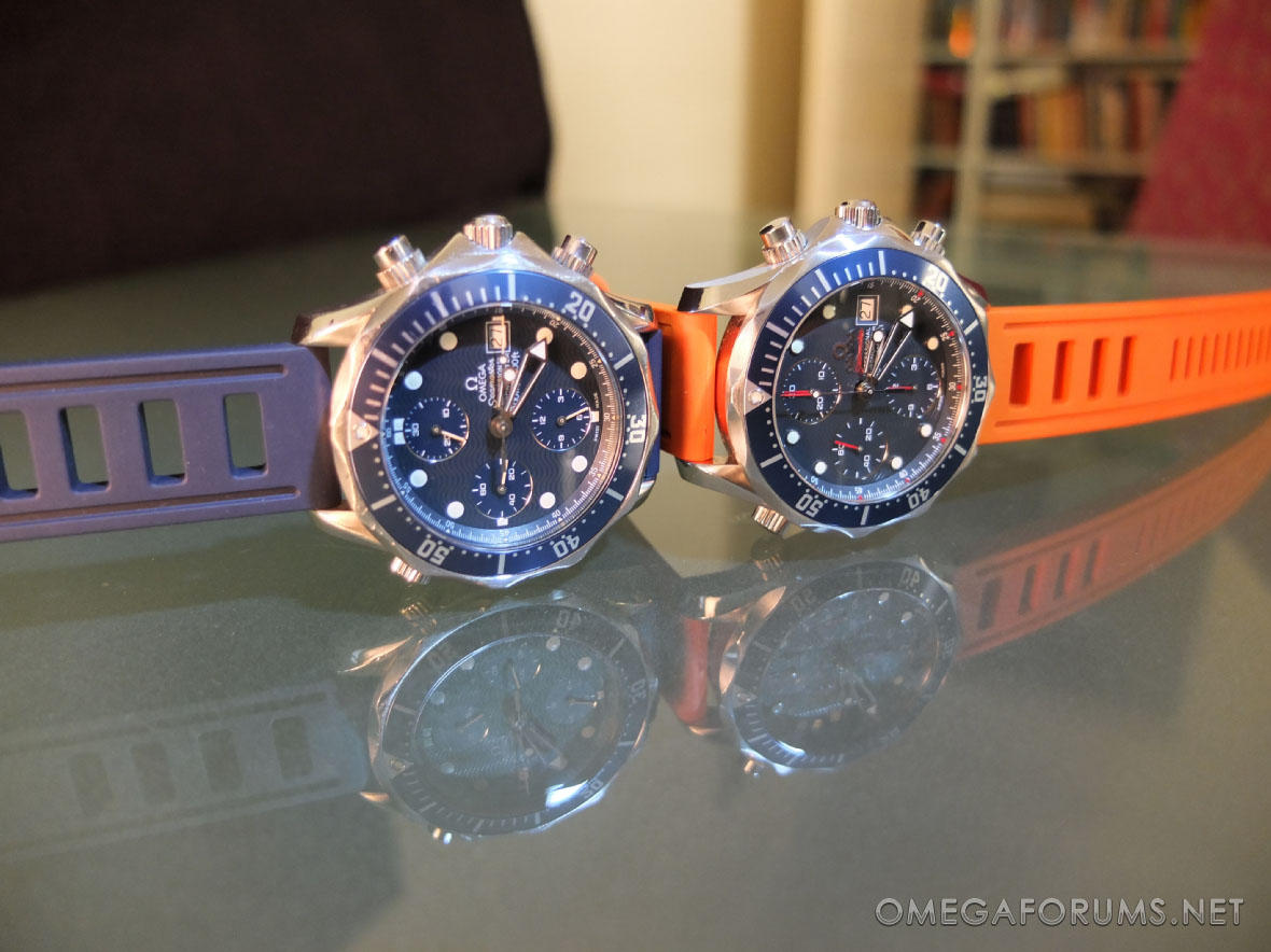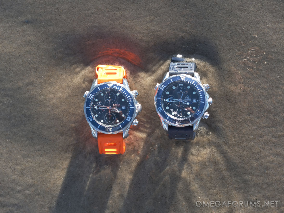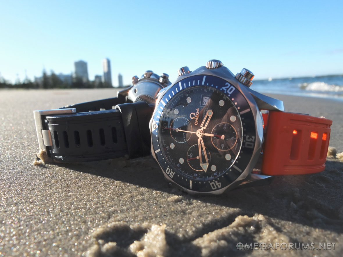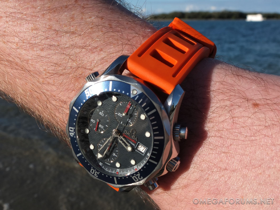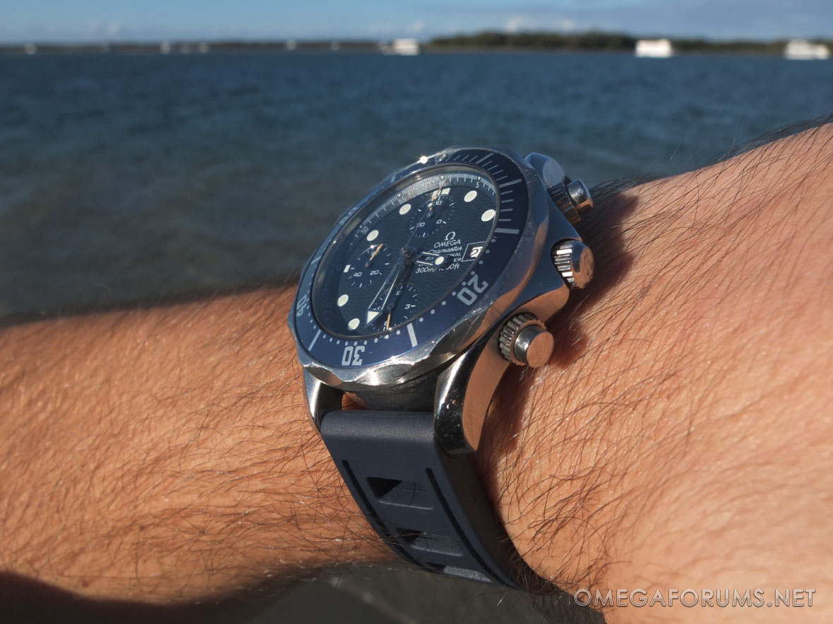 The Seamaster Pro, Planet Ocean, PloProf, and the range of variations of these lines all feature a heavy watch head coupled with a heavy duty bracelet typically in the order of 180-220 grams in weight. This never quite felt right to me on a rubber strap due to the head never quite feeling securely in place and centered as it was with the factory bracelet.