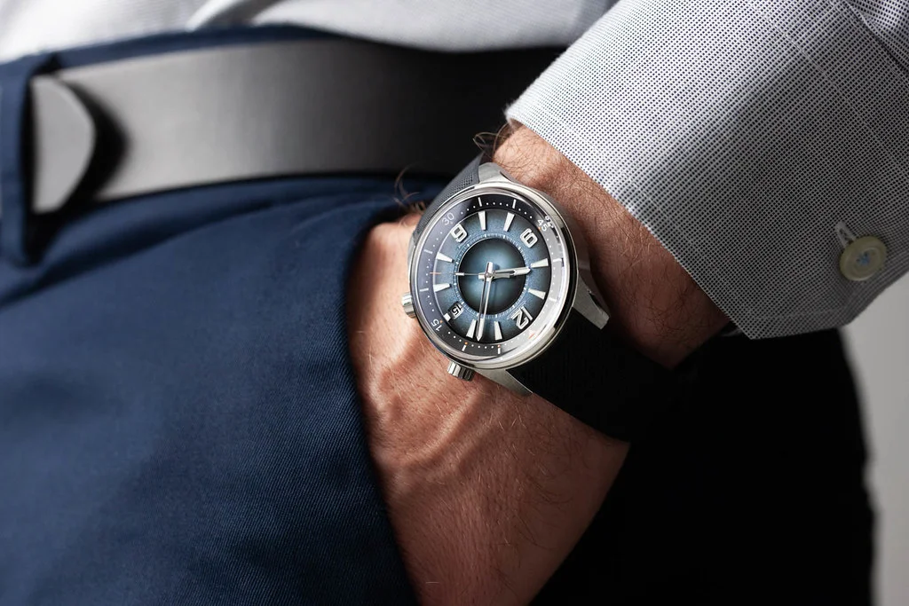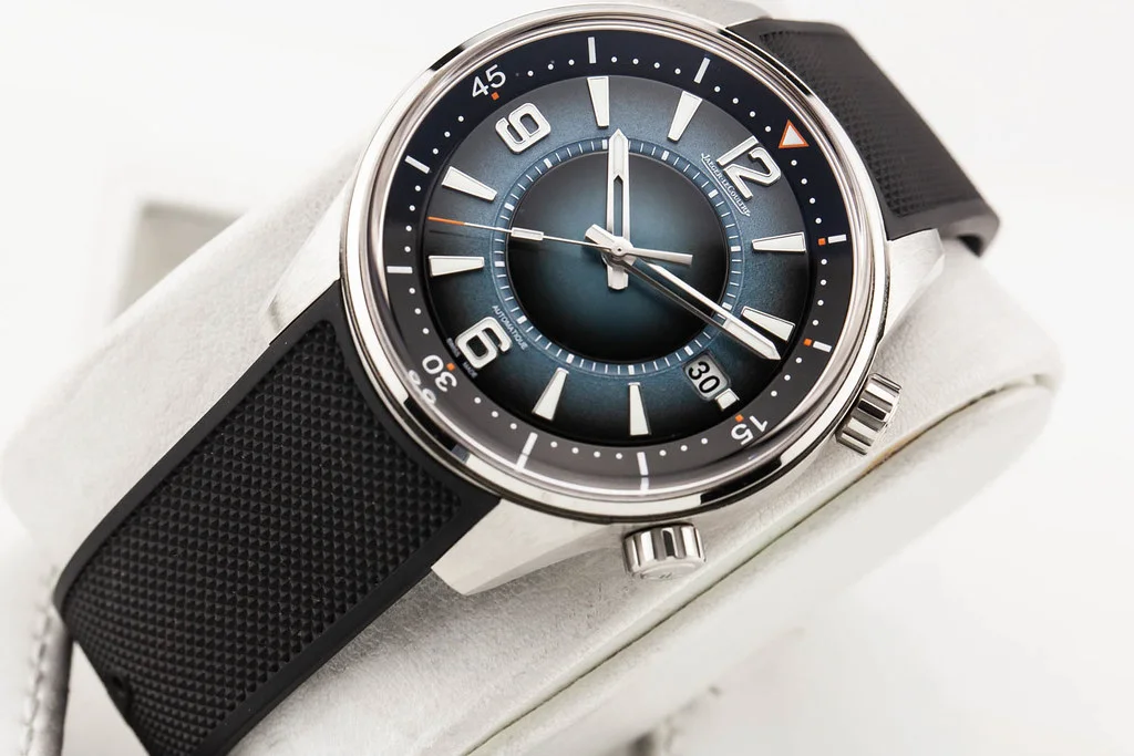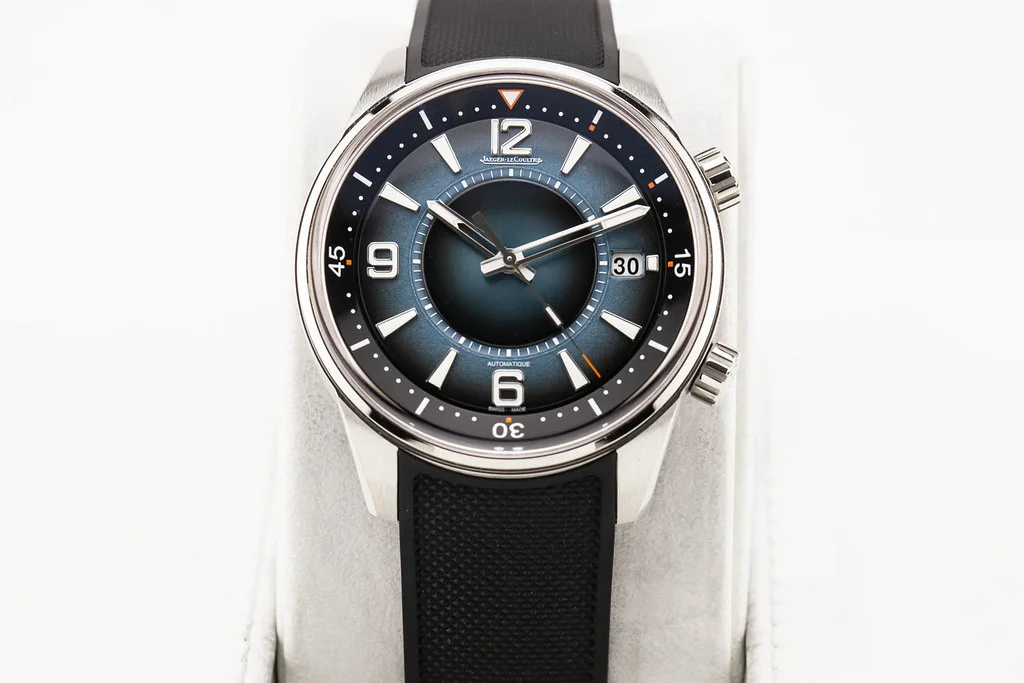 ยทUp for sale is an excellent condition Jaeger LeCoultre Polaris Date 42mm Grey Blue Dial, reference # Q9068650. It comes complete with all boxes, papers, booklets, and JLC Warranty Card dated July 2024. Rubber Strap has an extra hole, otherwise excellent condition.