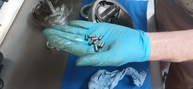 While it cooled off, I pondered what to do next..... then decided to go for it and dug out the new bearing cages and pins.