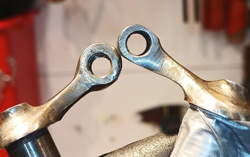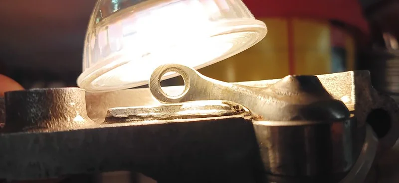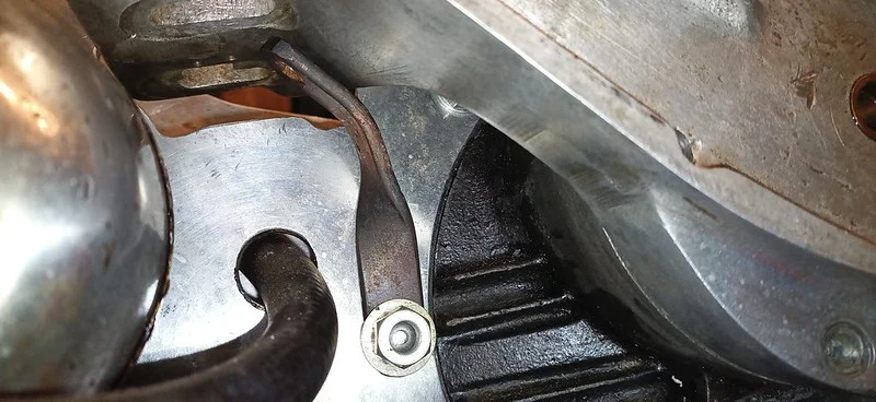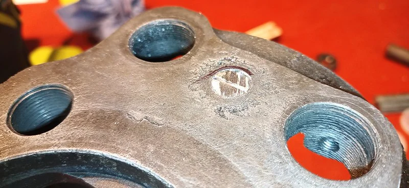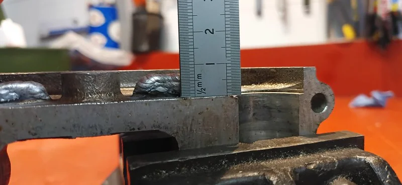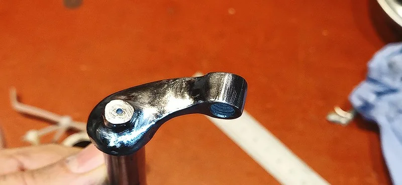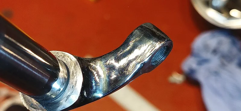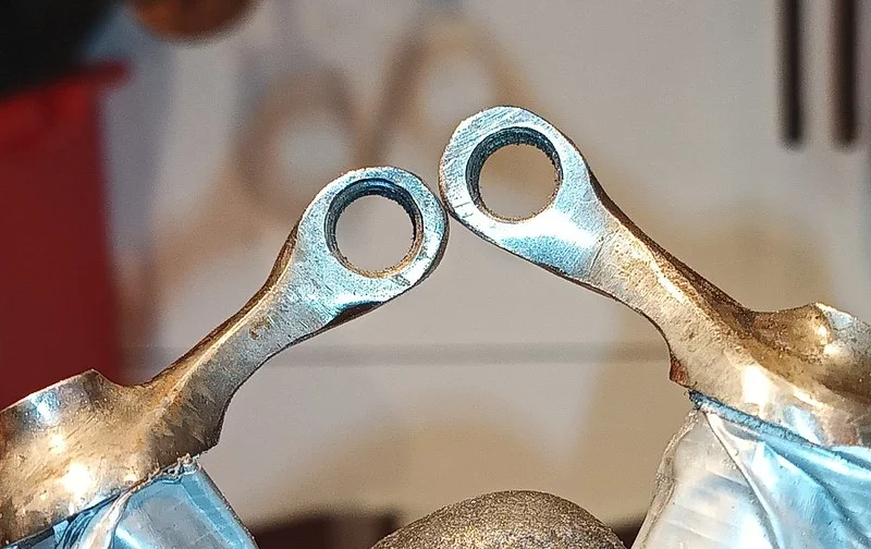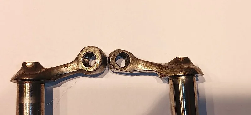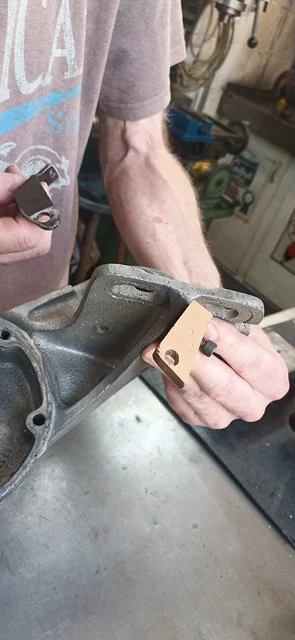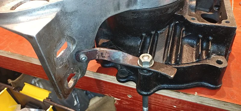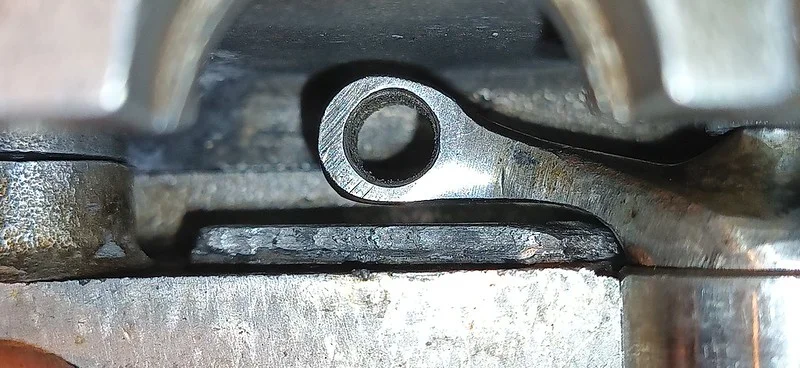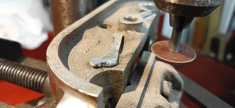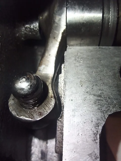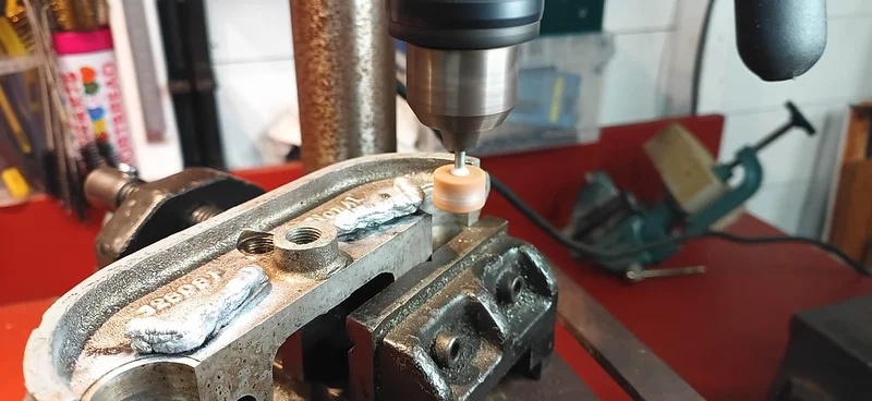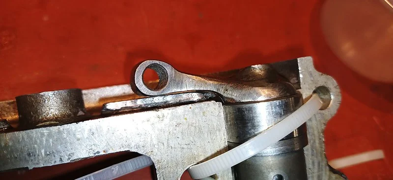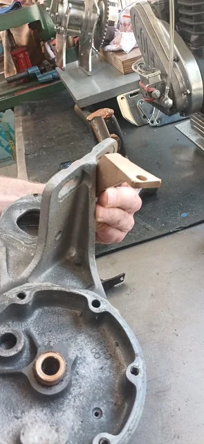 This was filing down the sides of the arm, to help it clear the oil-gallery/shelf. I also took it over to the grinder and shaved off quite a bit of the metal from around the bolthole where the ball-fitting is fitted.
