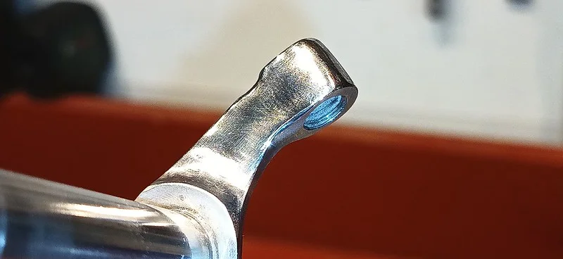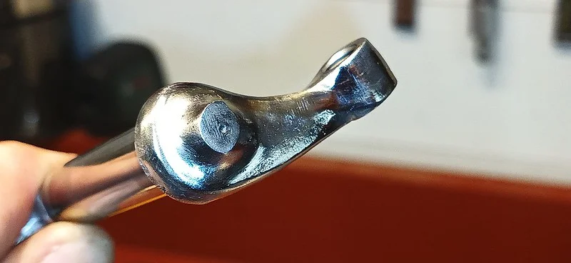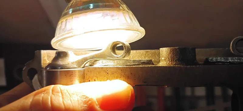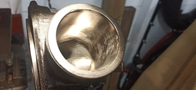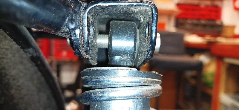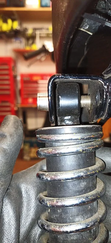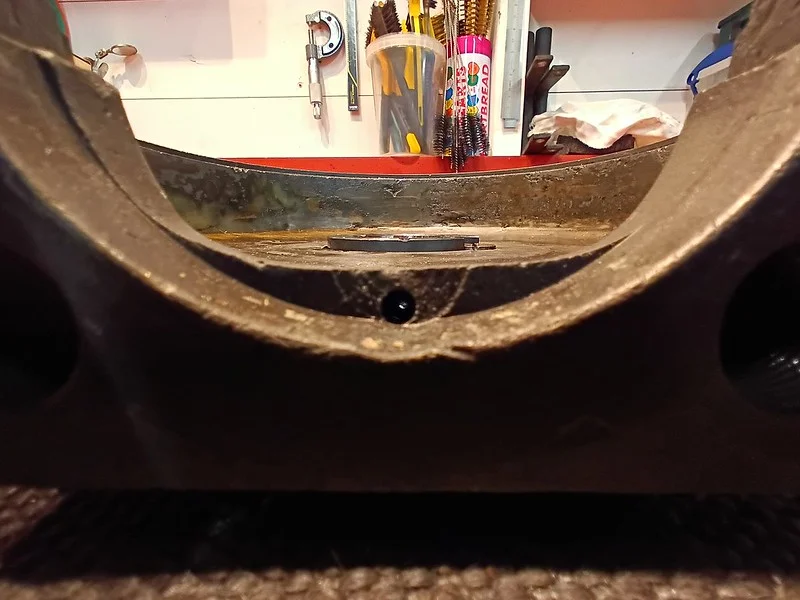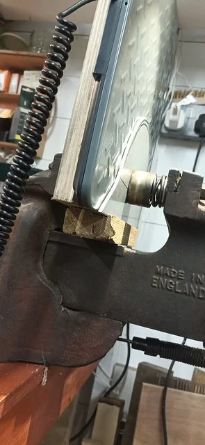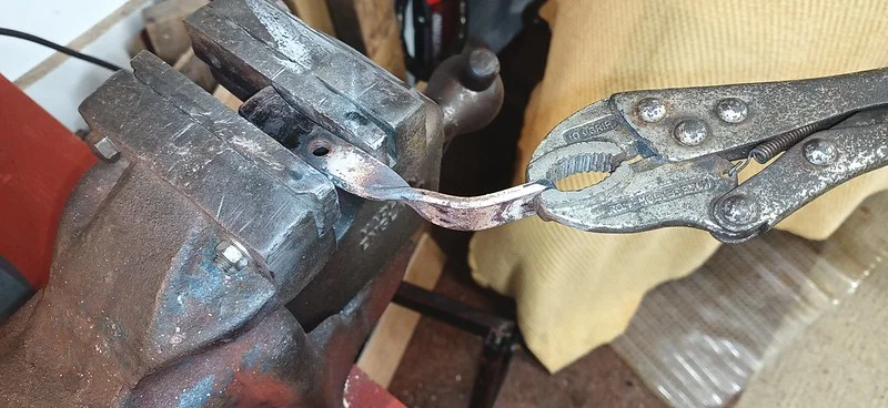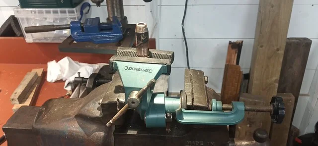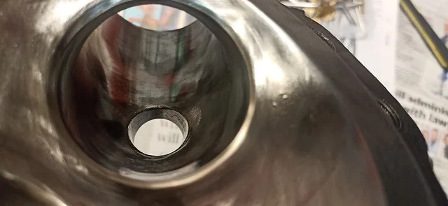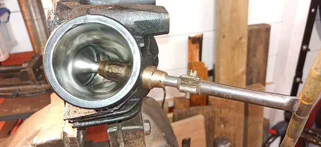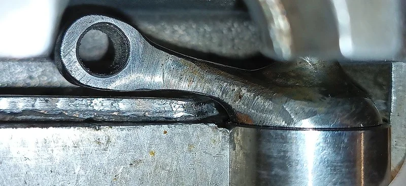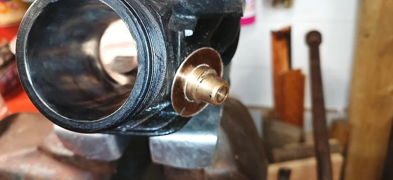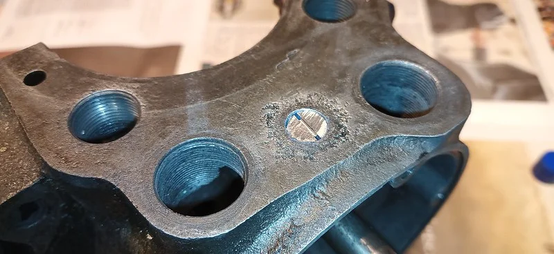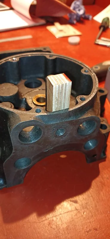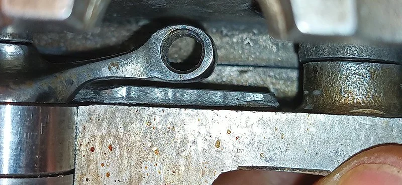 This was filing down the sides of the arm, to help it clear the oil-gallery/shelf. I also took it over to the grinder and shaved off quite a bit of the metal from around the bolthole where the ball-fitting is fitted.