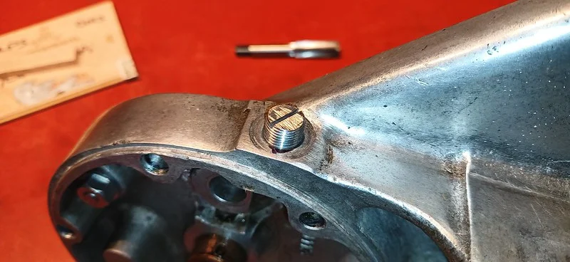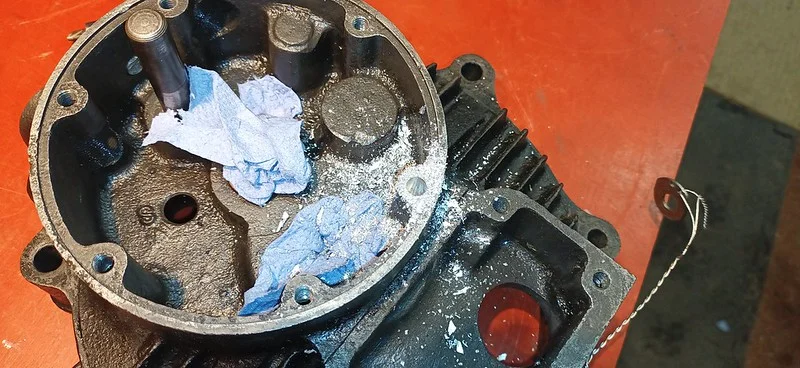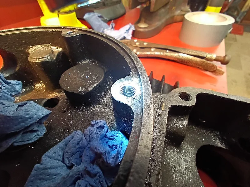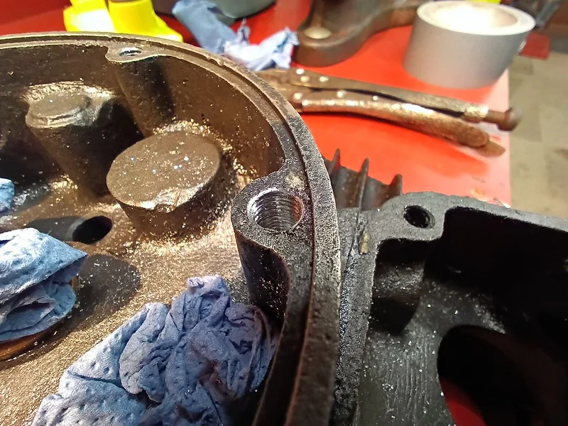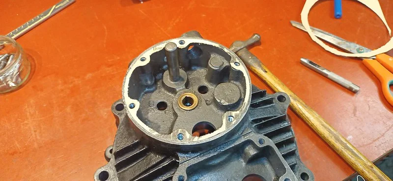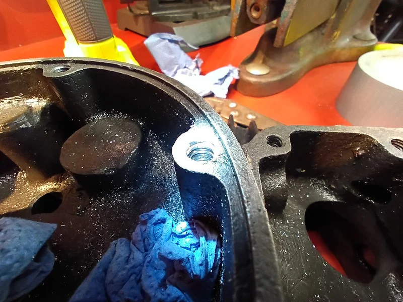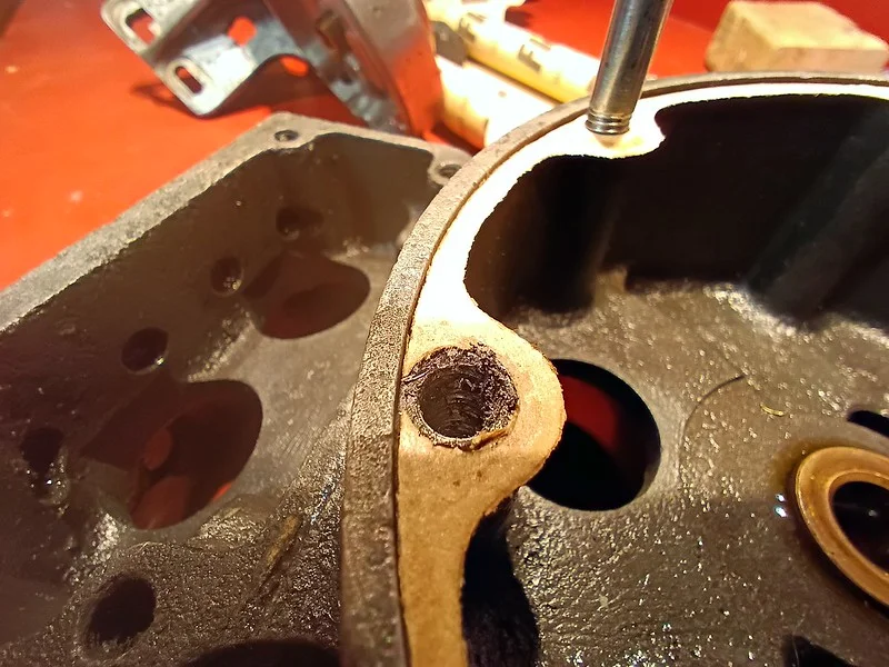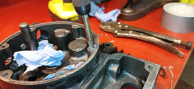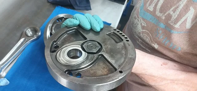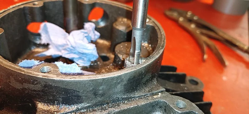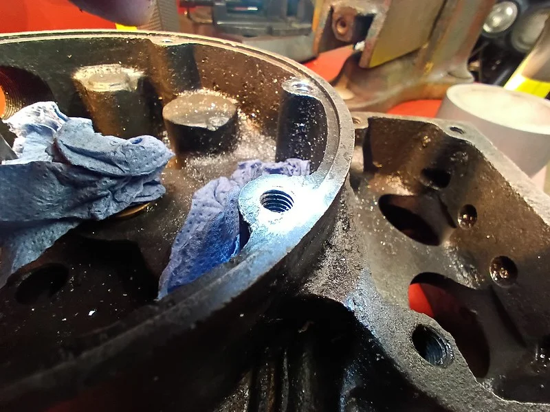 First, I cleaned up the drive-side crank case where the main crank bearing liner was removed: