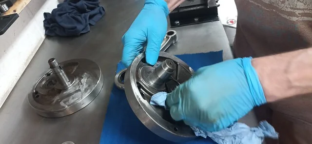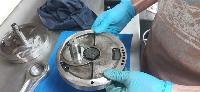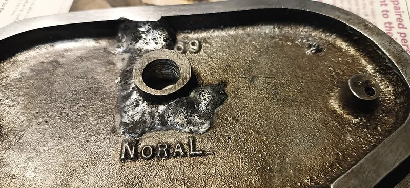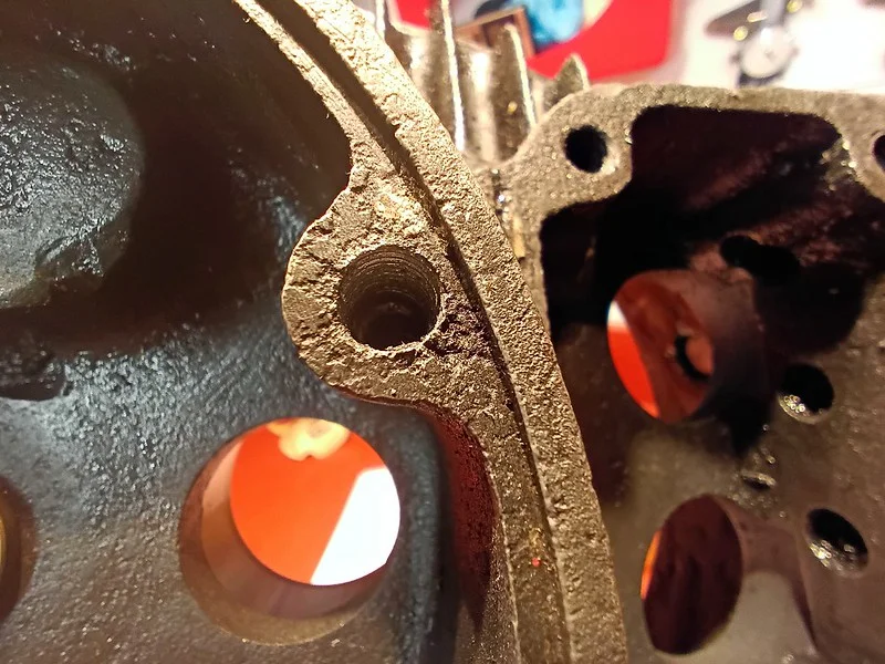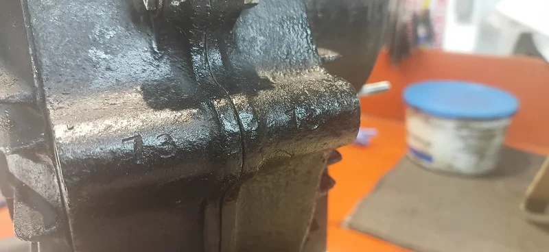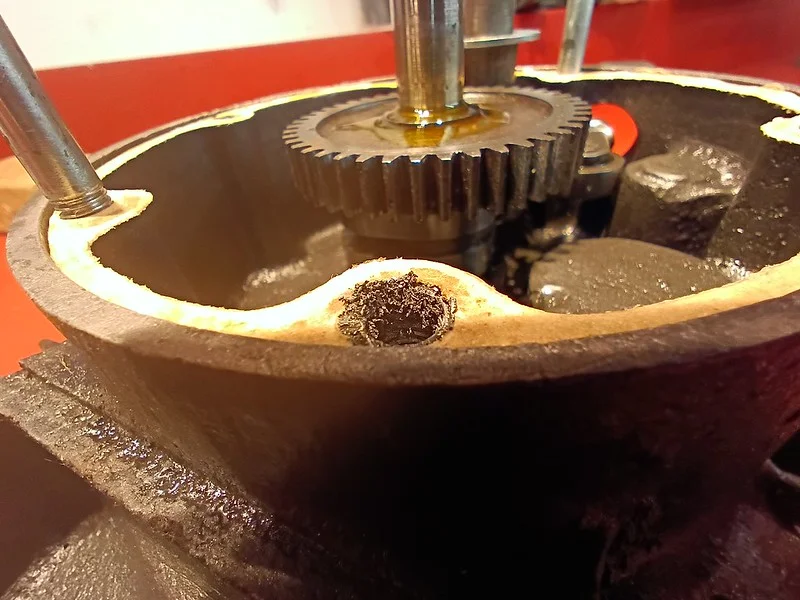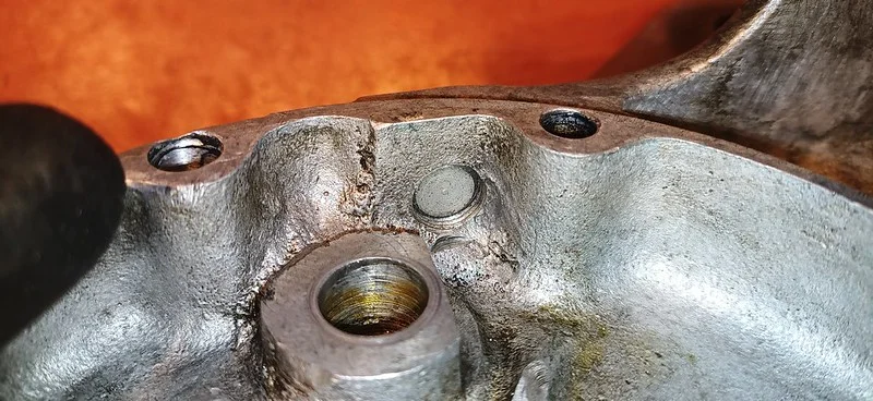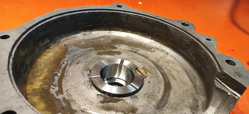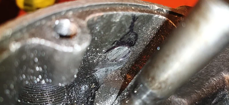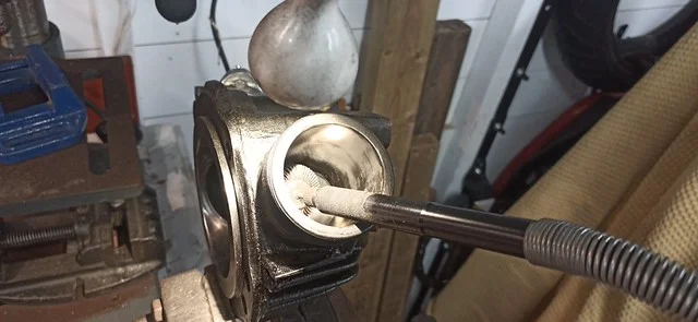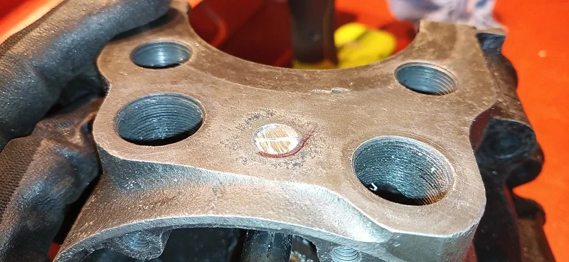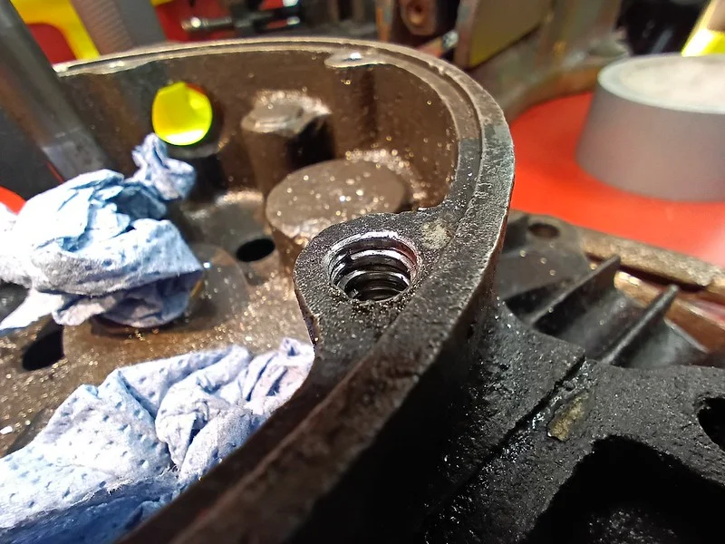 First, I cleaned up the drive-side crank case where the main crank bearing liner was removed: