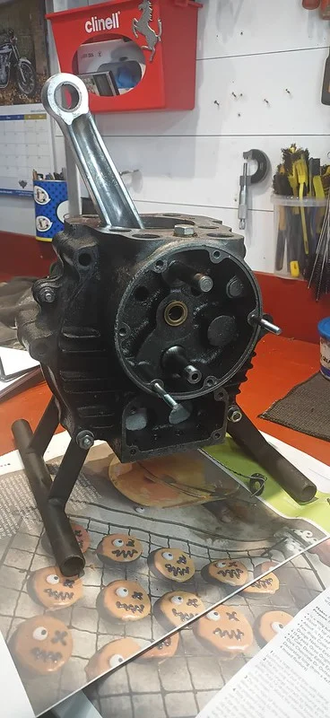 This whole job was made MASSIVELY easier because I found a pair of legs for the engine last time I was in Dad's workshop: