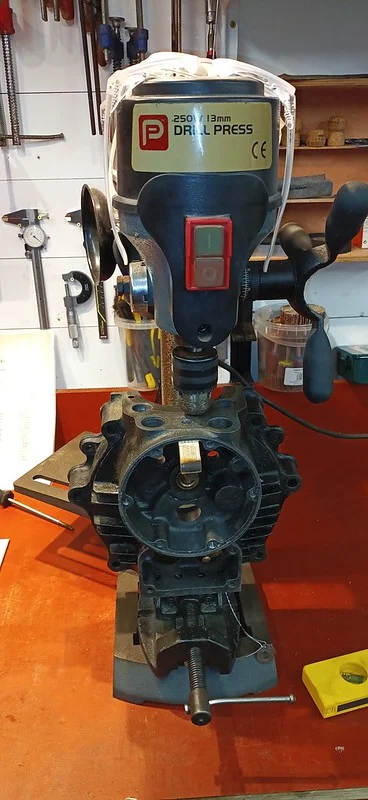 I should state that there was a good long session of faffing with a bubble level to quadruple check that the everything was as flat as possible (the drill stand, the drill plate, the clamp, the workpiece, etc etc etc)