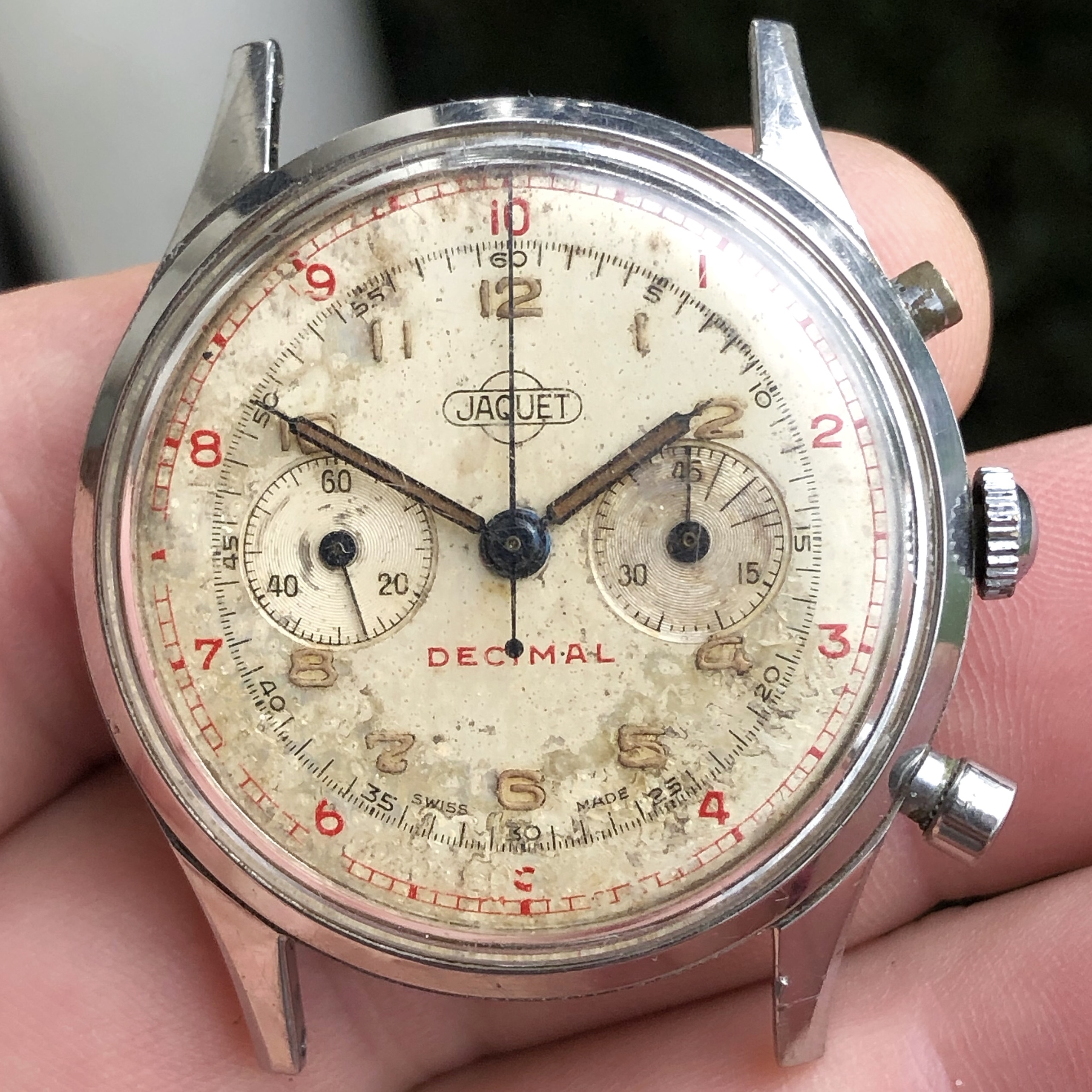 I have been after an Excelsior Park chrono for a while and nabbed this slightly neglected beauty for a fraction of the typical Gallet/Zenith/Certina/Sinn and even Excelsior branded editions.