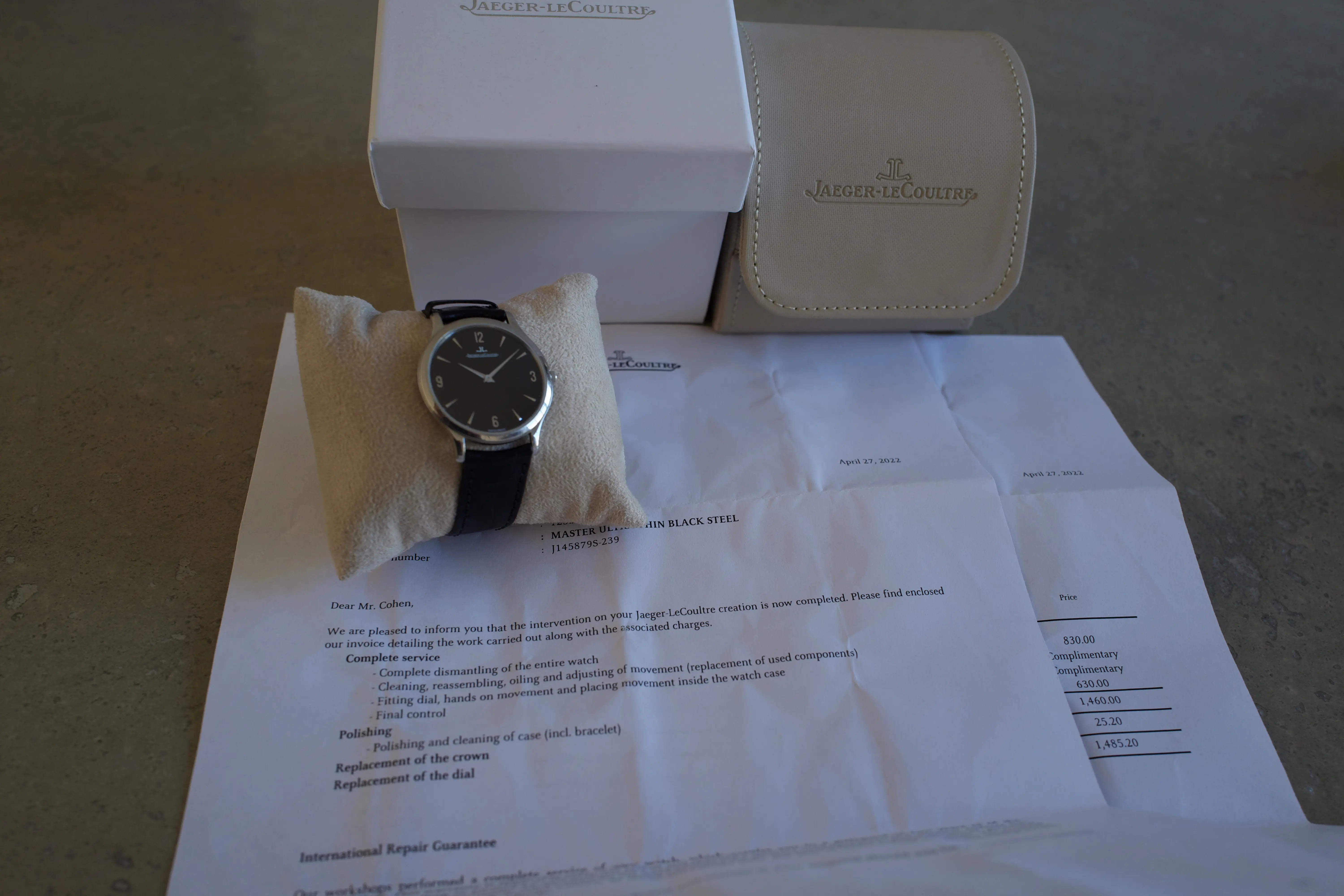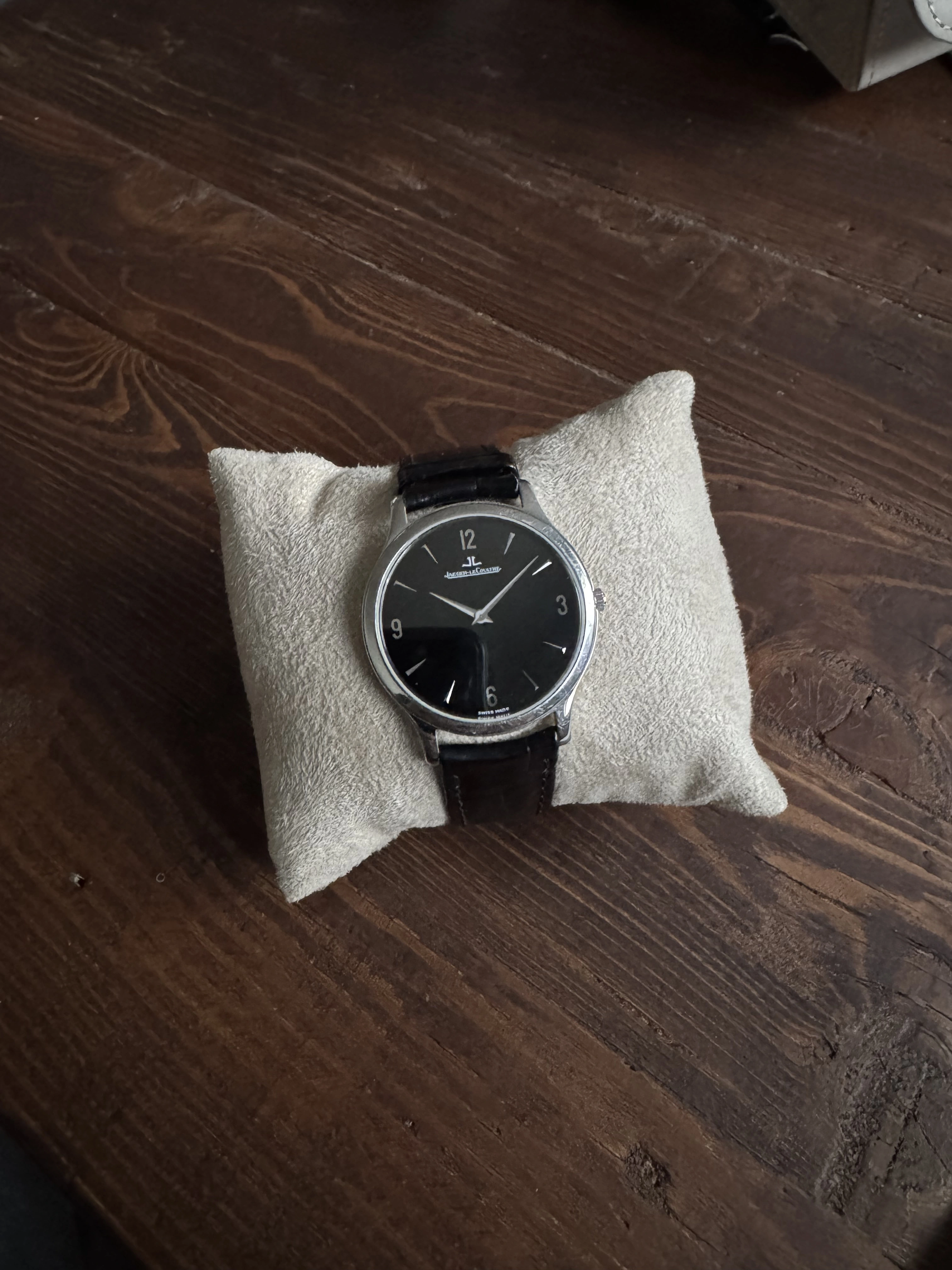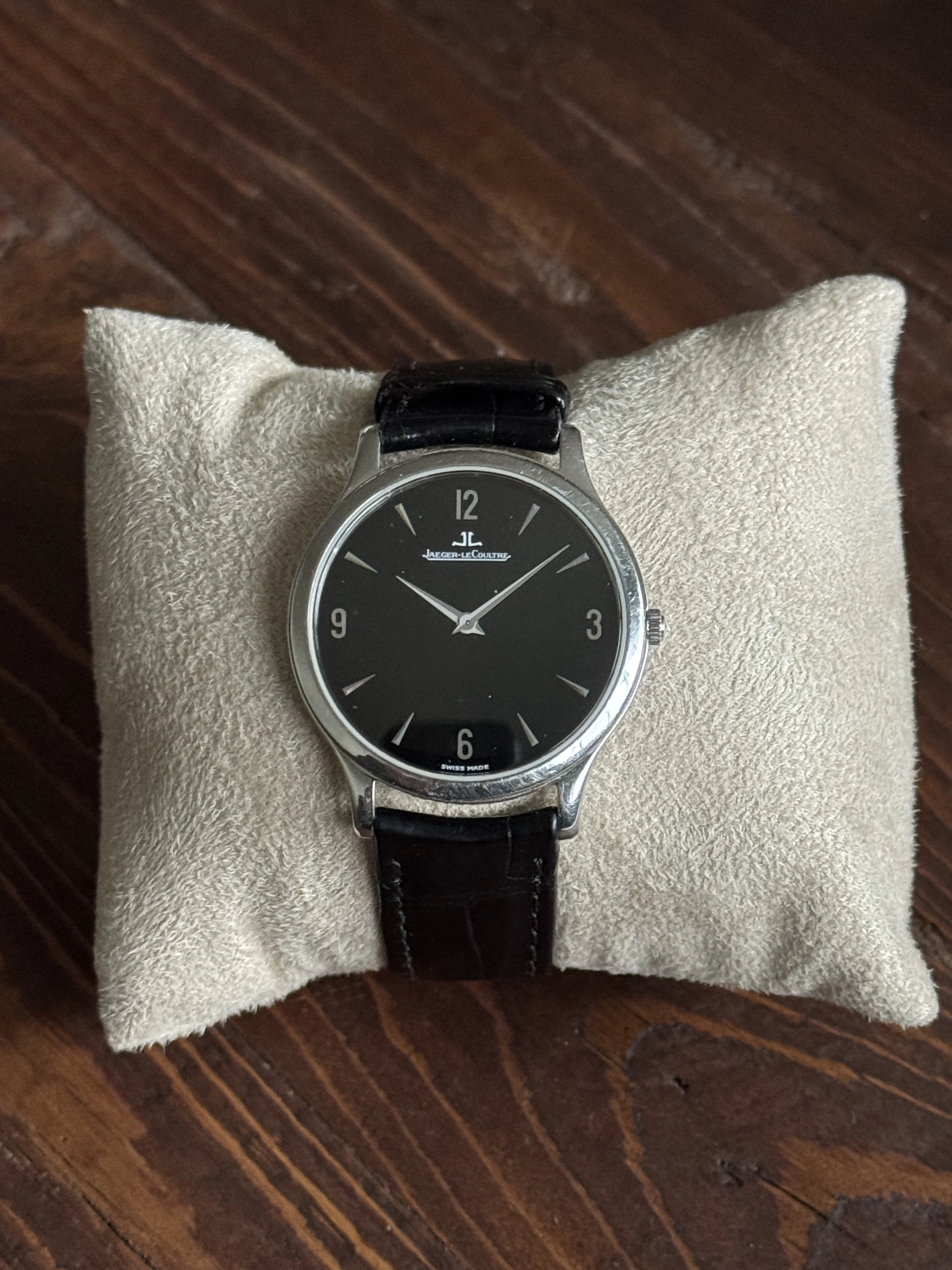 ·Selling a black dial JLC Master Ultra Thin 34mm in stainless steel. I was searching for the silver dial version at the time. Bought this black dial to scratch the itch. It just ended up sitting in the box.