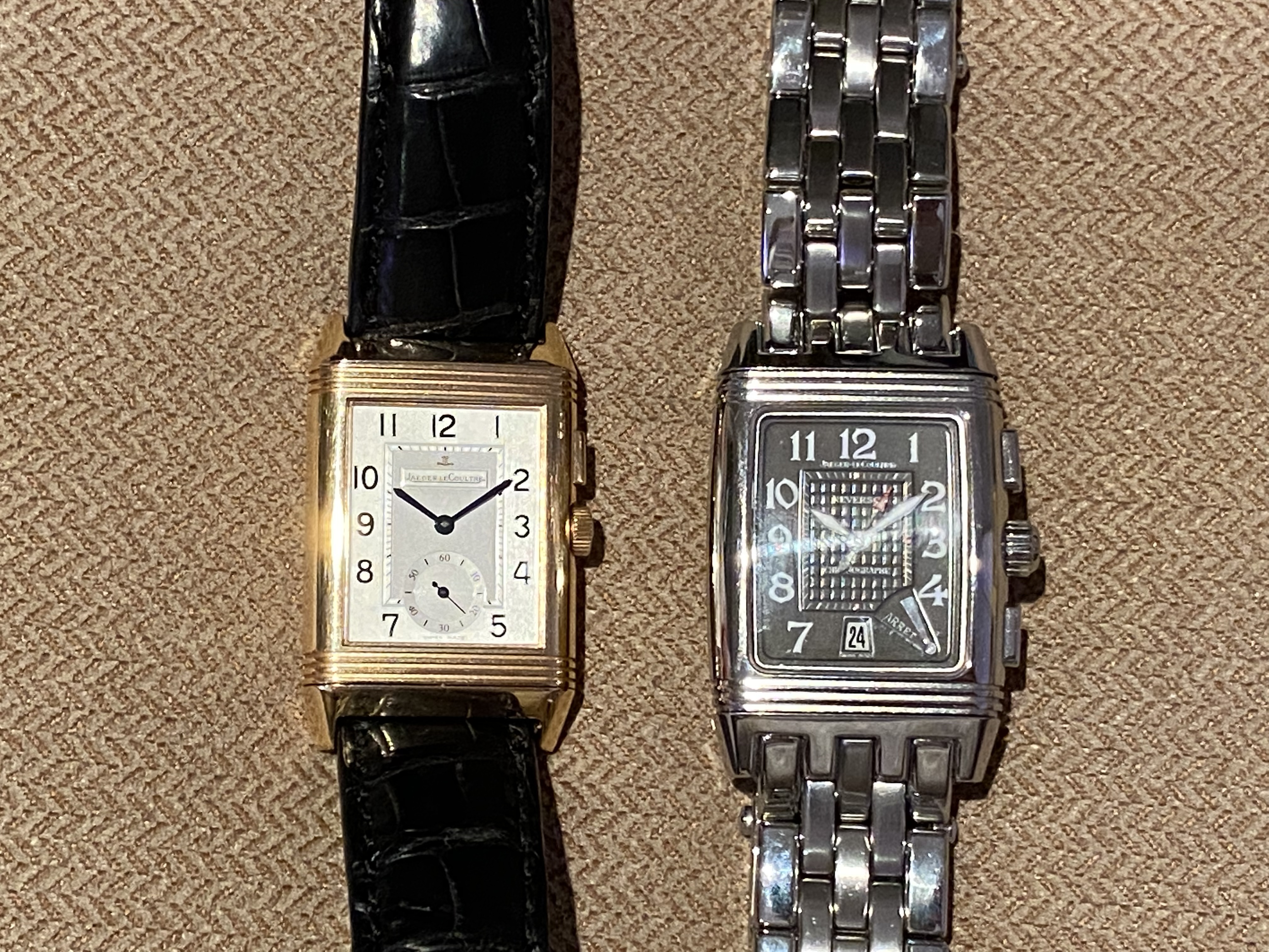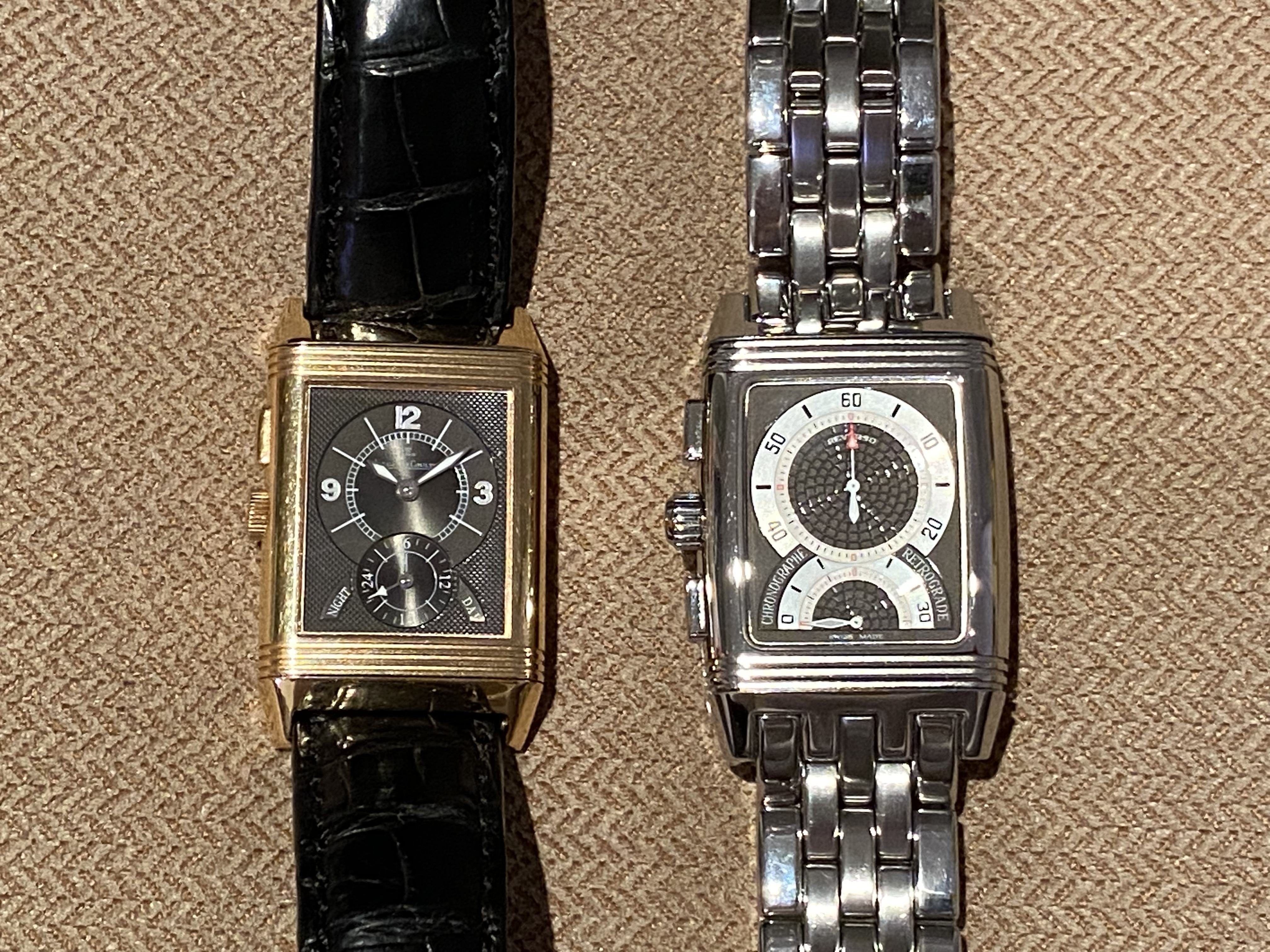 Thought I'd share mine, a Grande Taille model with its' OEM SS bracelet which I think maintains a bit sportier "wear" for the Reverso
