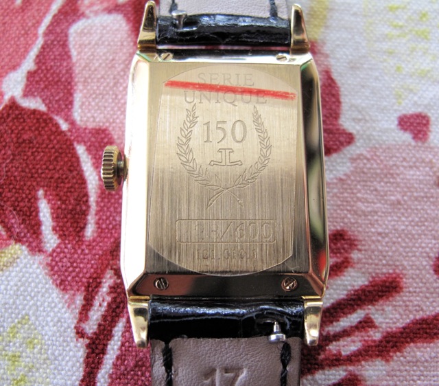 The shaped one is a recreation of the shaped-case version of the 1949 watch, the movement made with NOS 1949 parts. It was produced in a run of 600 to celebrate the 150th anniversary of la manufacture (1988).