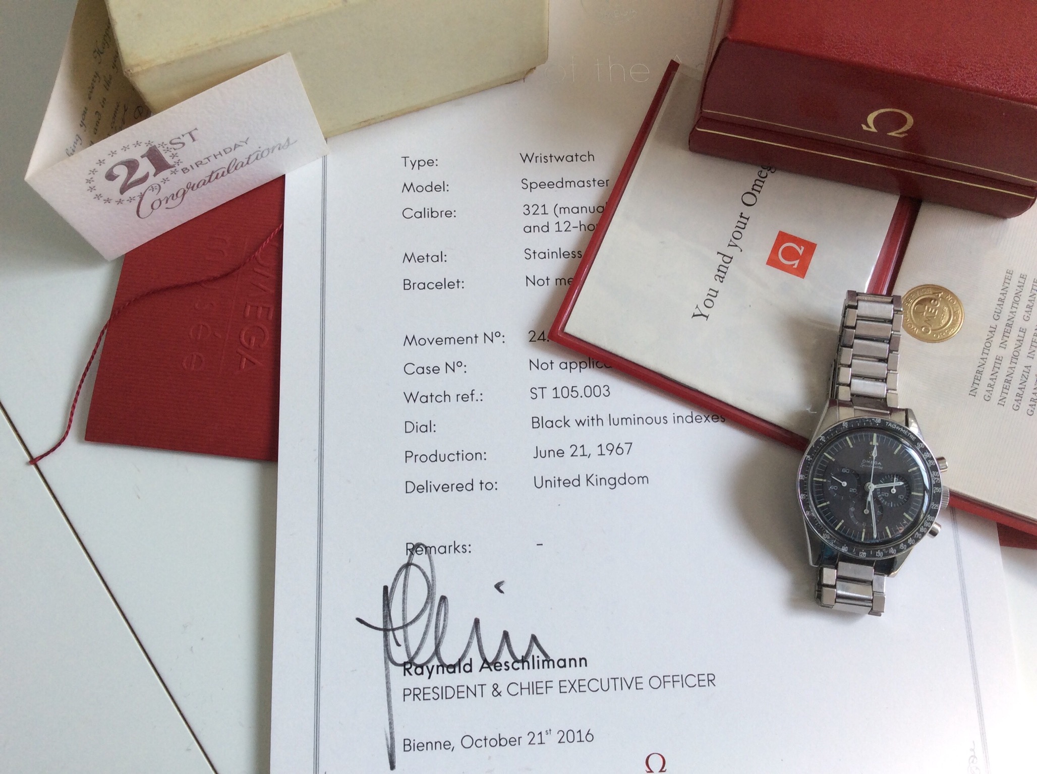 A copy of the June 1, 1965, stamped letter now appears on the Omega website.