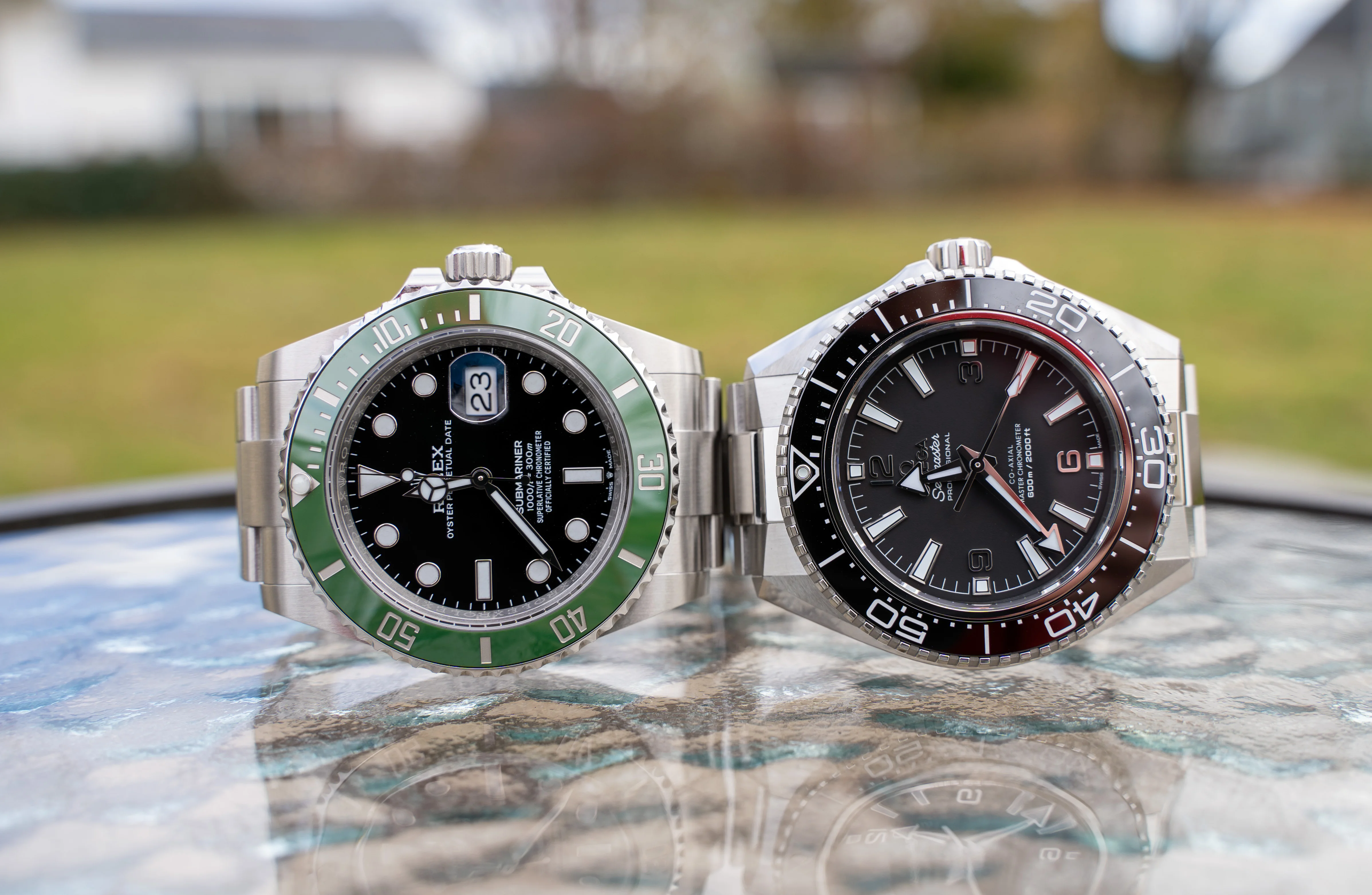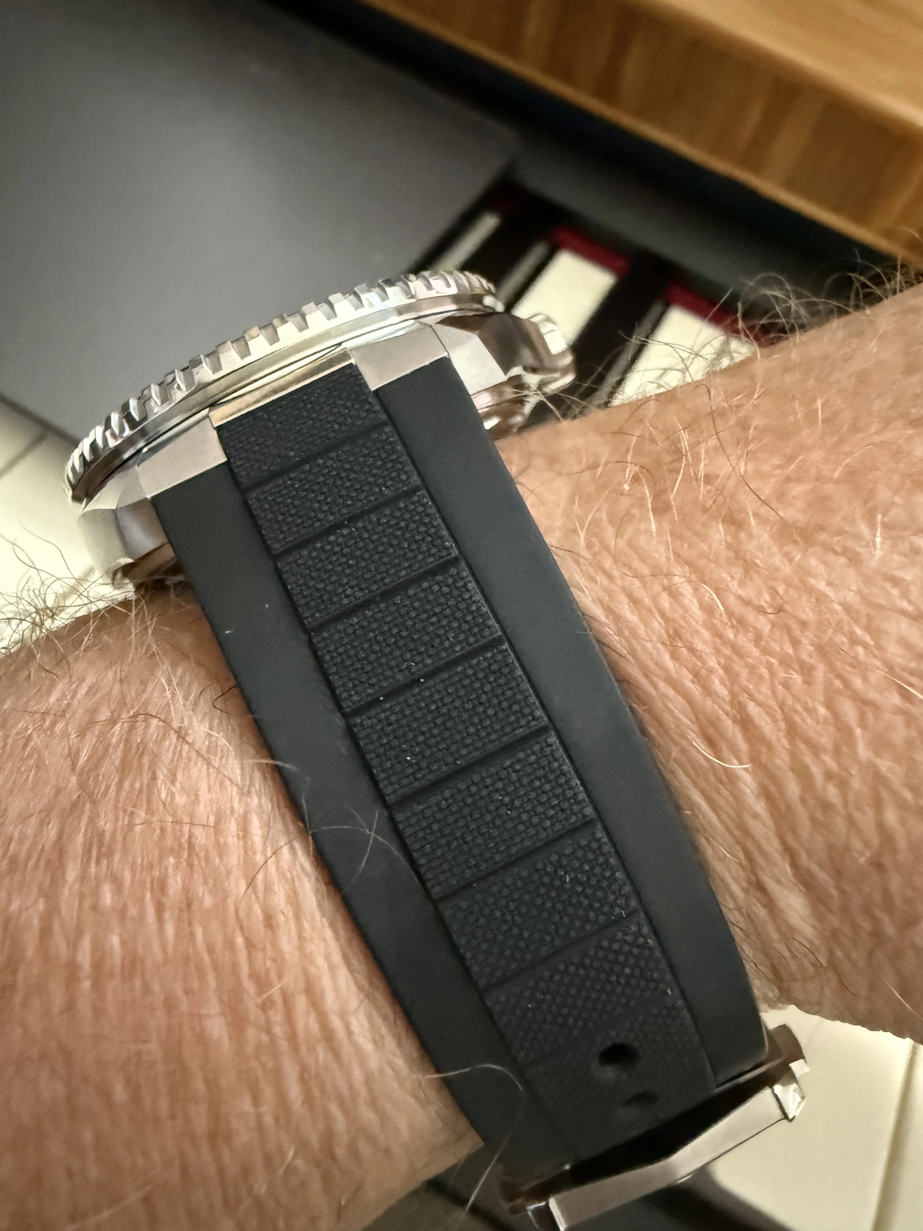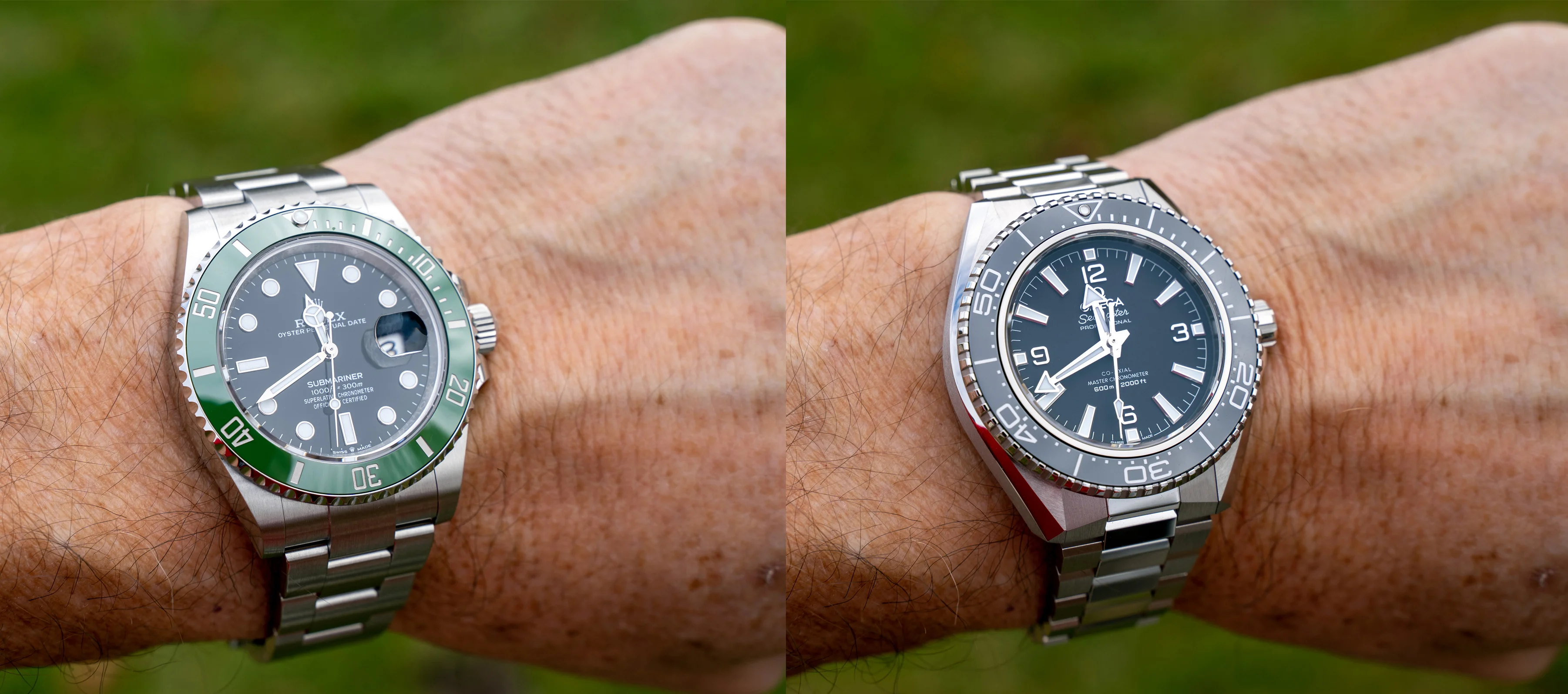 ·It can look that way because it's a matte black, it has a tendency to absorb the light, rather than reflect it. The sub has a very glossy dial and reflects the light However, the Planet Ocean will only look like that when it is hit with very bright, direct light. All other times it looks dark black. I like the matte black ability to have different looks depending on the lighting. As you can see in this pic, the dial looks dark black, even though its in the afternoon and no clouds in the sky. When I get a chance I will take a few pics outside, side by side, with the sub.