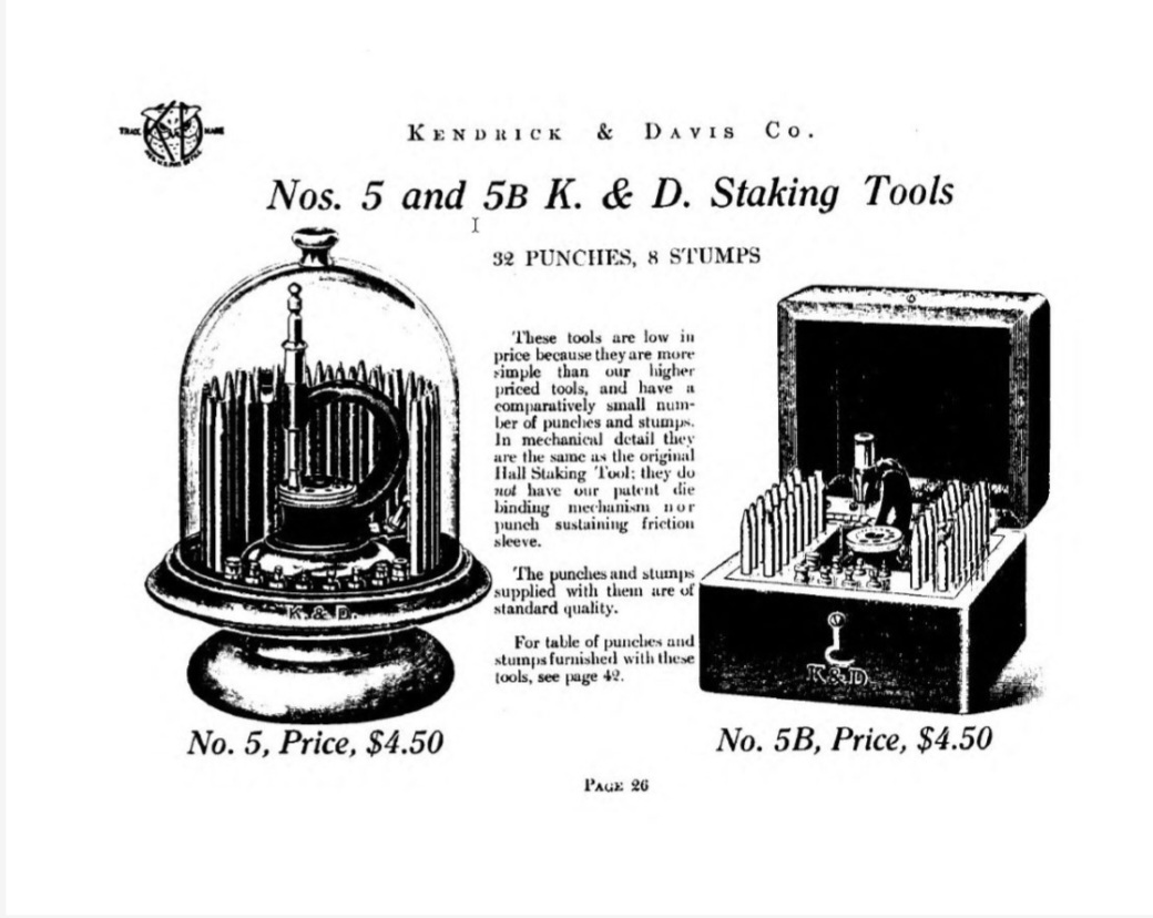 ·After looking for awhile but not committing to buying a set due to price, I finally found an affordable staking set. From what I have found in google, I believe this K&D set is a 5B from around 1910. While it's a very basic set I'm excited to have it because it means that I'll be able to start doing some more repairs that previously I had to send off for.
