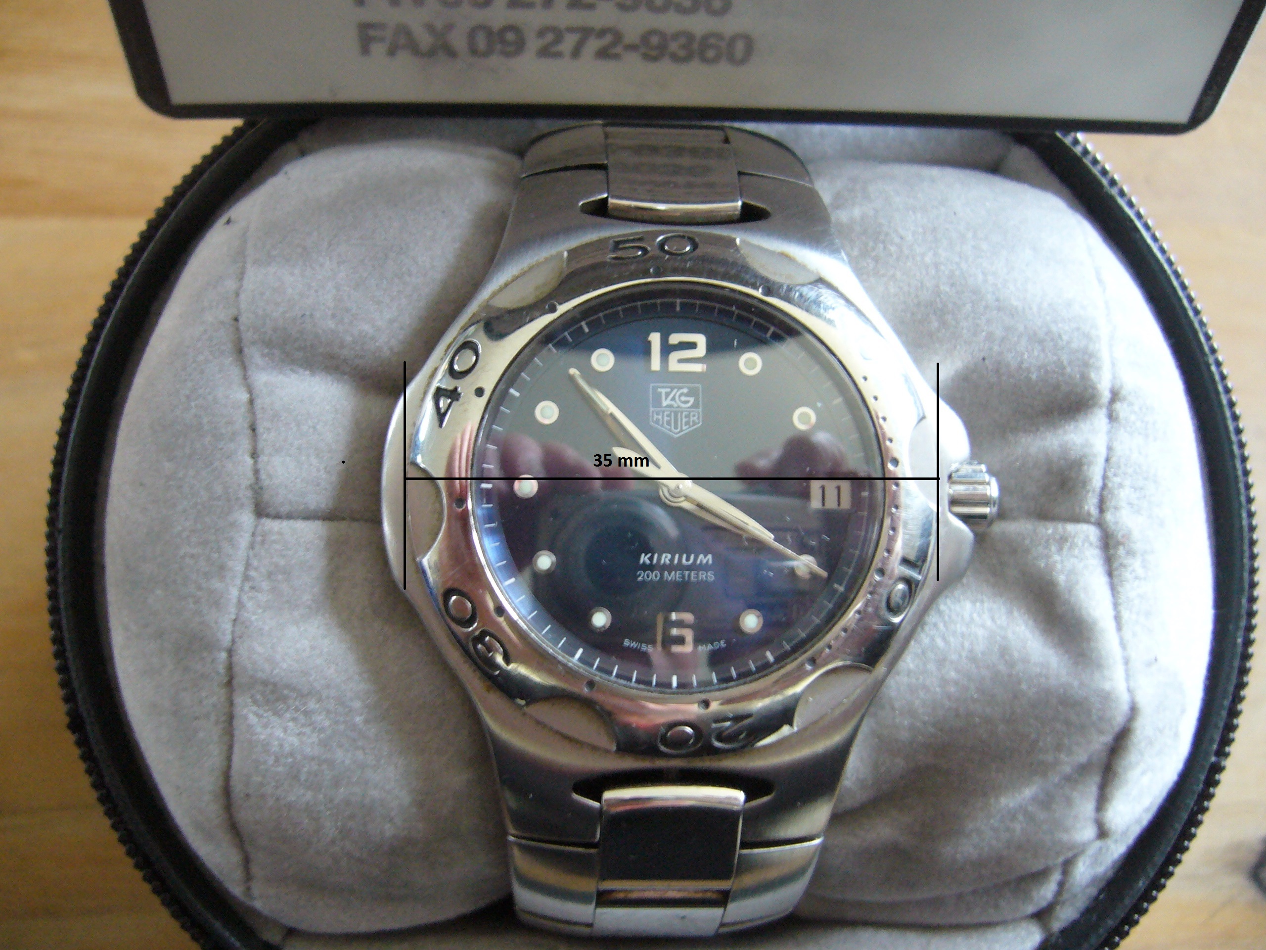 Also they keep copies of many (all?) of the TAG Heuer product catalogues with high res scans, here's the link to the 2000 catalogue, scroll down to page 25 and there's a navy blue face gents Kirium that I believe is 39mm http://www.calibre11.com/tag-heuer-catalogues/2000-the-catalogue/