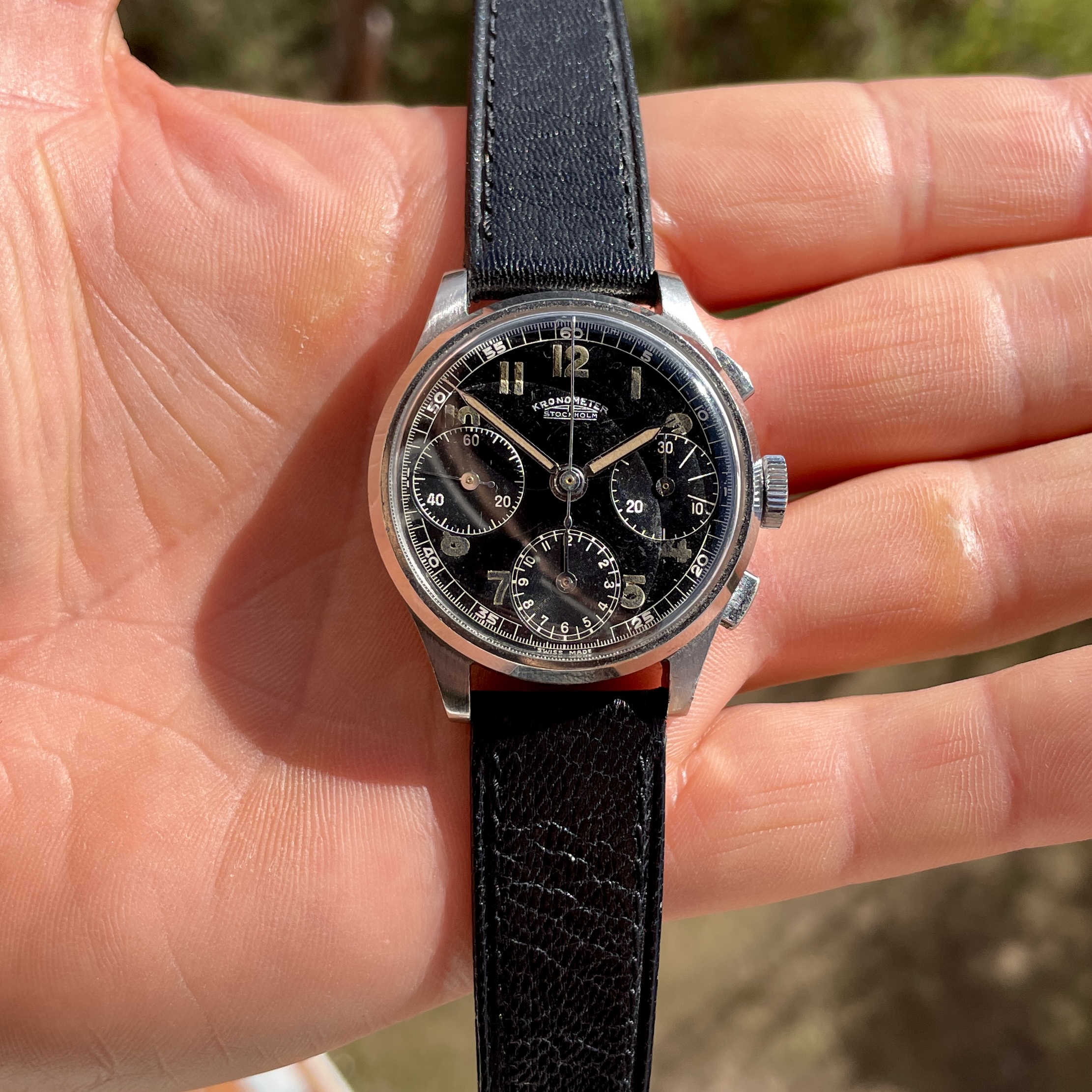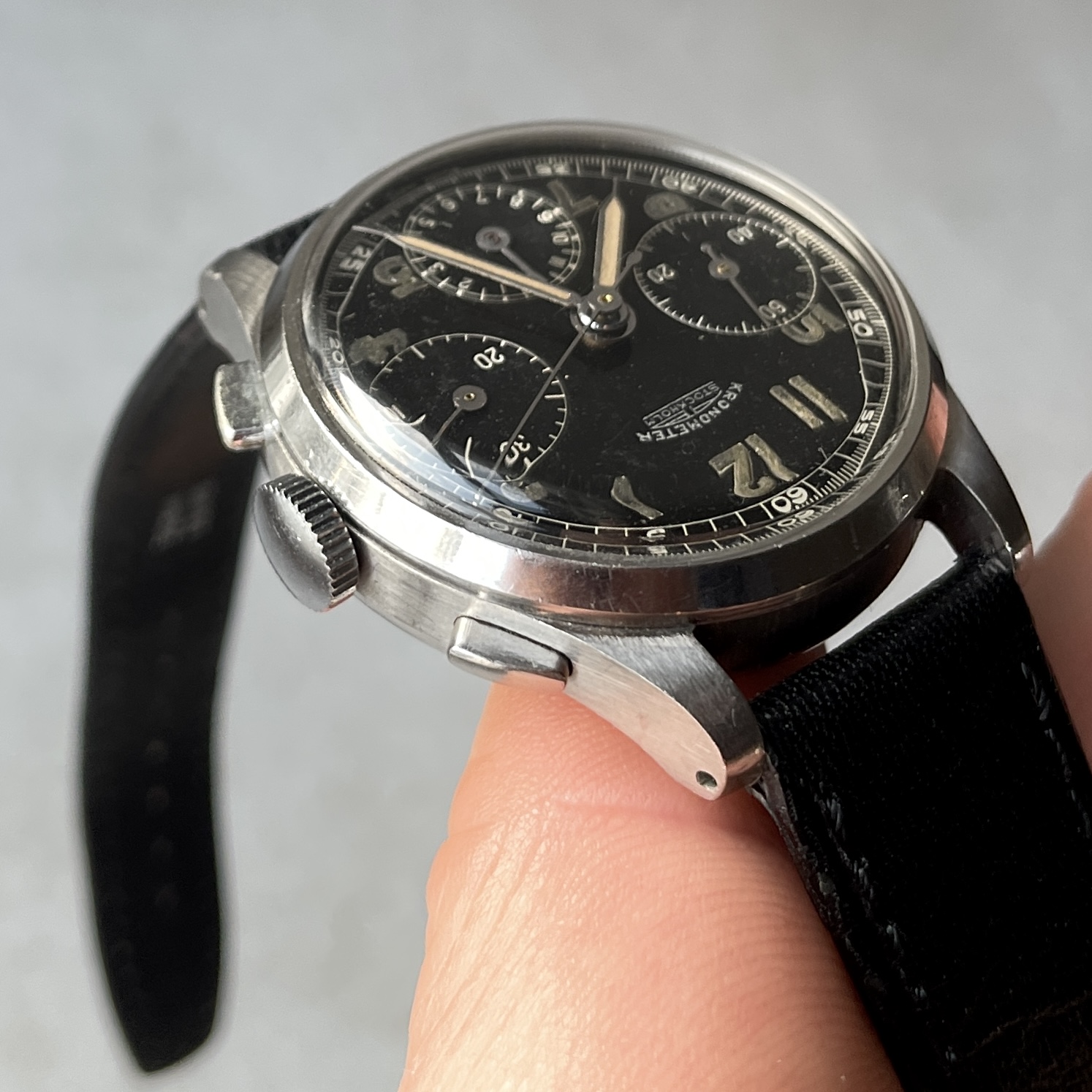 Here is my 1940 three register Kronometer Stockholm in a 35.5mm steel case: