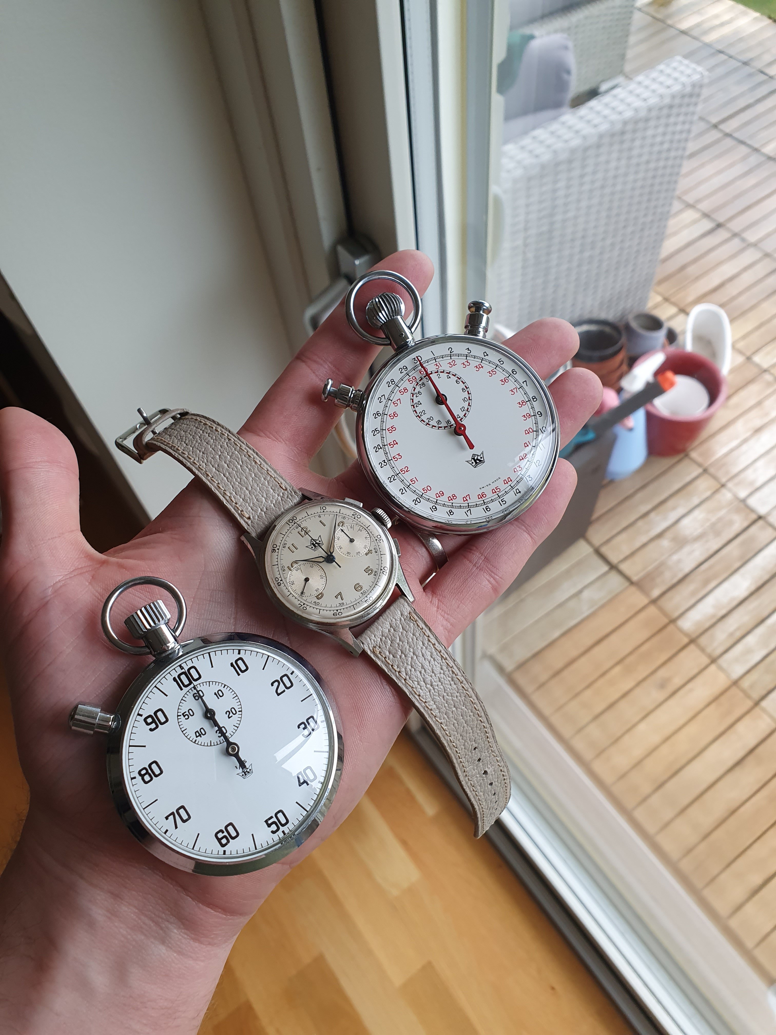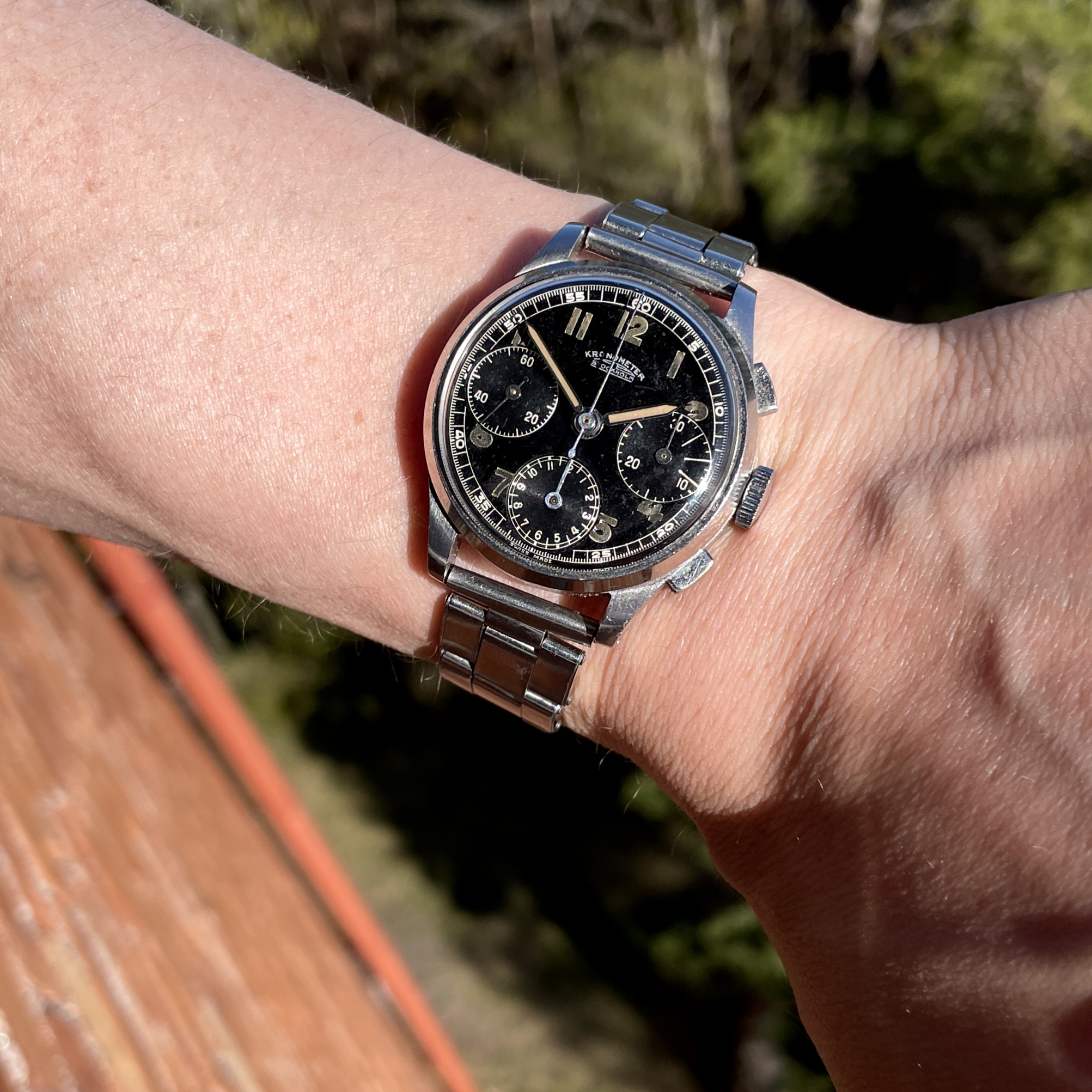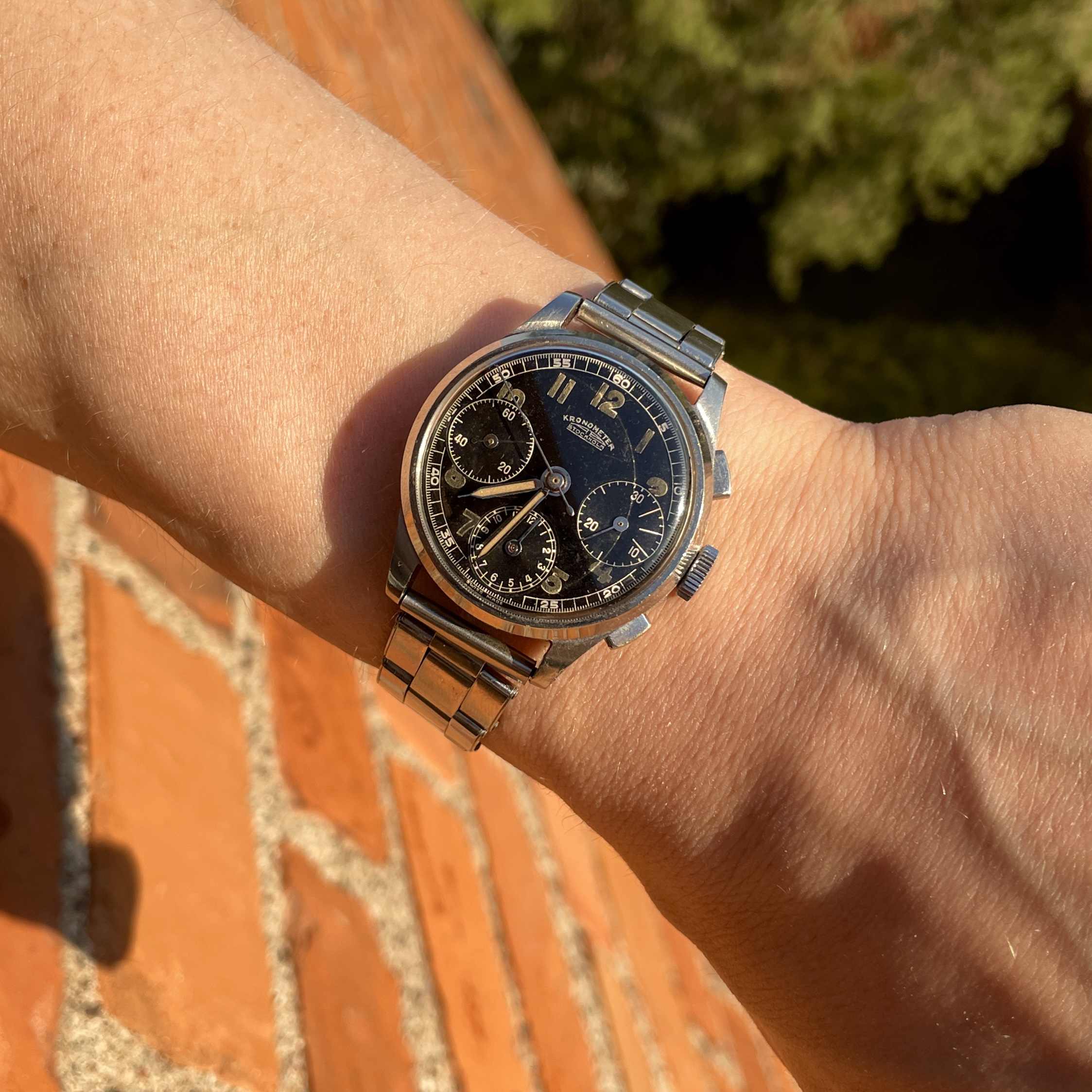 Here is my 1940 three register Kronometer Stockholm in a 35.5mm steel case:
