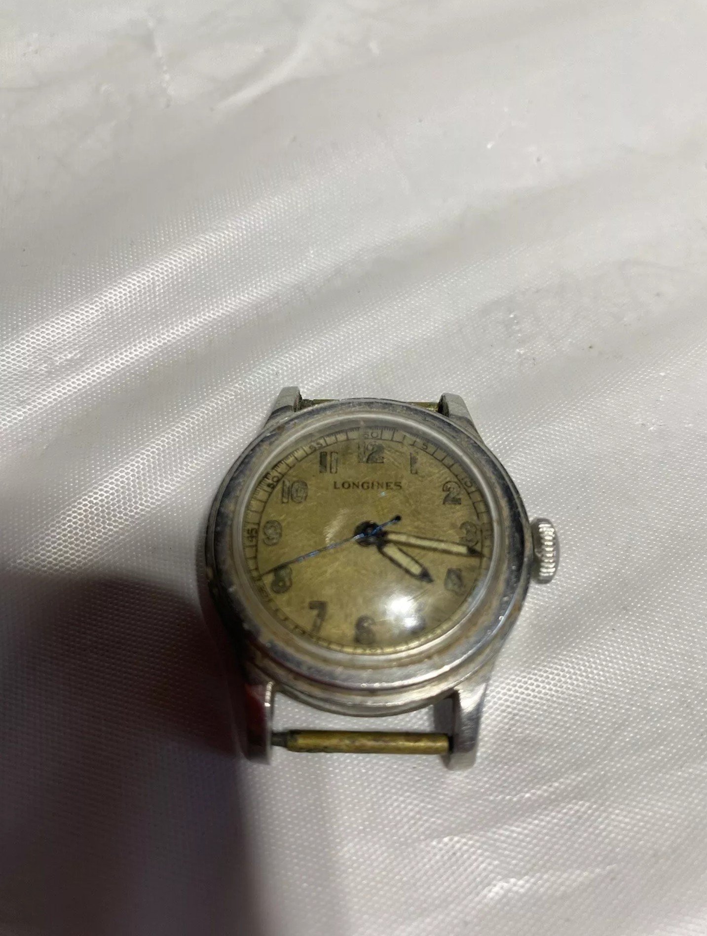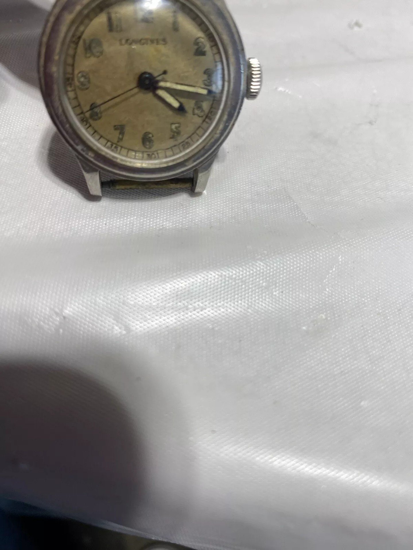 - Dial: Even patina, no major "stain" that I can spot. Now, personally, I do not feel confident on the Longines text itself. I'm not confident on the font as such... It looks too "sloppy" (thick font...) surely comparing it to her Sei Tacche dial. Additionally, it seems too high positioned on the dial. Now, due to the size of the dial, and the model itself, I might be wrong.