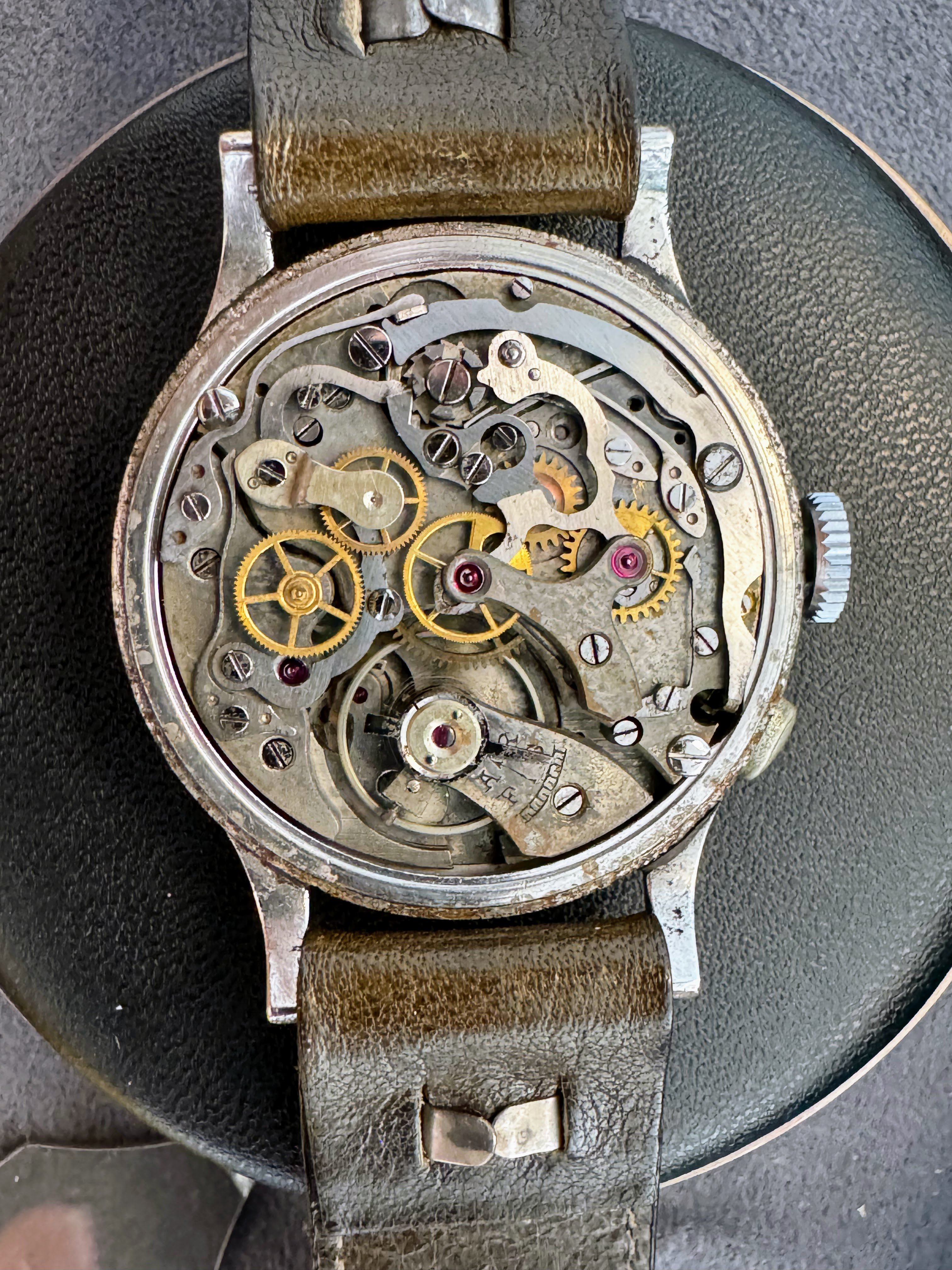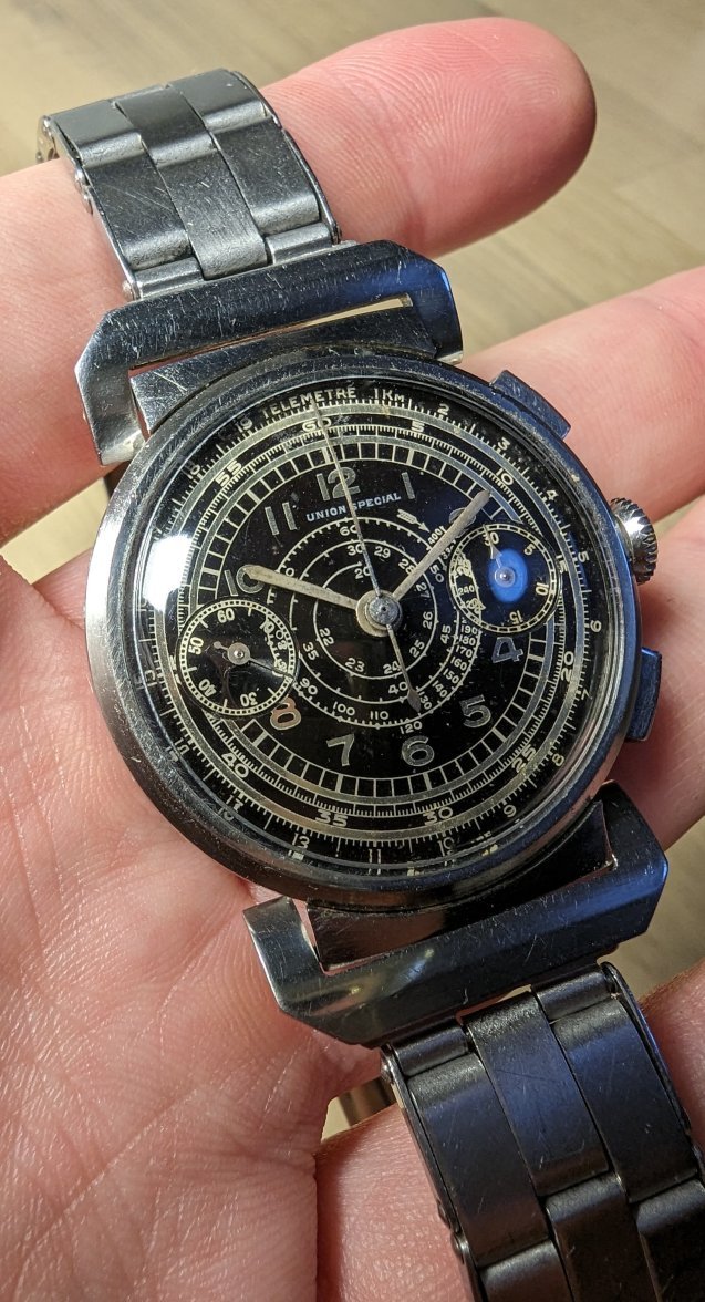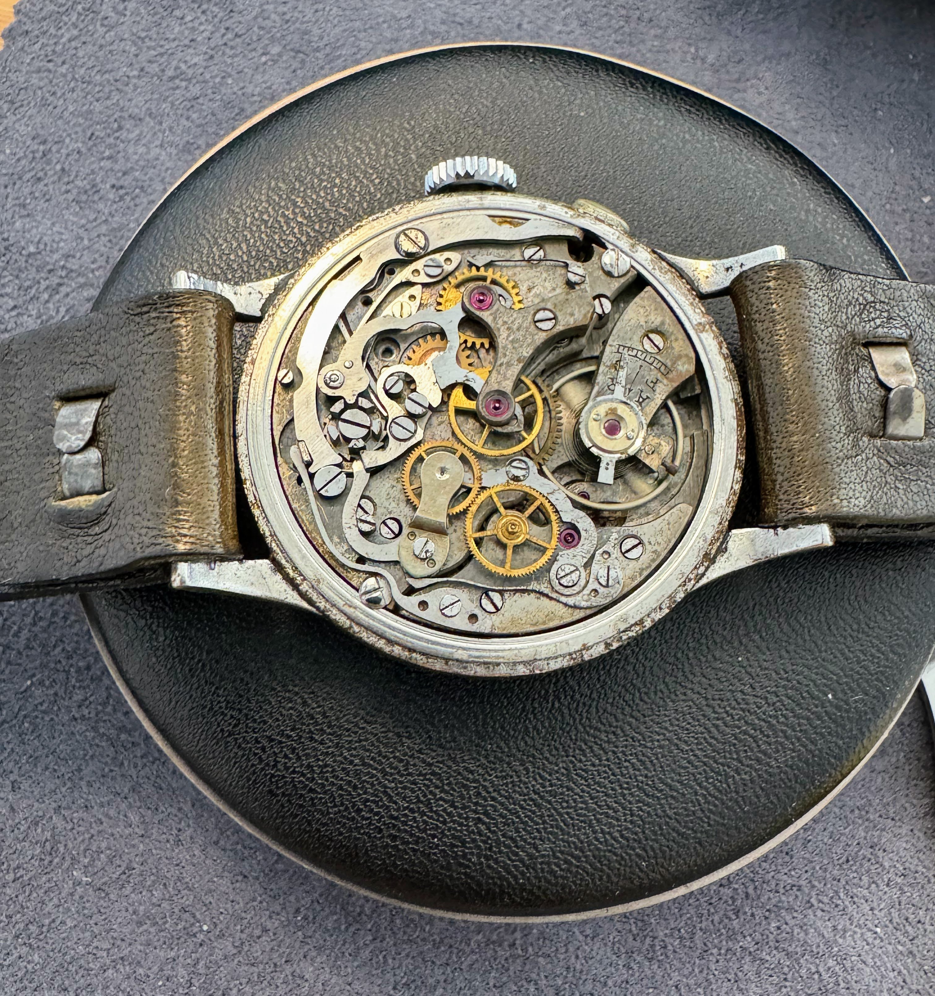 The watch is running and the chronograph function is working fine but it stops occasionally and probably needs to be cleaned and lubricated again. Hopefully, I'll find a good watchmaker at some point willing to service it (my watchmaker is not keen on servicing old Landeron chronographs due to the difficulty of finding parts).