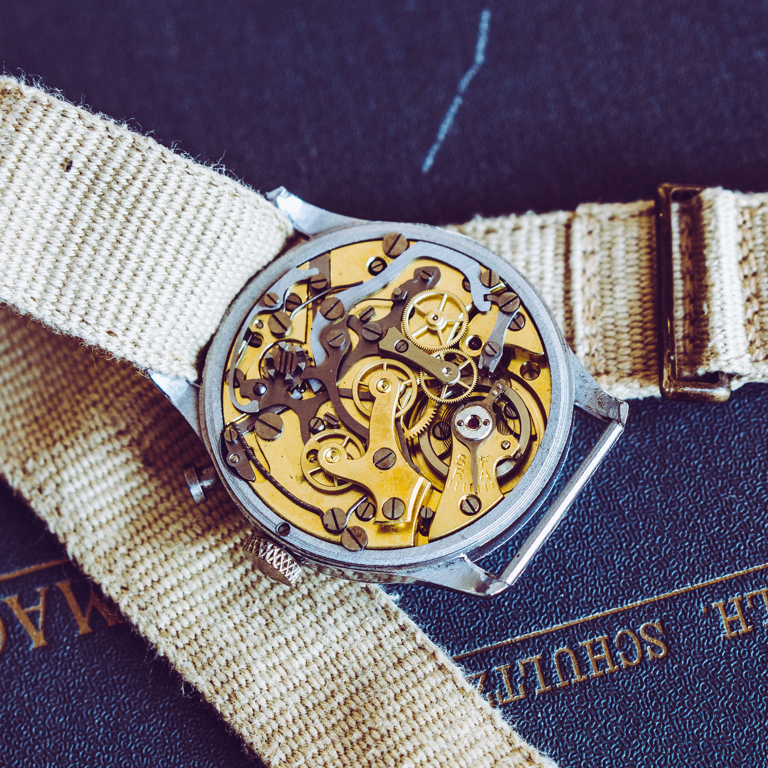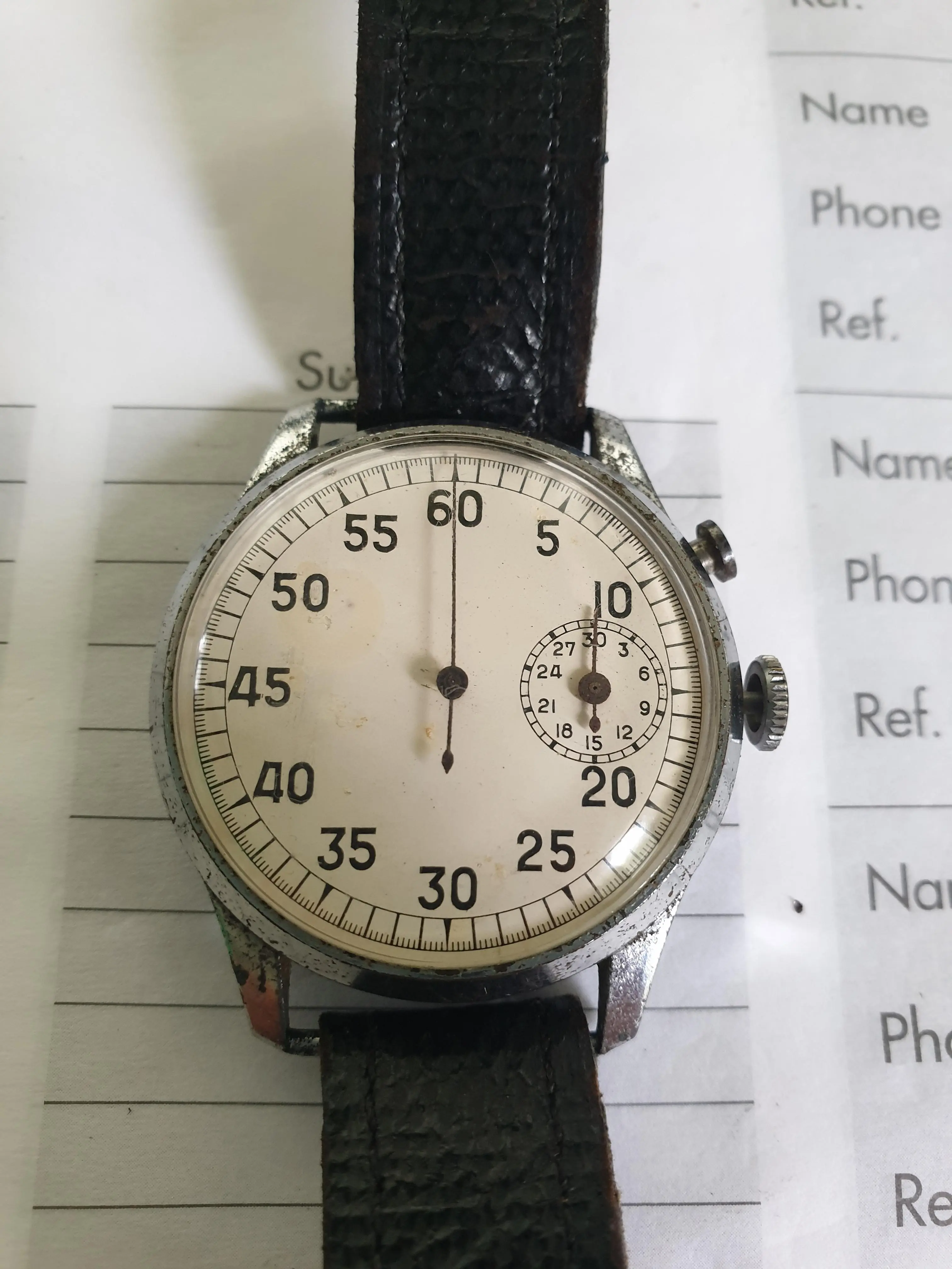 I recently aquired this wrist-timer, made by Lemania. I have seen examples before and allways wanted one. So when this example in excelent shape appeared, usally the chrome plated case is heavily worn, I needed to get it.