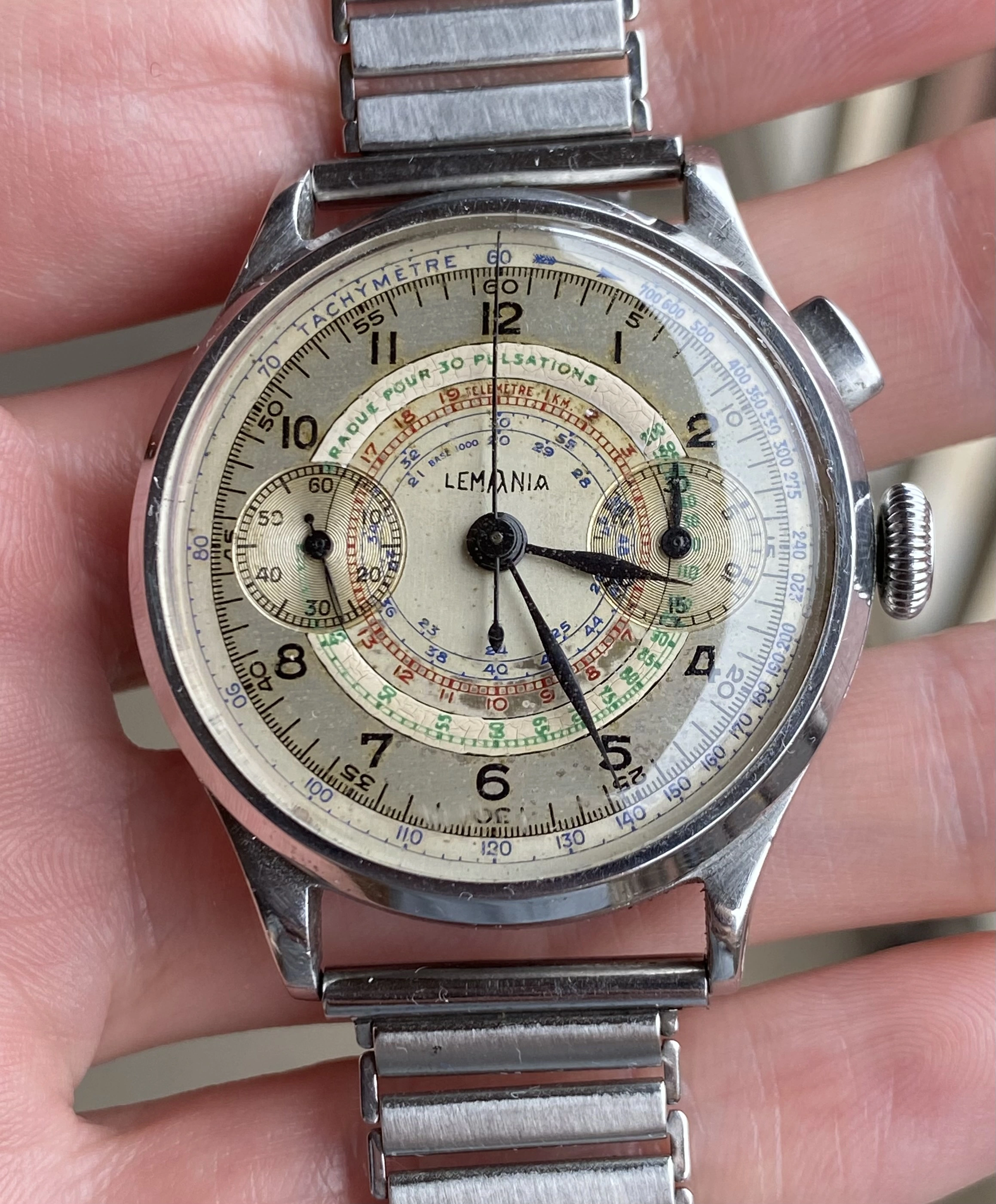 Bottom-line: I won the auction w/o too much fighting, invested 3h of driving one evening after work, and retrieved the watch from its OG owner. The gentleman was formerly a service watchmaker with Omega and had picked this one up directly at the Lemania workshop when he had spent time in the Vallée de Joux.