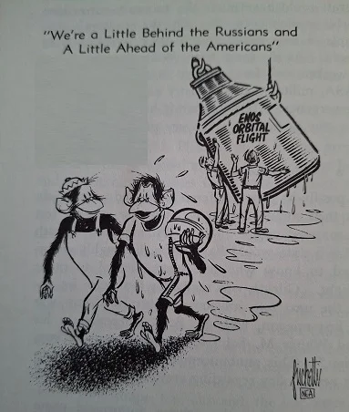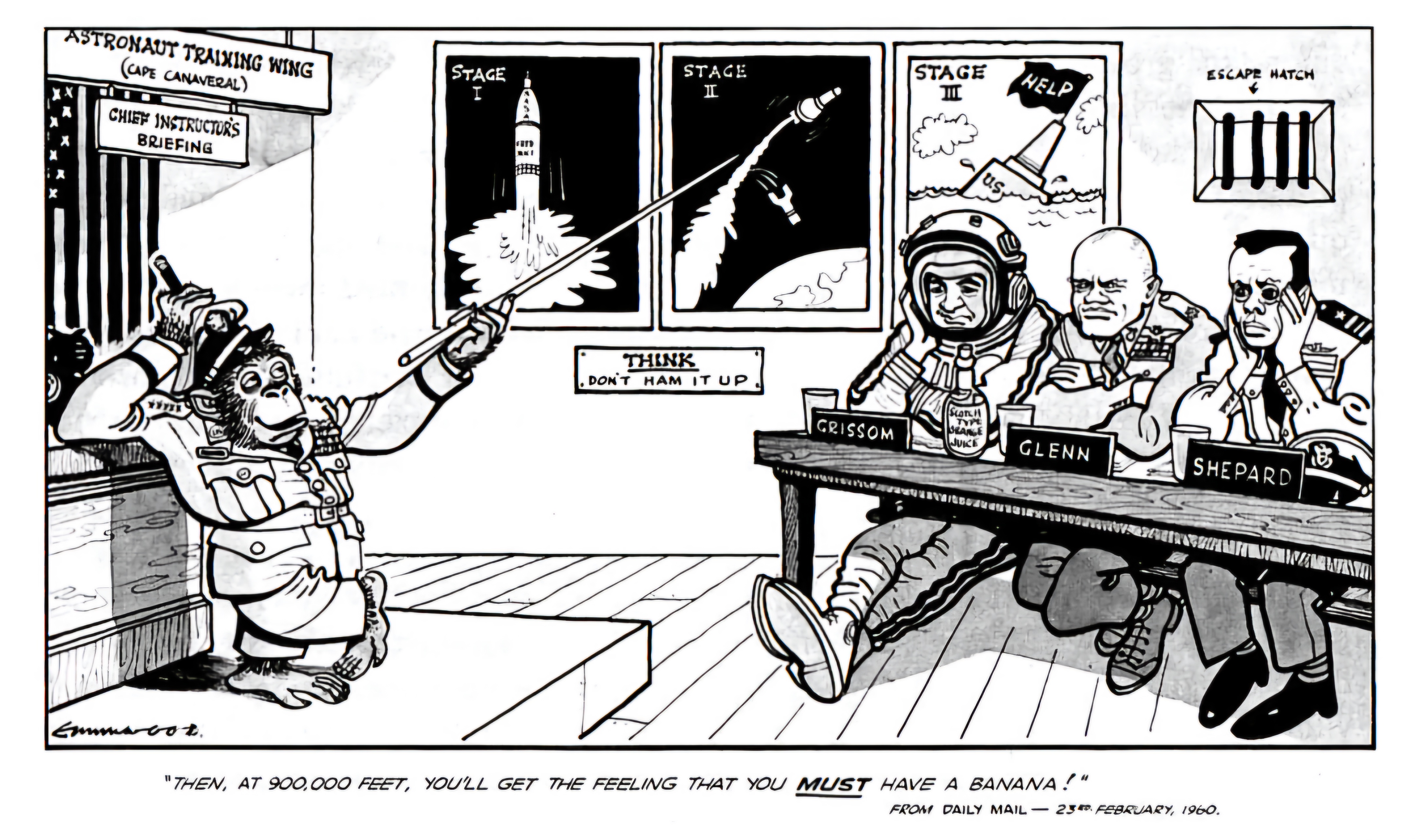 This cartoon shows chimpanzee HAM - Holoman Aeromedical Medical