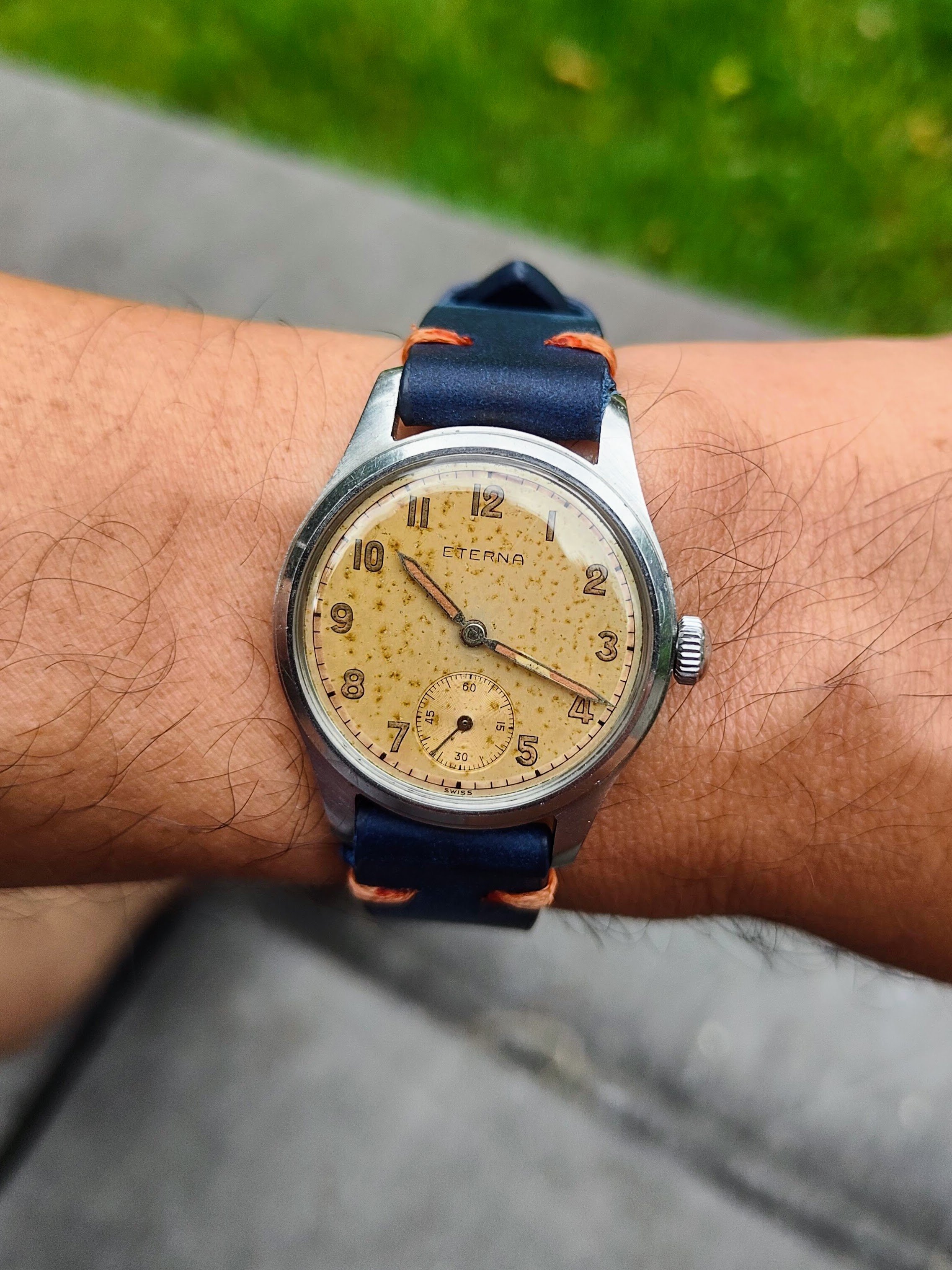 Let's try to keep it to watches that have cases that are 32mm or smaller. If you post one with a 33mm case, you may be chosen for testing of the site's electro-shock feature, which is currently under development. 😁