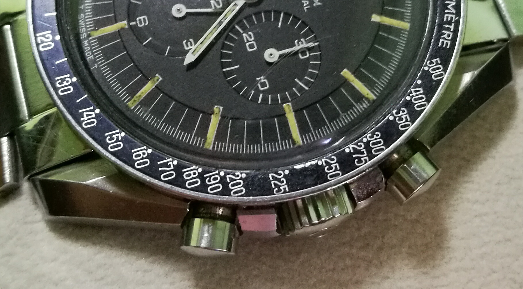 Posts 3,817 Likes 16,152 Fritz ·Dec 15, 2016 Speedmasters Pah! you call that stepped? THIS.... is stepped! Double sunk as only the American railway watches did it! Yup, the enamel face was made in three parts and then assembled.