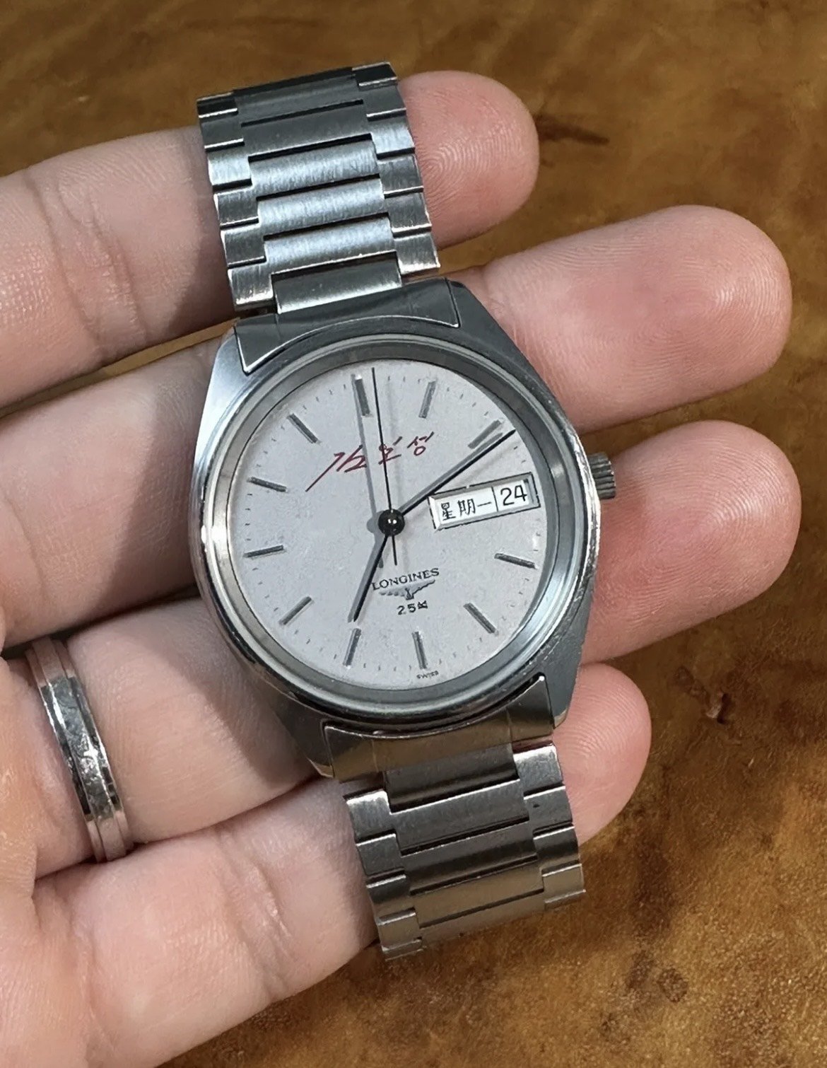 So there it is, a "Longines Admiral Five Stars" with a North Korean dial. Watch seems ok cosmetically and mechanically (which is already a bit off upsetting considering the alleged provenance) but the serial, according to Longines itself, say something different. According to their records the watch was billed to their Italian distributor and was a manual cal.410 watch, which this one is clearly not.