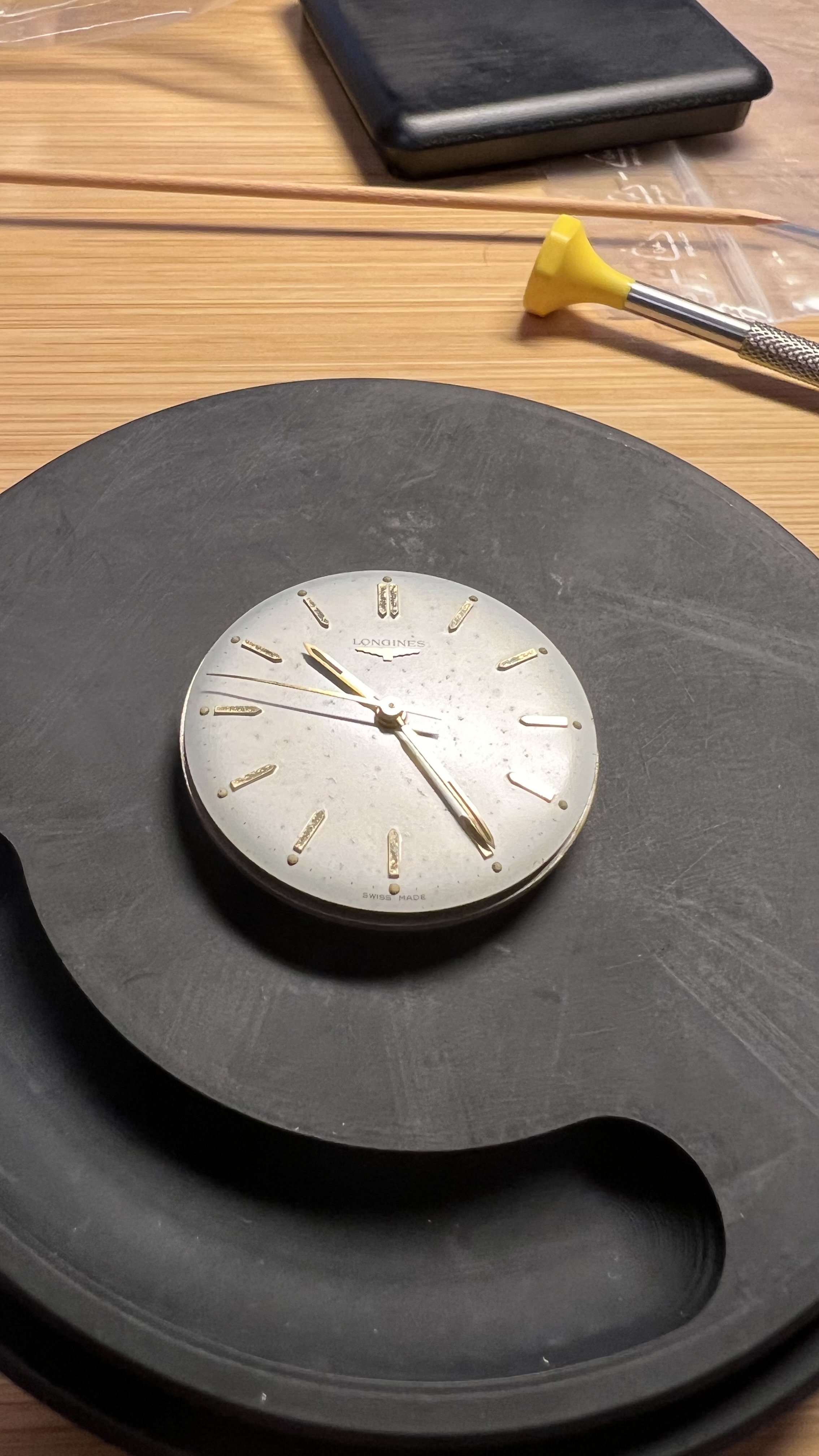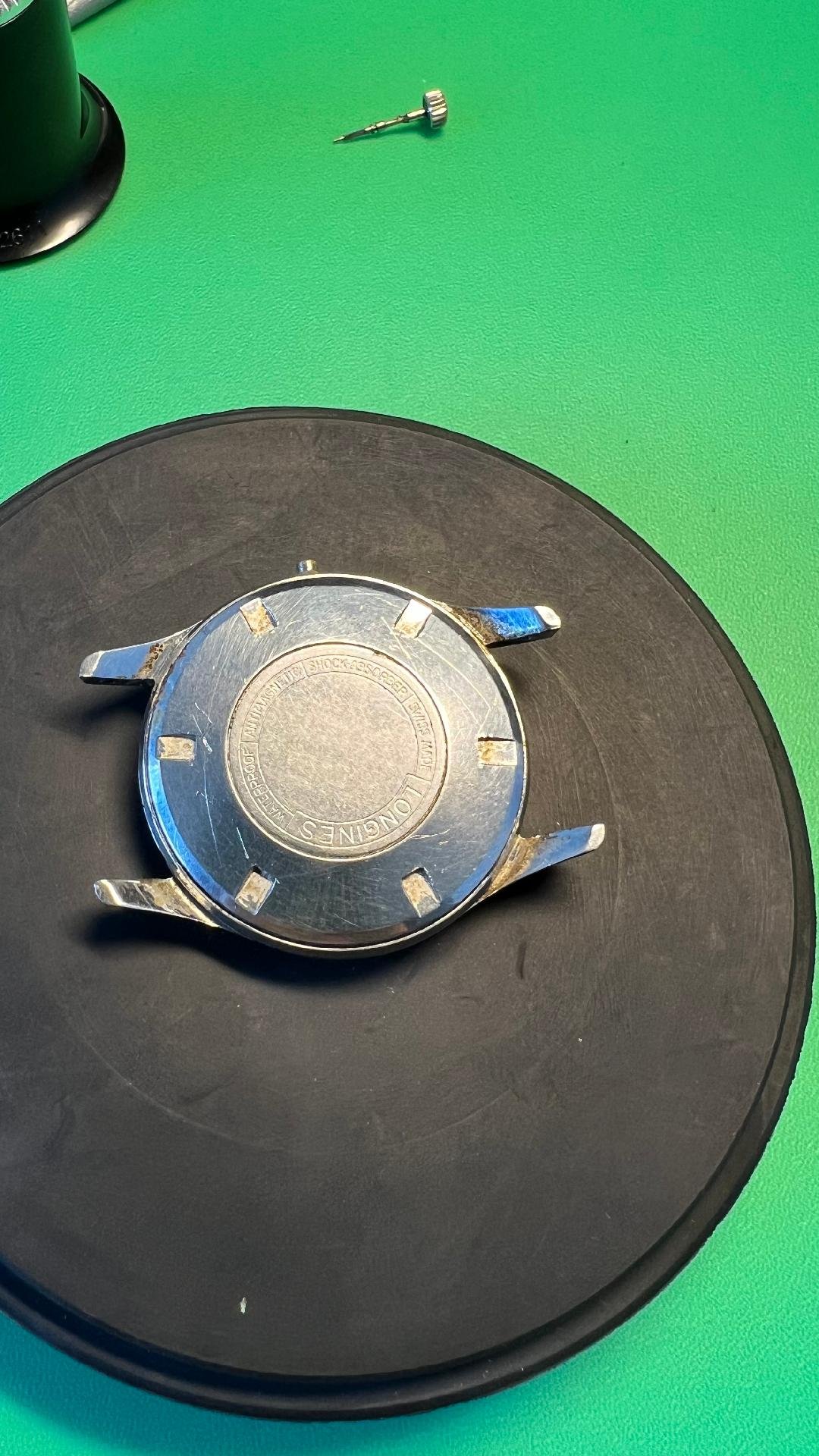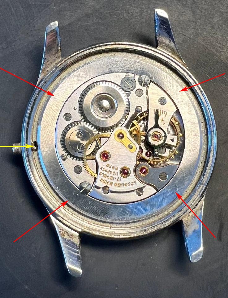 I have a Longines watch in a 6995 case, I unscrewed the case back but next, I'm not sure if I should remove the bezel or if there is any other way to remove the movement from the case. I doubt removing the bezel because I cannot find a slot between the case and the bezel to slide the opener in. I cleaned the dirt all around it but still could not see any slot even under decent magnification. Is there any trick how to open bezels in such cases?