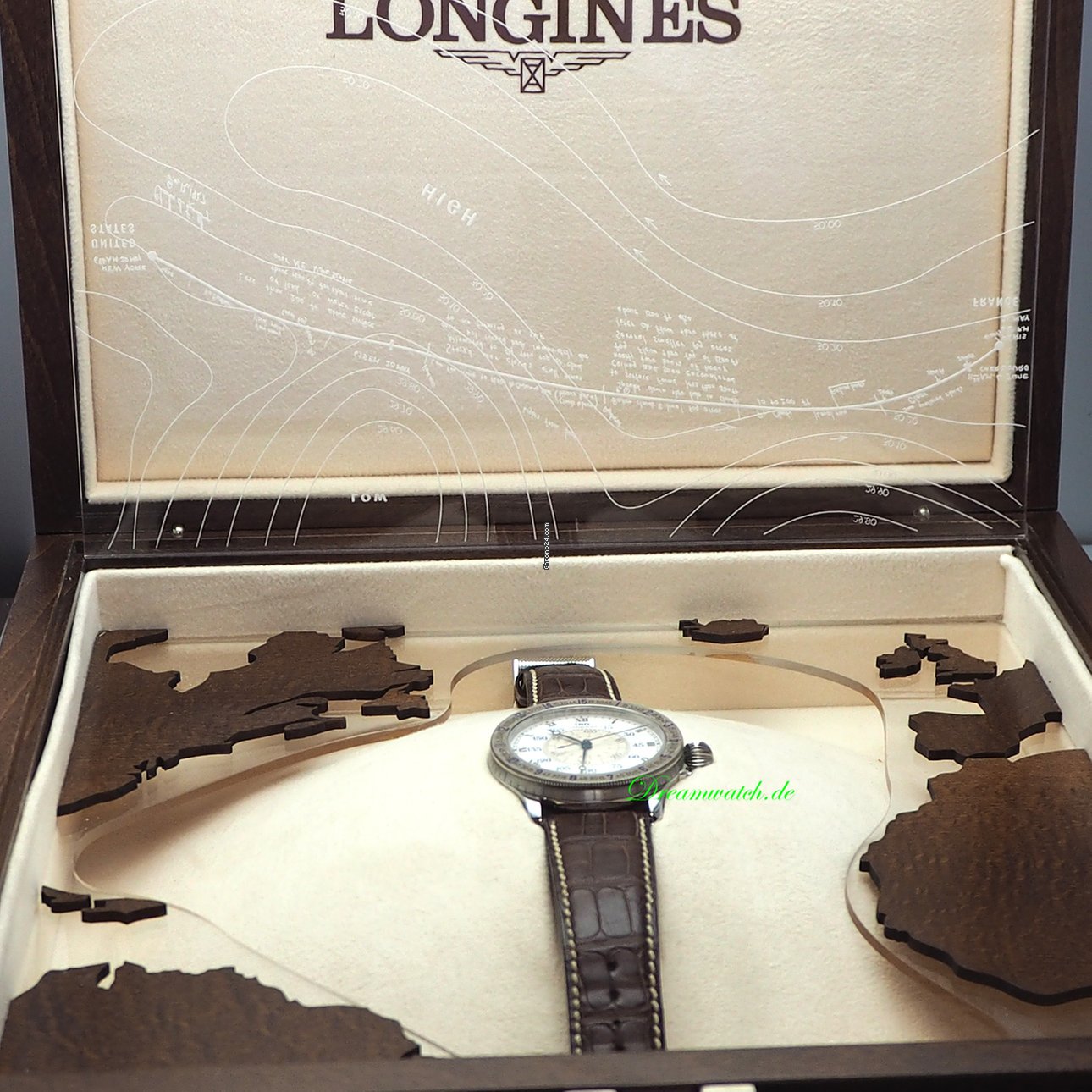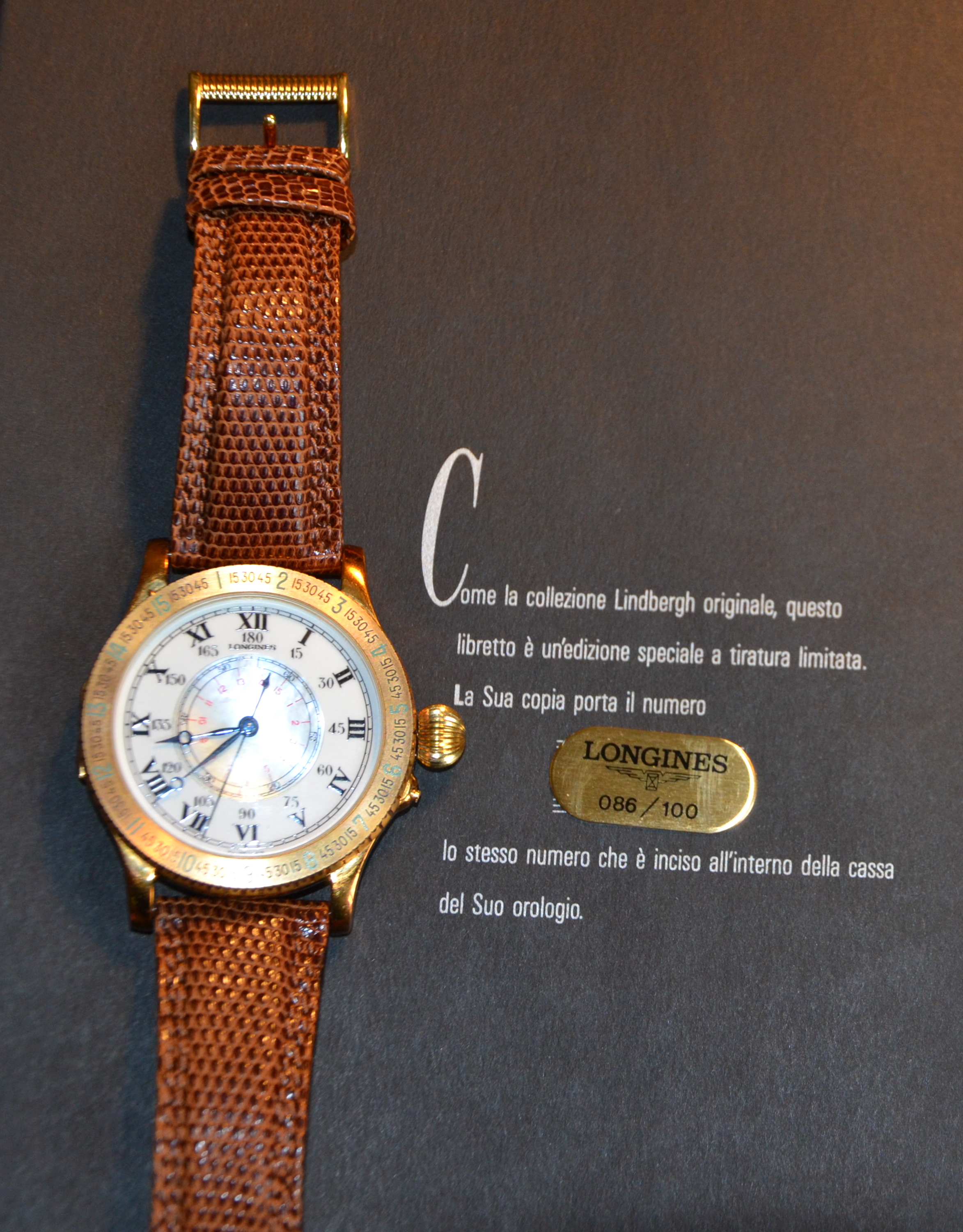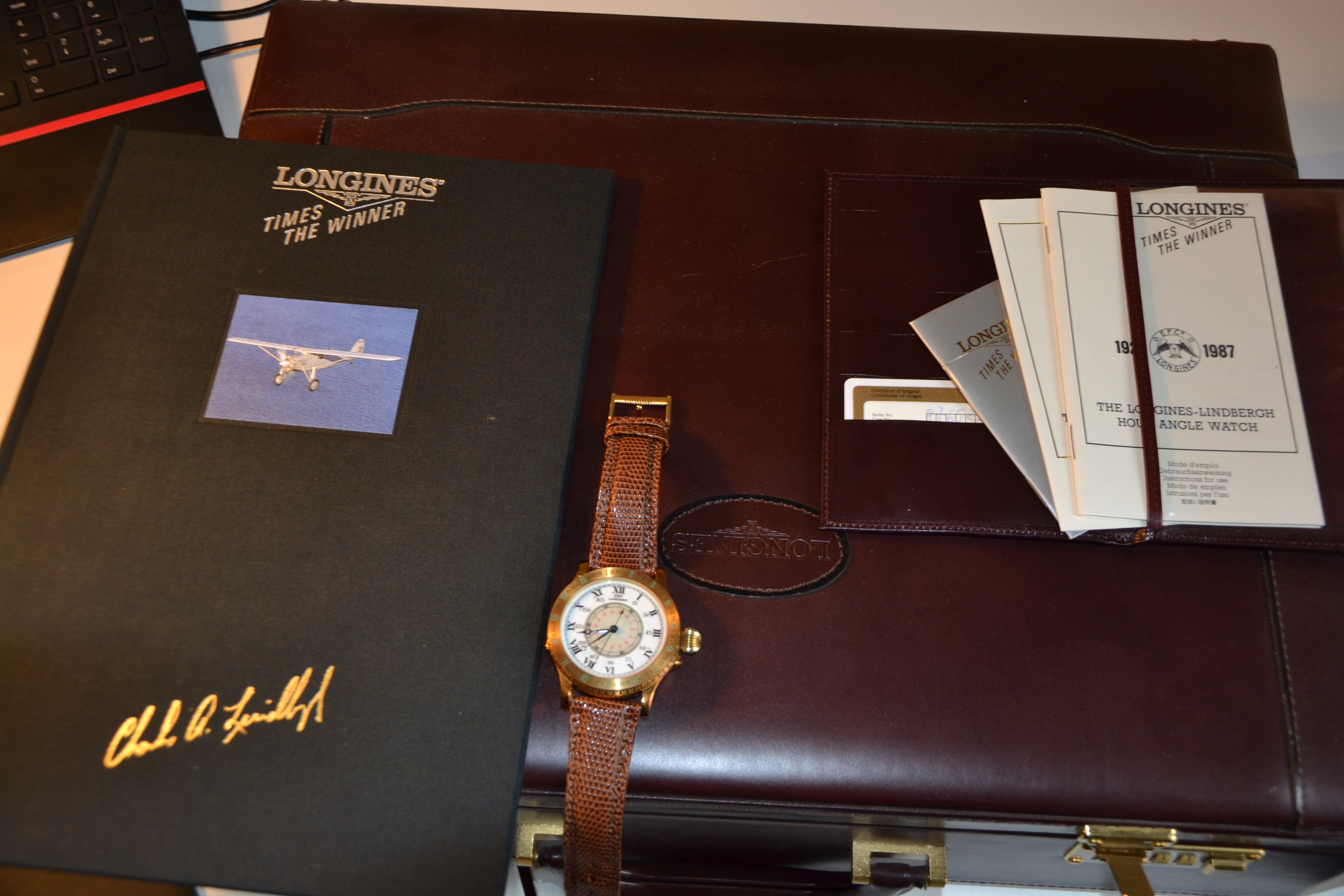 It came in a fullsize leather briefcase in a hardwood individually number watchbox and it even has a matching number wooden model of the Spirit of St. Louis plane!