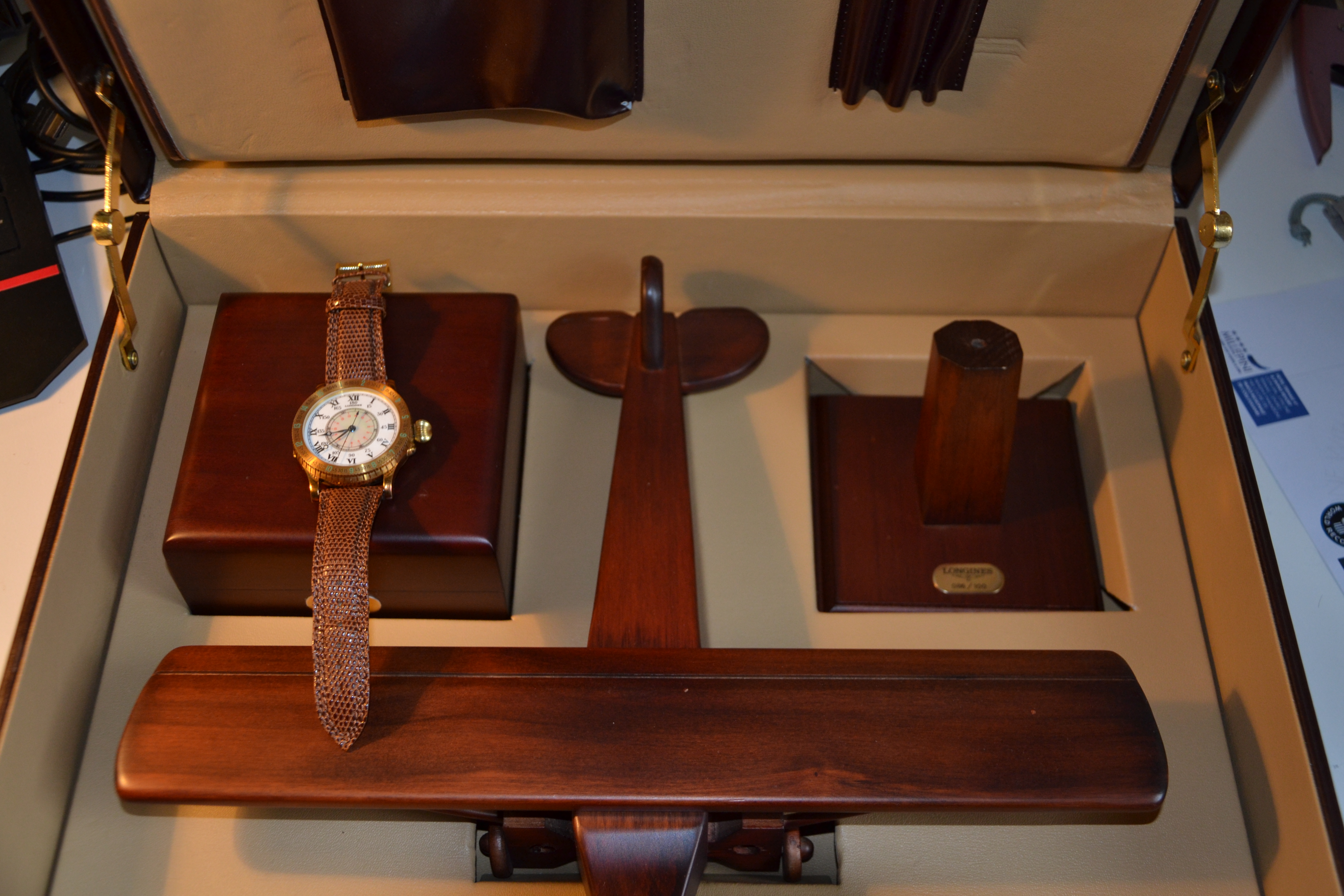 I was once the owner of the 4/5 size limited edition of 1987. In fact, my parents bought it new as my high-school graduation gift. We were in Switzerland waiting for a connecting flight when I saw this watch shown in the display of a duty-free shop, and it looked quite fantastic next to the other watches present. And since I was a young licensed private pilot, the connection to Lindbergh was an additional point of attraction. My Dad bought it on the spot, as I had just completed my French Baccalauréat the week before. While I didn't get a briefcase full of goodies, it nevertheless came with a nice wooden case and the leather wallet visible on the some of the photos previously posted in this thread.