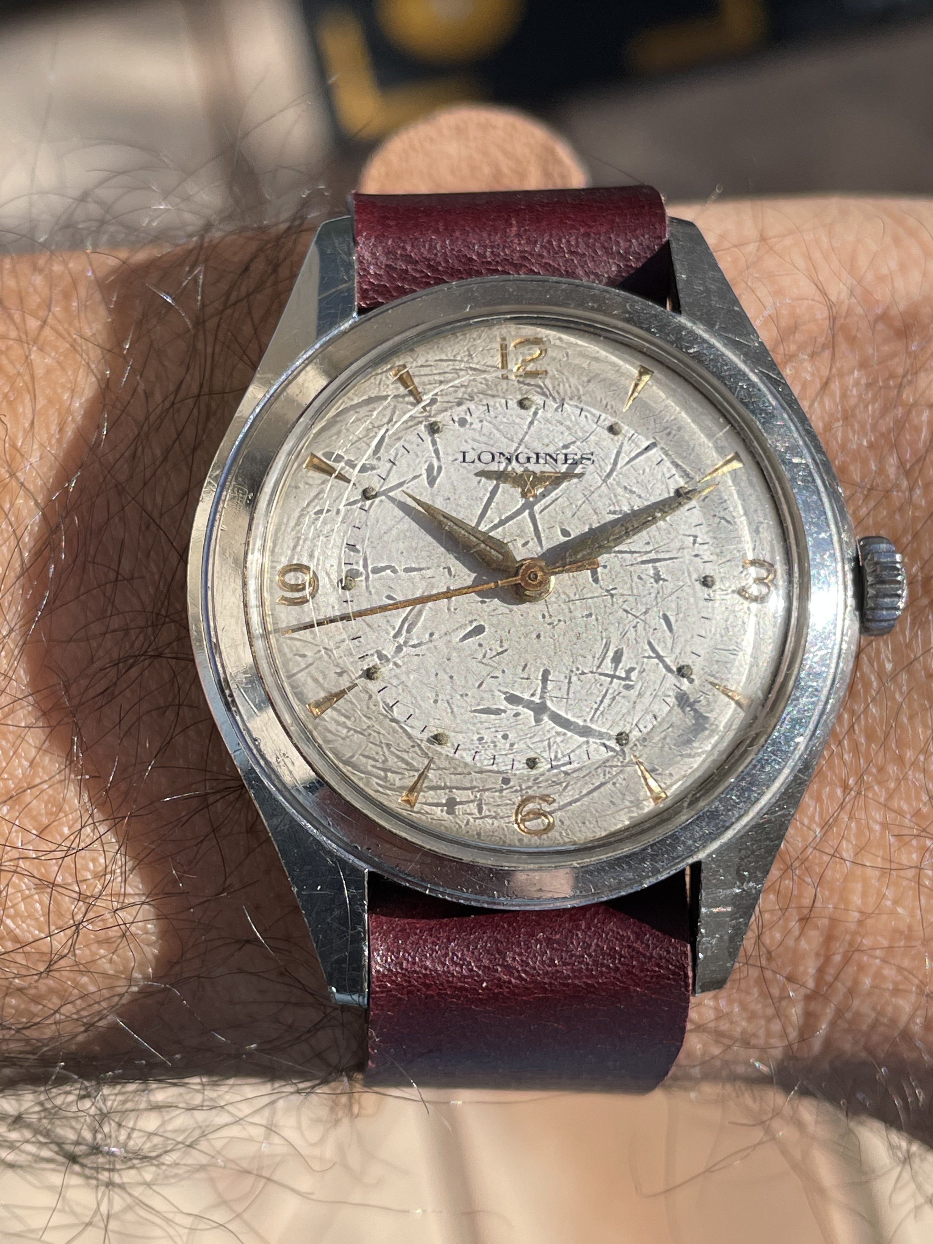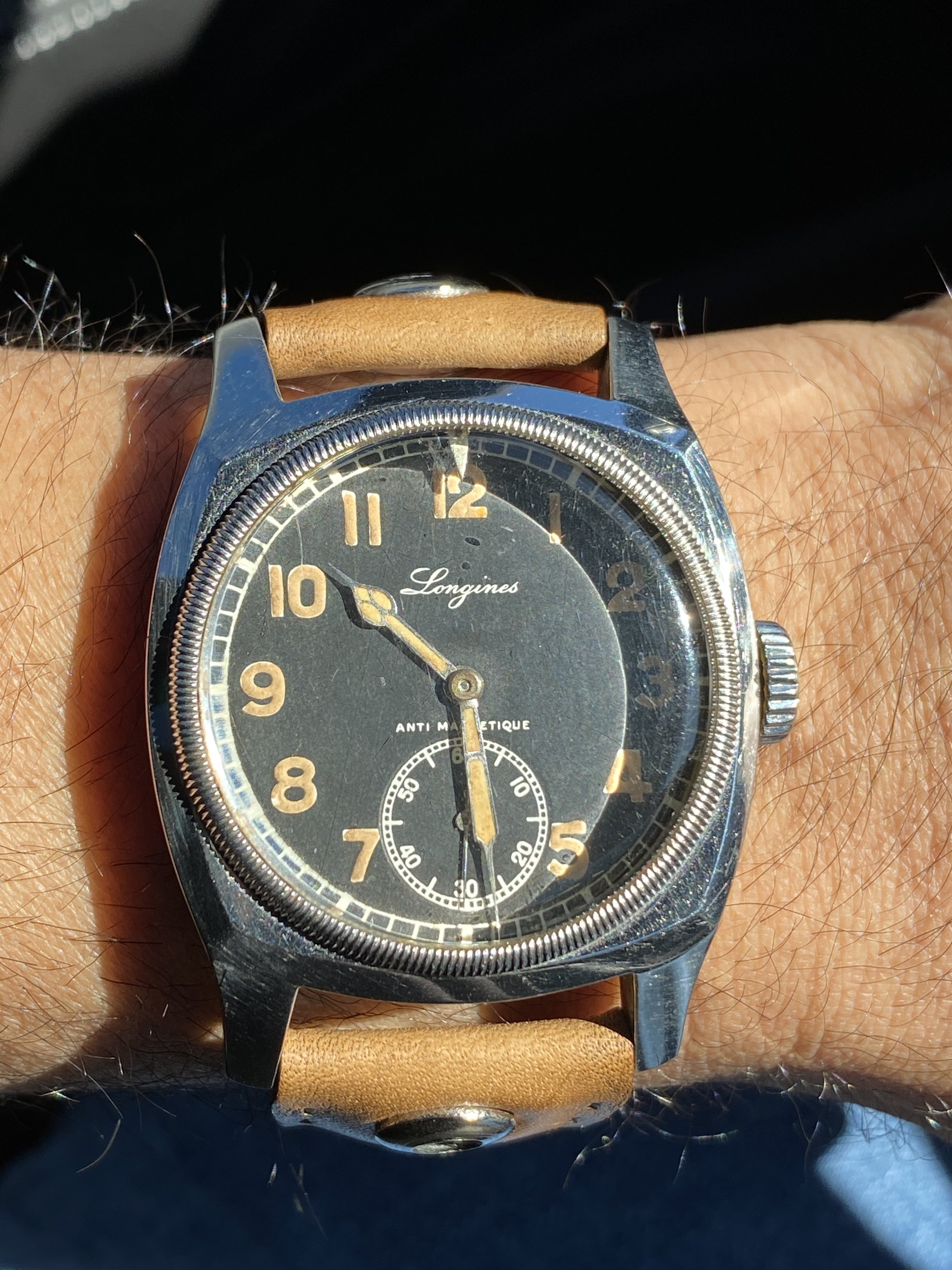 Hi Rumar89. I'm new on omegaforums and my mother language is German - sorry for possible mistakes in my English or breaking rules. But back to the "fixed bar & removable bar discussion". I can add some further information on this. I own a Longines 12.68N from 1941 in a case that is called "cassa bariletto" above. I bought it some time ago from Ebay and it came with one fixed bar and with one removeble bar. The removable bar was installed in the way you describe it by a former owner or a watch maker. This person did a pretty bad job. When drilling one of the holes he missed the exact position. But he noticed it and stopped drilling before the hole went completely througt the lug. The next try was better, the hole was drilled in the correct position completely through the lug. It is impossible that such a bad work all in all would have left the Longines company. I'm quite sure that watches with "mixed bars" have one repaired bar. So what to do with such a watch? To me this is more than what some people would call "patina" or "signs of age and use". To me it is just a bad damage. As the watch showed some more signs of damage - for example a deep scratch at the 9:00 position from unprofessional opening - I decided to have it restored carefully. A correct fixed bar was installed and all the unprofessionally drilled holes were closed. Also the deep scratch at 9:00 was filled up. This works were done by laser welding and the former holes are completely unvisible - even under strong magnification. At last the former surface structure was carefully renewed with a minimum of abrasive work to prevent loss of original substance more than absolutely necessary. I'm happy with this watch, it got back its dignity and beauty.