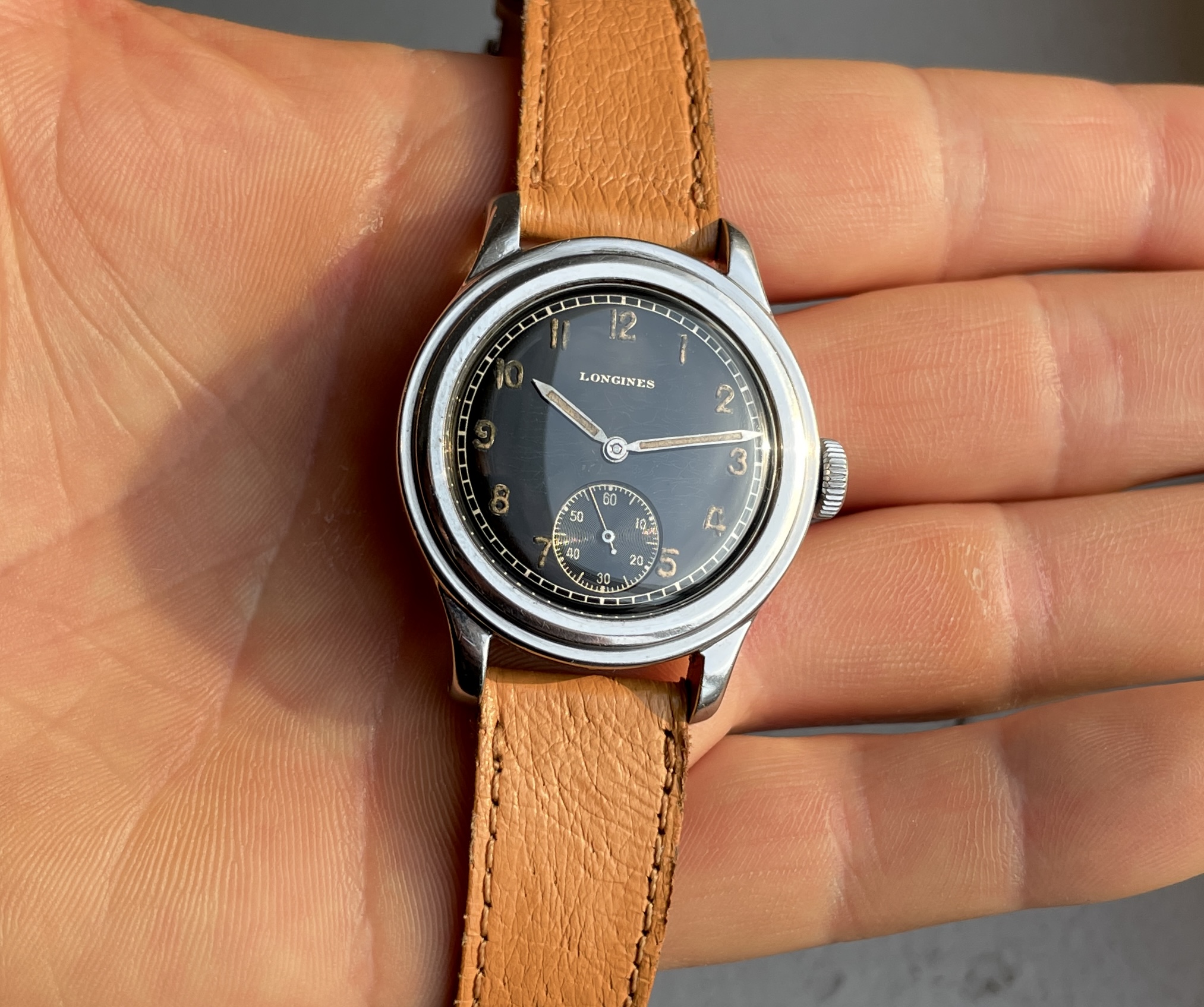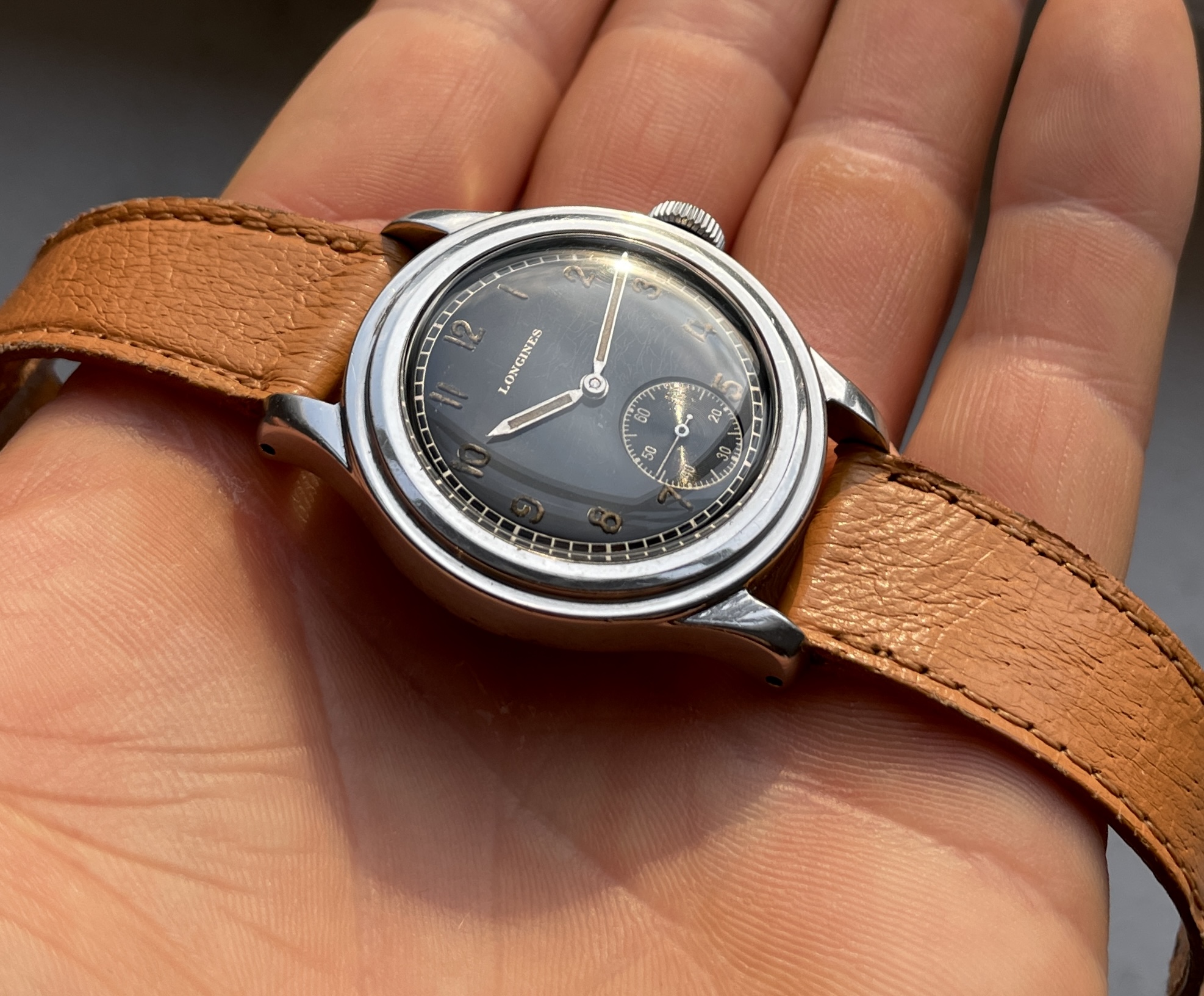 ·Distortion caused by crystals makes assessing dial curvature difficult. Additionally, my presumption that the majority of tre tacches have flat dials makes me biased towards seeing flatness. However, looking at these dials, only the black one stands out as potentially curved, to me.