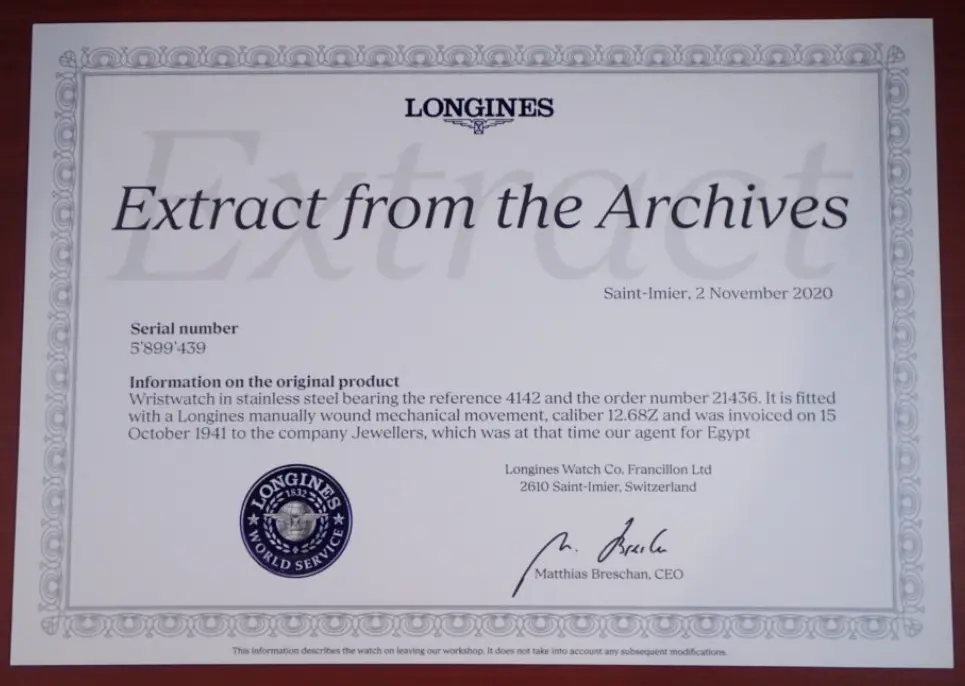 I specifically asked Longines when asking for an extract of mine and got this answer: