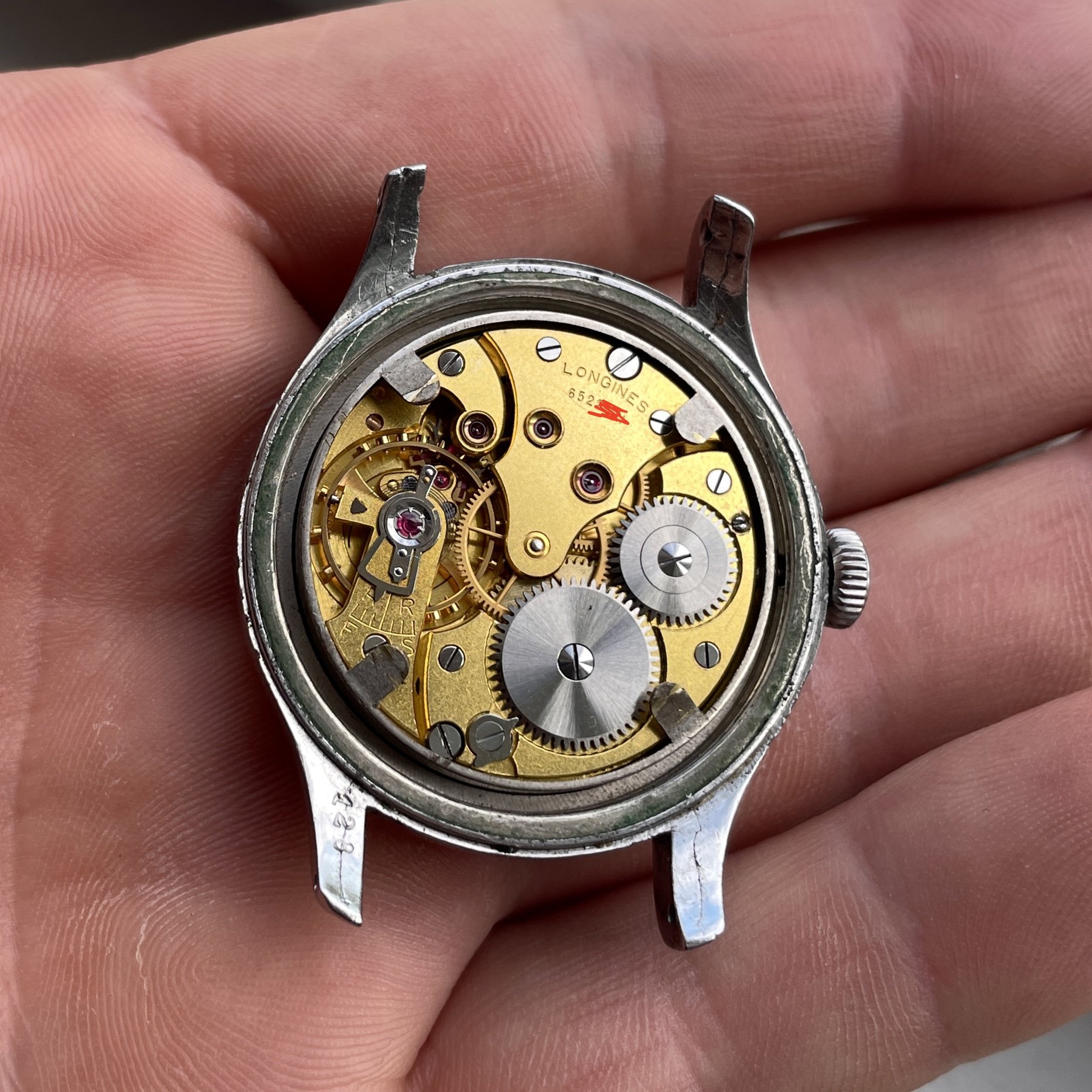 In our registers, the original serial number 6'461'428 identifies a wristwatch in stainless steel bearing the order number 22243 and the reference 4142. It is fitted with a Longines manually wound mechanical movement, caliber 12.68N."
