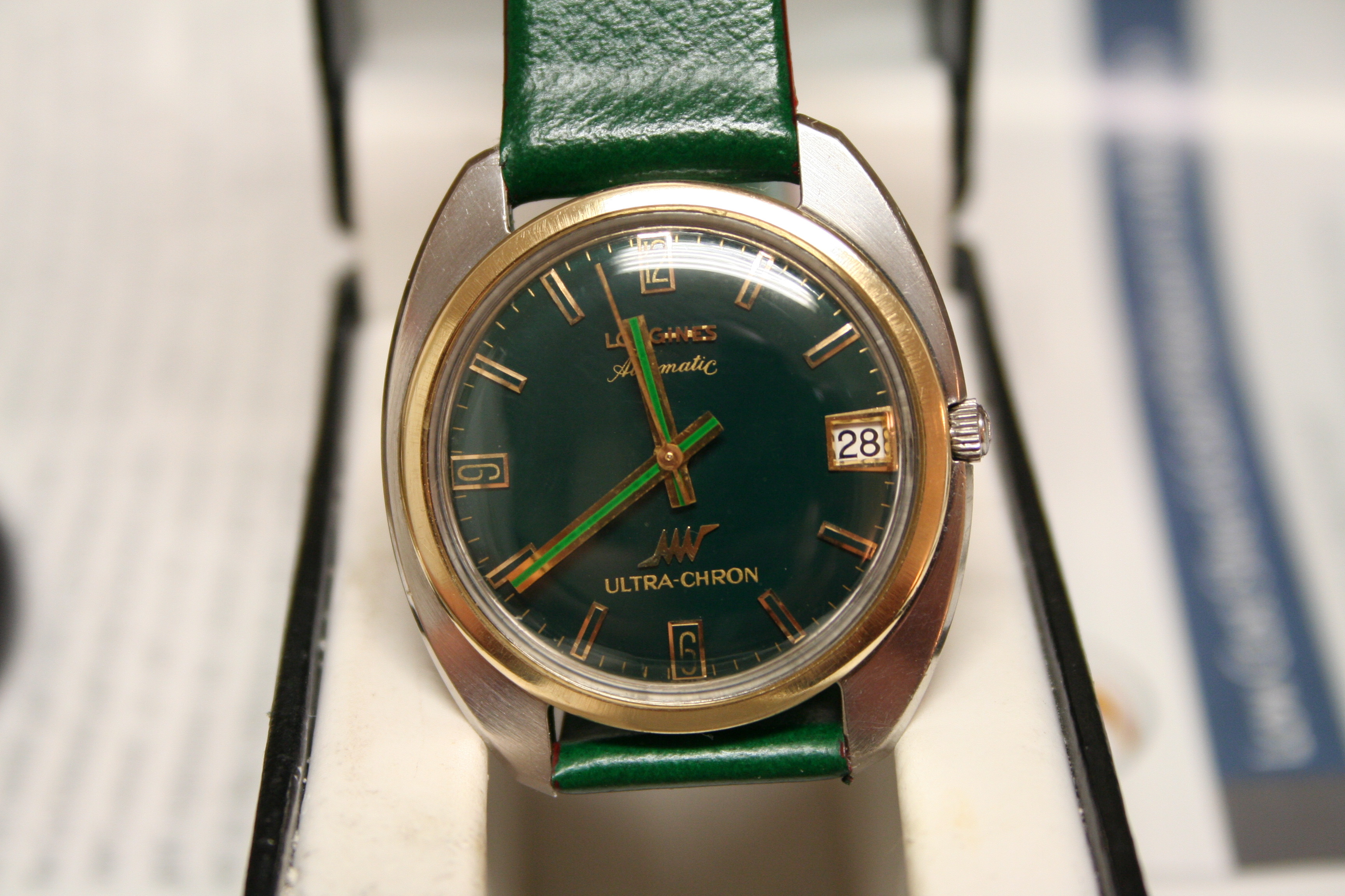 Posts 49 Likes 59 goodcall ·Aug 28, 2014 I'm selling my Longines "green watch" fully serviced and in excellent condition;everything's original but the crown looks to be replaced from Wittnaue r-some more info-http://omegaforums.net/threads/buying-on-ebay-longines-ultra-chron-cal-431.8466/#post-99293 asking-$475