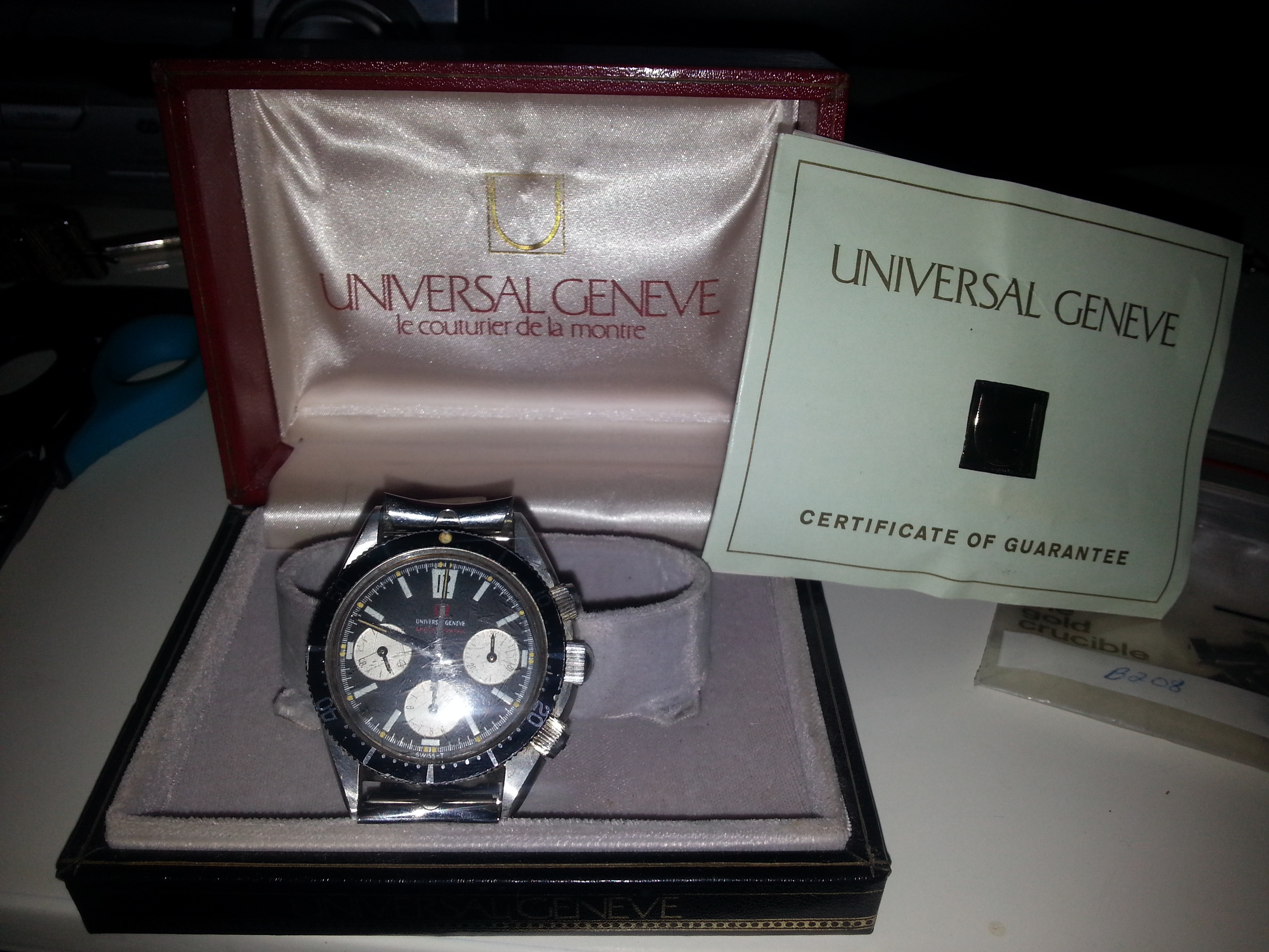 I'm new to this forum and I saw that in a thread about ebay watches you talked about an item I've just bought. It is a Space Compax "almost" full set, I mean the bracelet is not the original one but papers and box are there in excellent shape also, almost new ! The watch was advertised "not ticking" but I assure you, it is ticking!!! Need a service though but it keeps time and chronograph is fully working, perfect dial, I think it had never been polished. So happy with this gem.