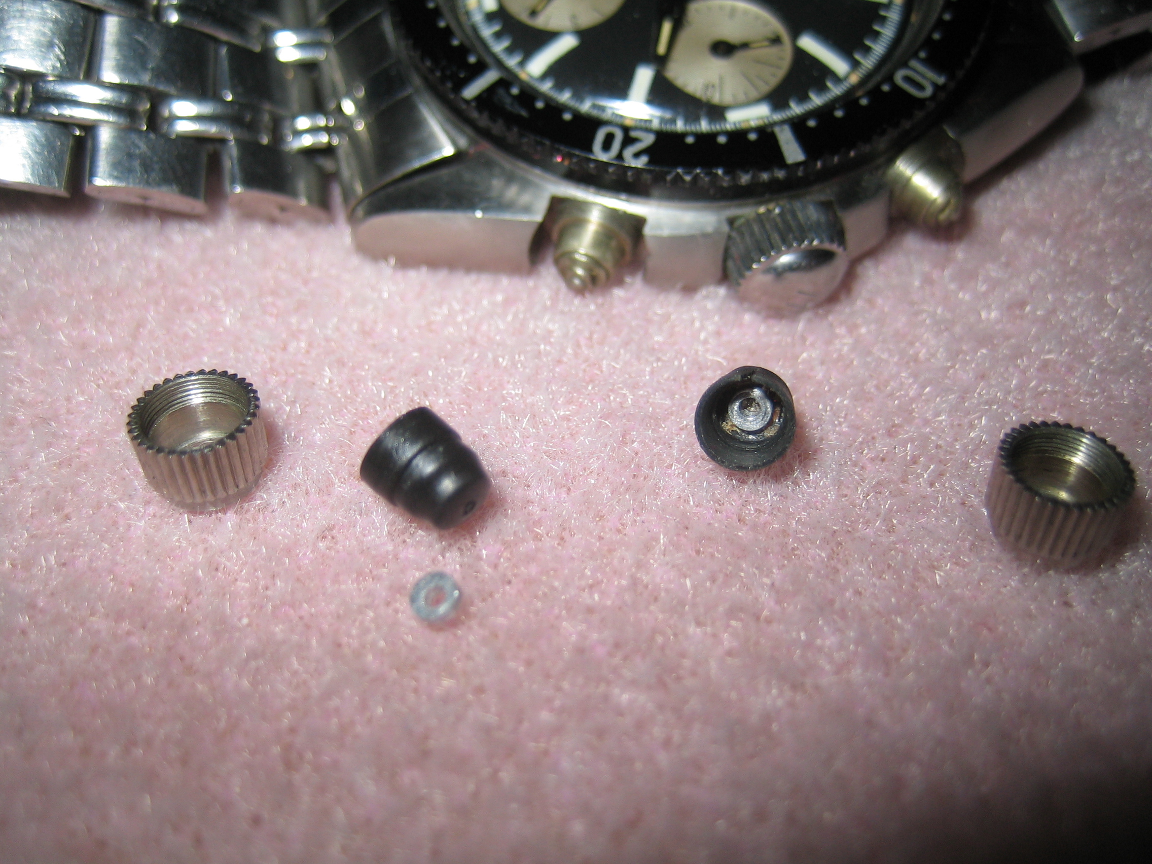 The problem is that the pushers just go like old plastic, they're just like "tar" (almost liquid). Indeed I'm looking for replacement pushers, if anybody can help me, it would be nice. For the bracelet, I just want to know if it is "findable" and if so, how much you think? I do not a lot of money after buying this watch but very happy with it.