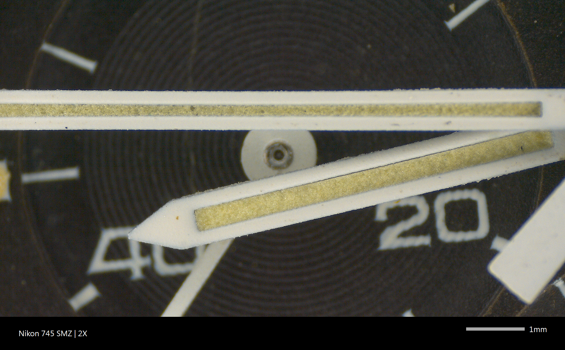 Just wanted to share some pics of the aged tritium/ZnS lume of my 105.012s I recently took