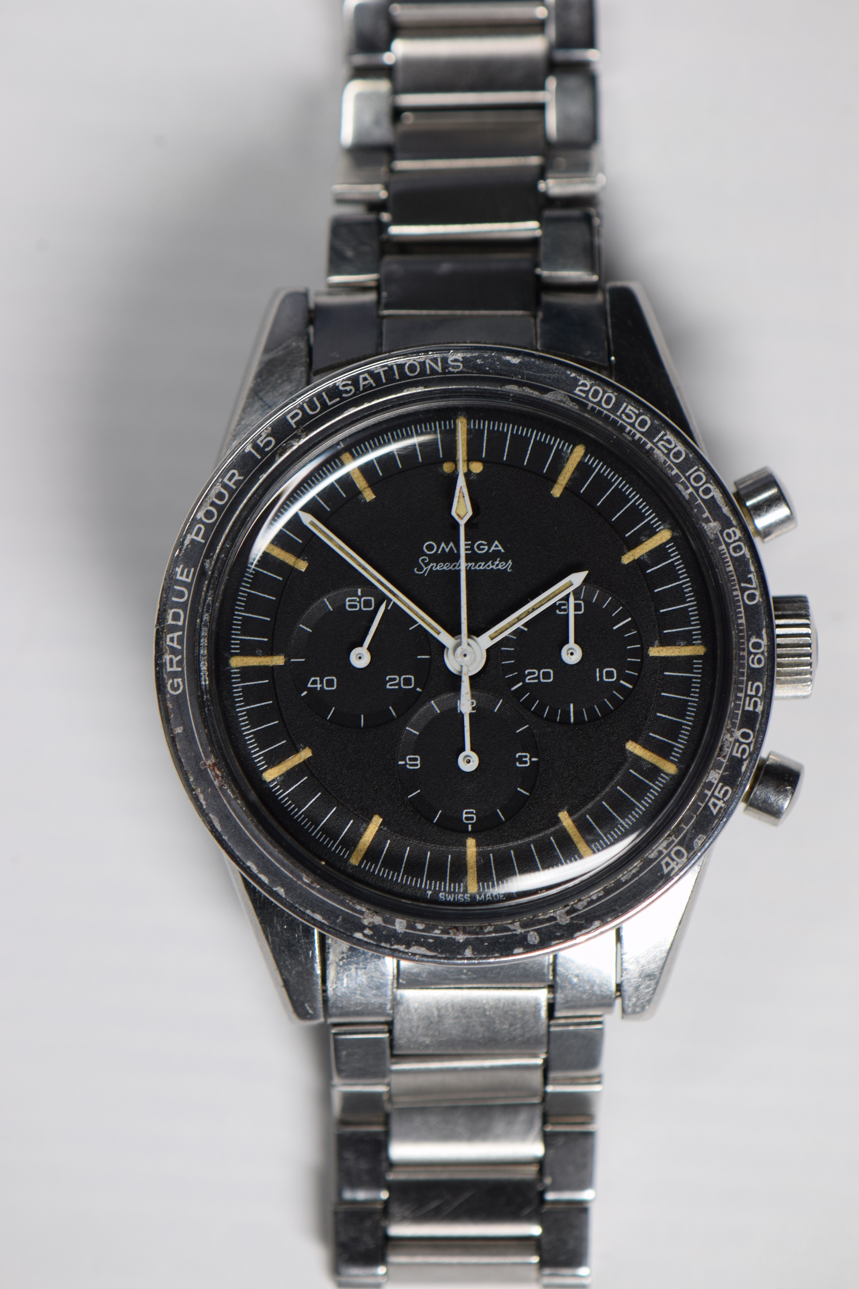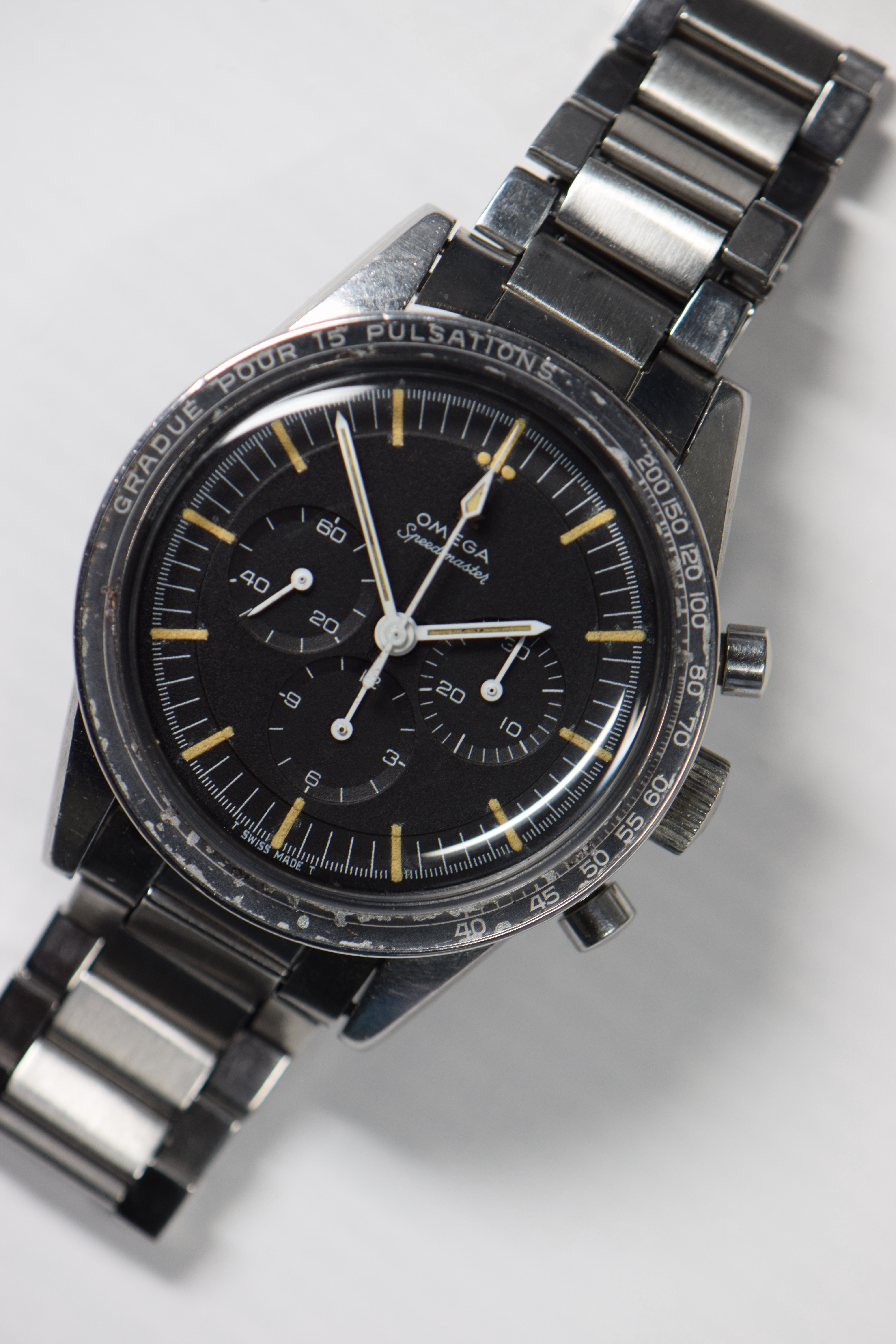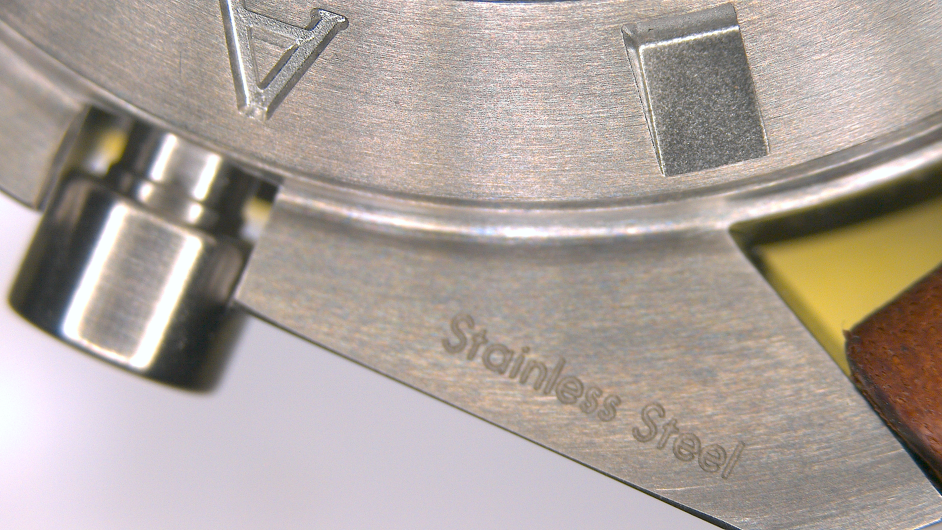 The contrast of the polished old style Omega logo with the crown brushed stainless steel is beautiful :