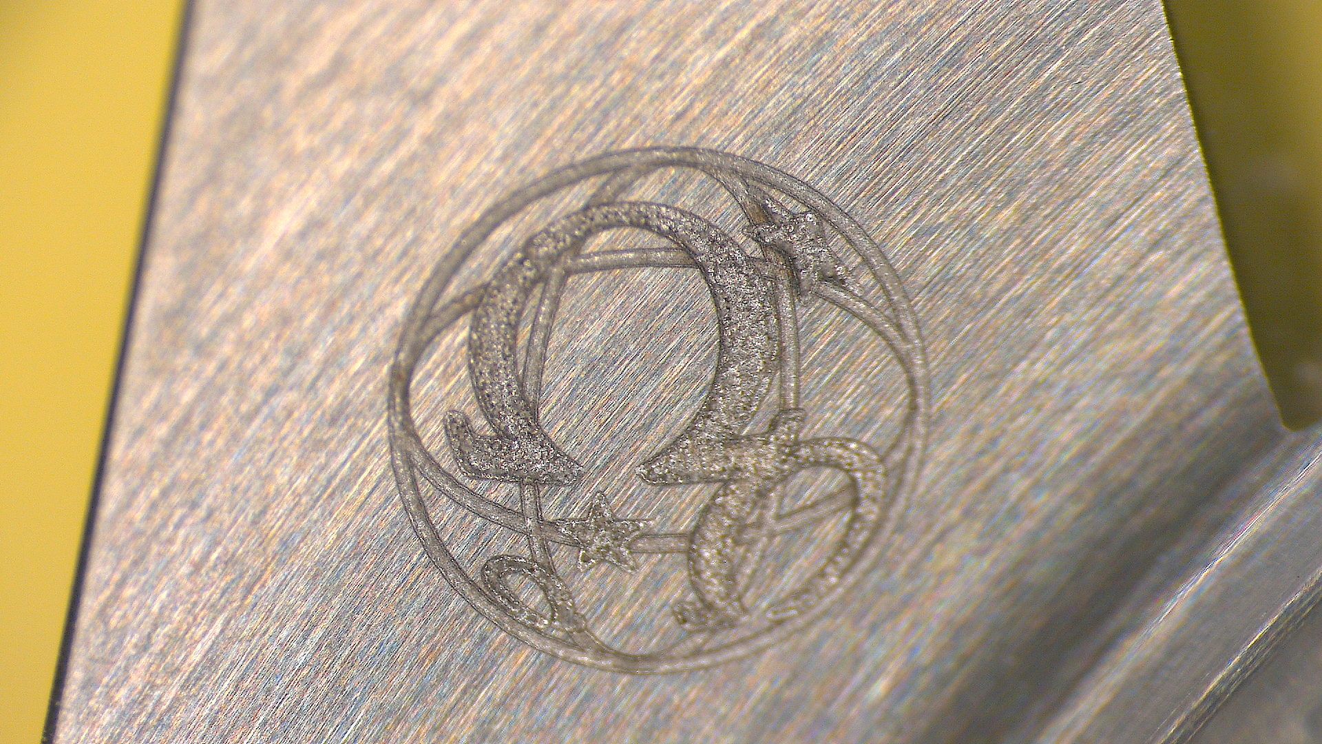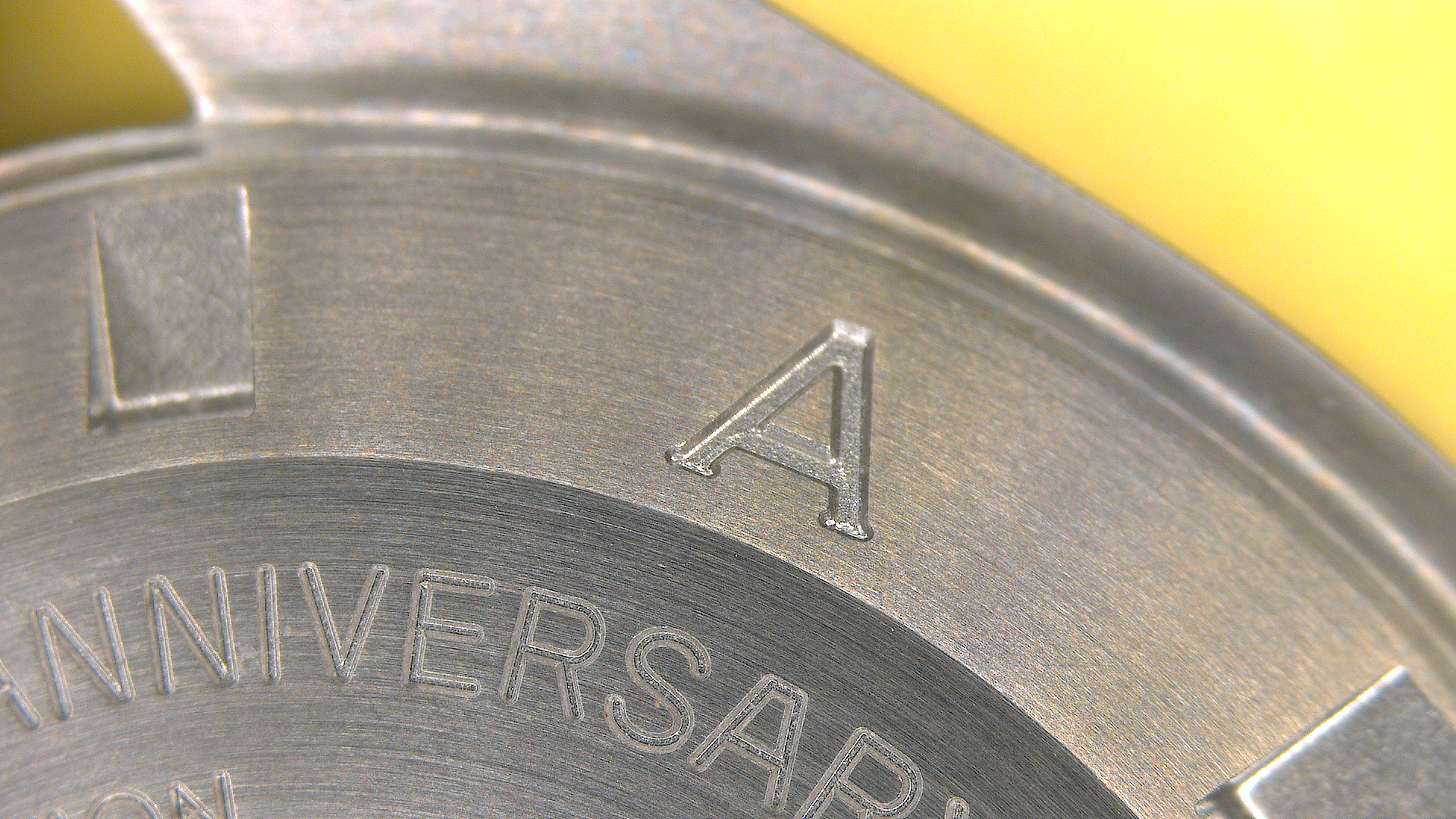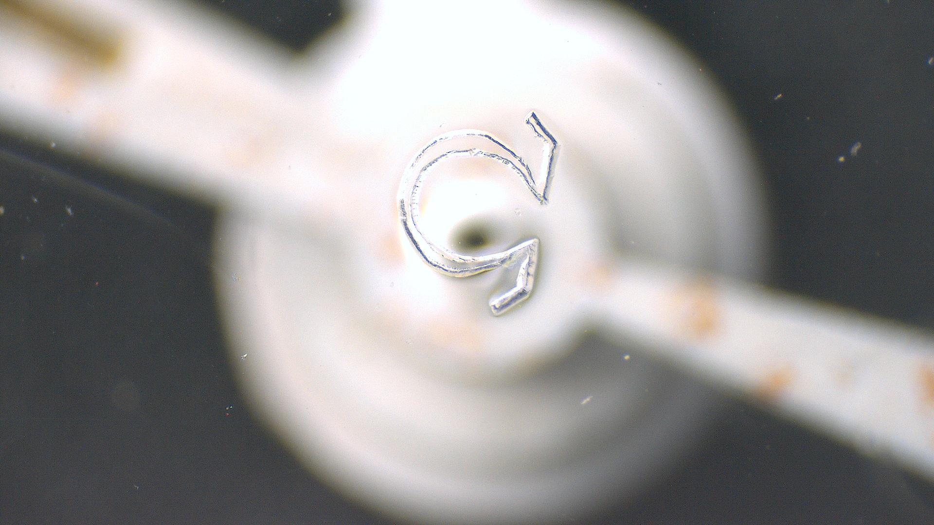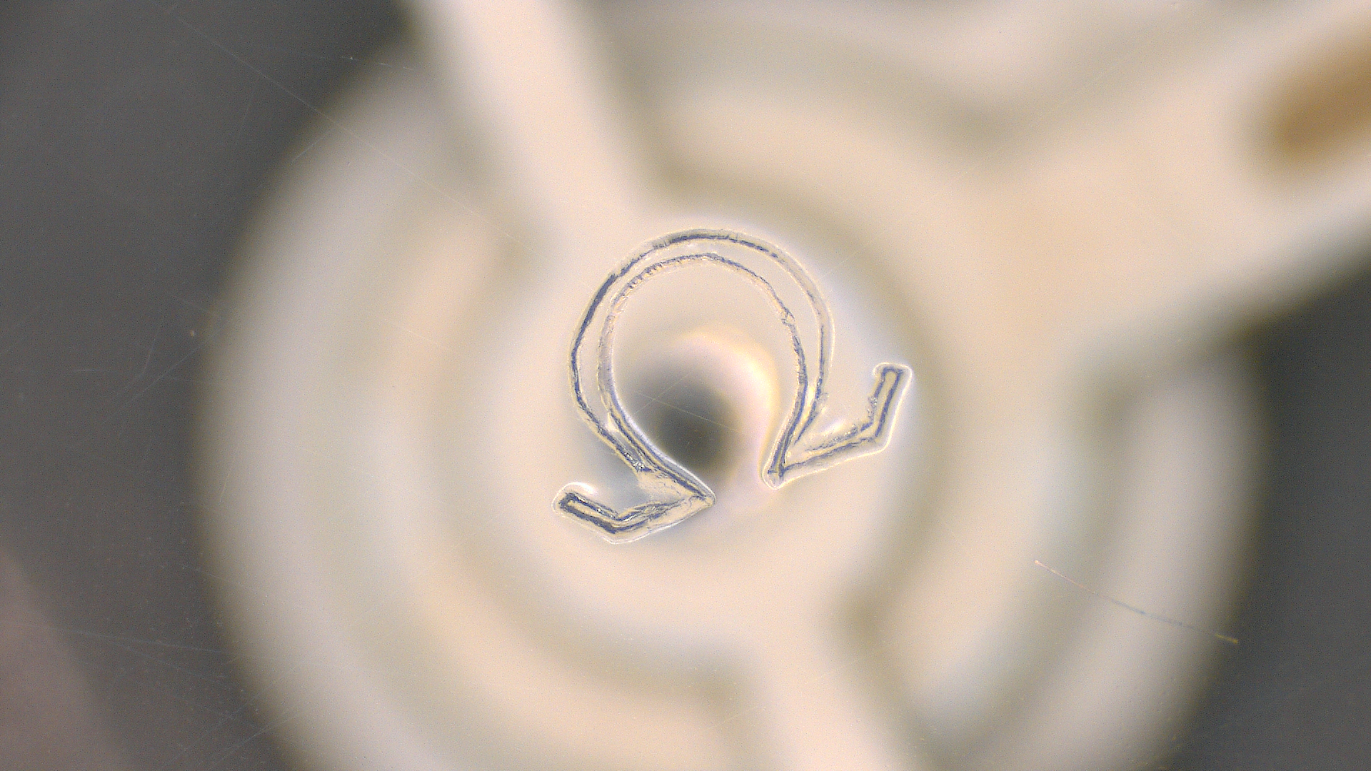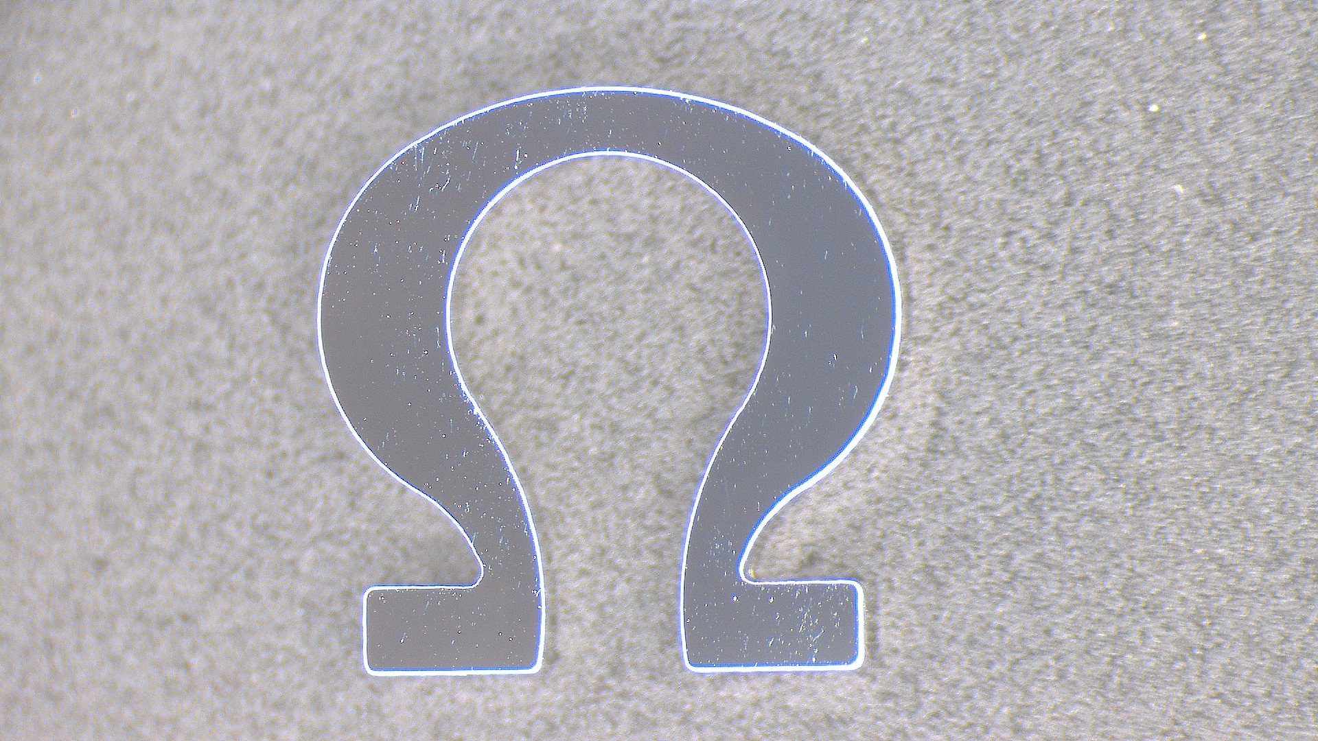 The engraved Omega symbol on the hesalite :