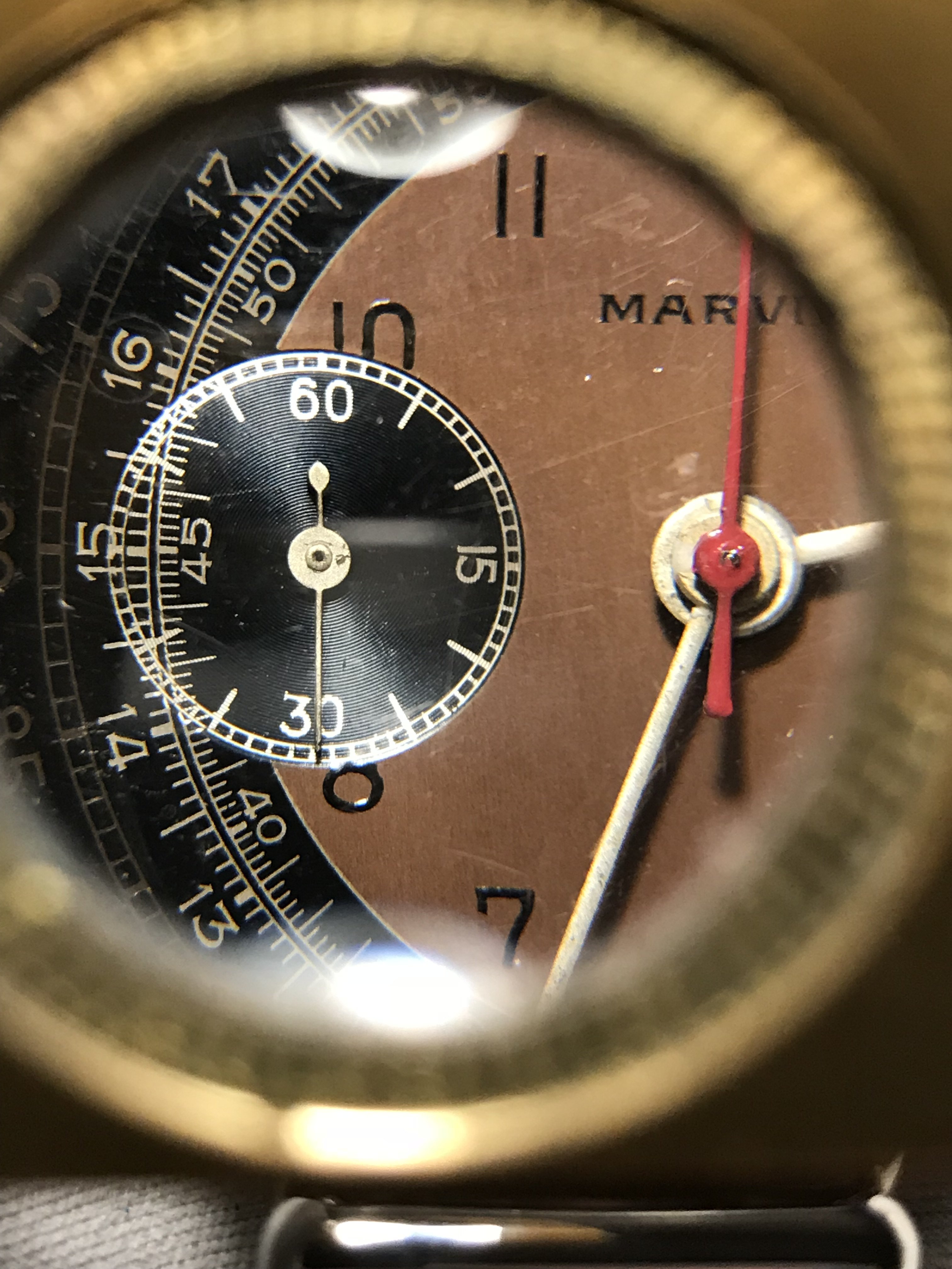 Posts 1,301 Likes 2,576 queriver ·Aug 13, 2018 This is my vintage Marvin chrono taken with an iphone through a Casartelli magnifying glass...