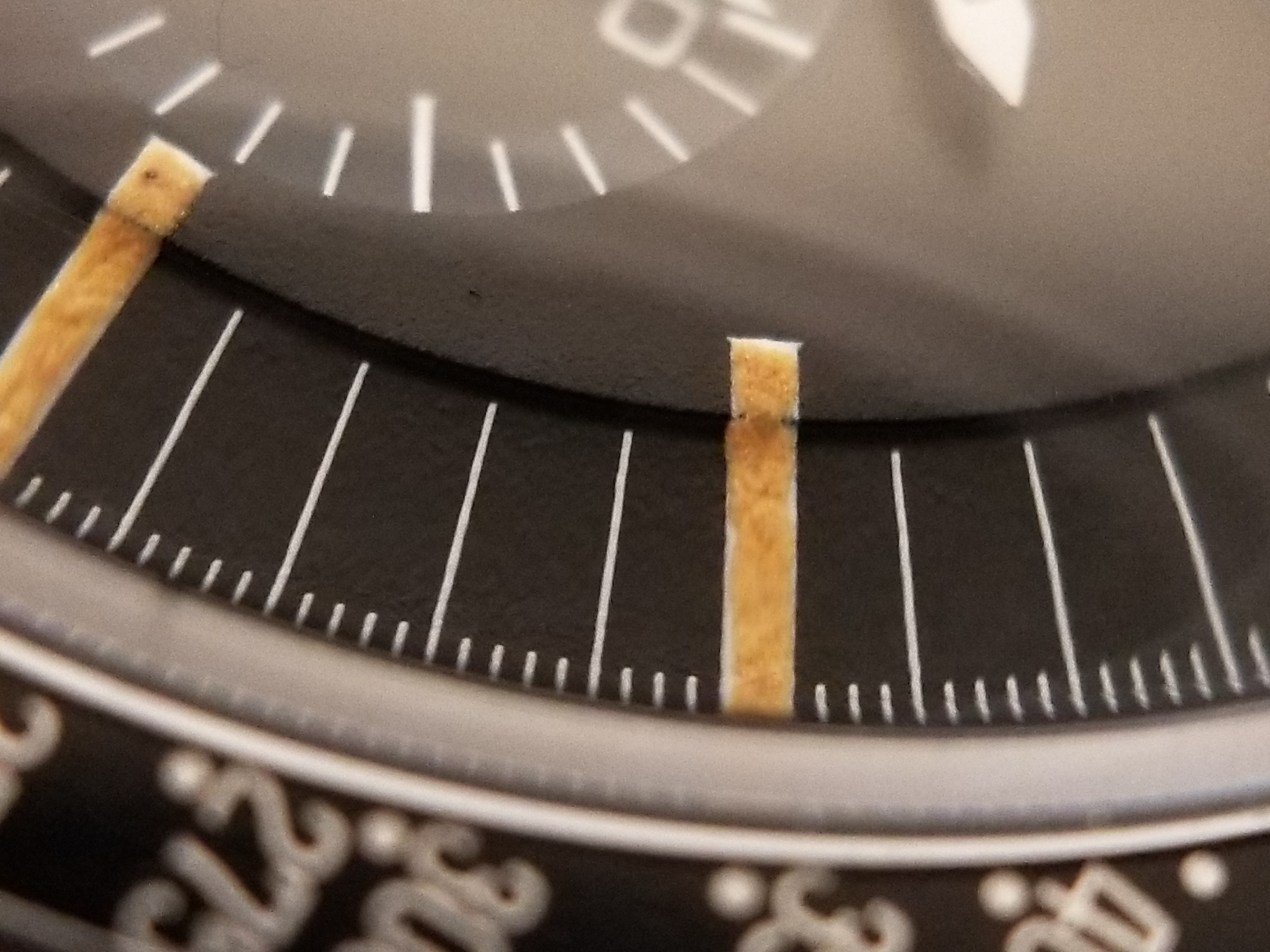 Just wanted to share some pics of the aged tritium/ZnS lume of my 105.012s I recently took