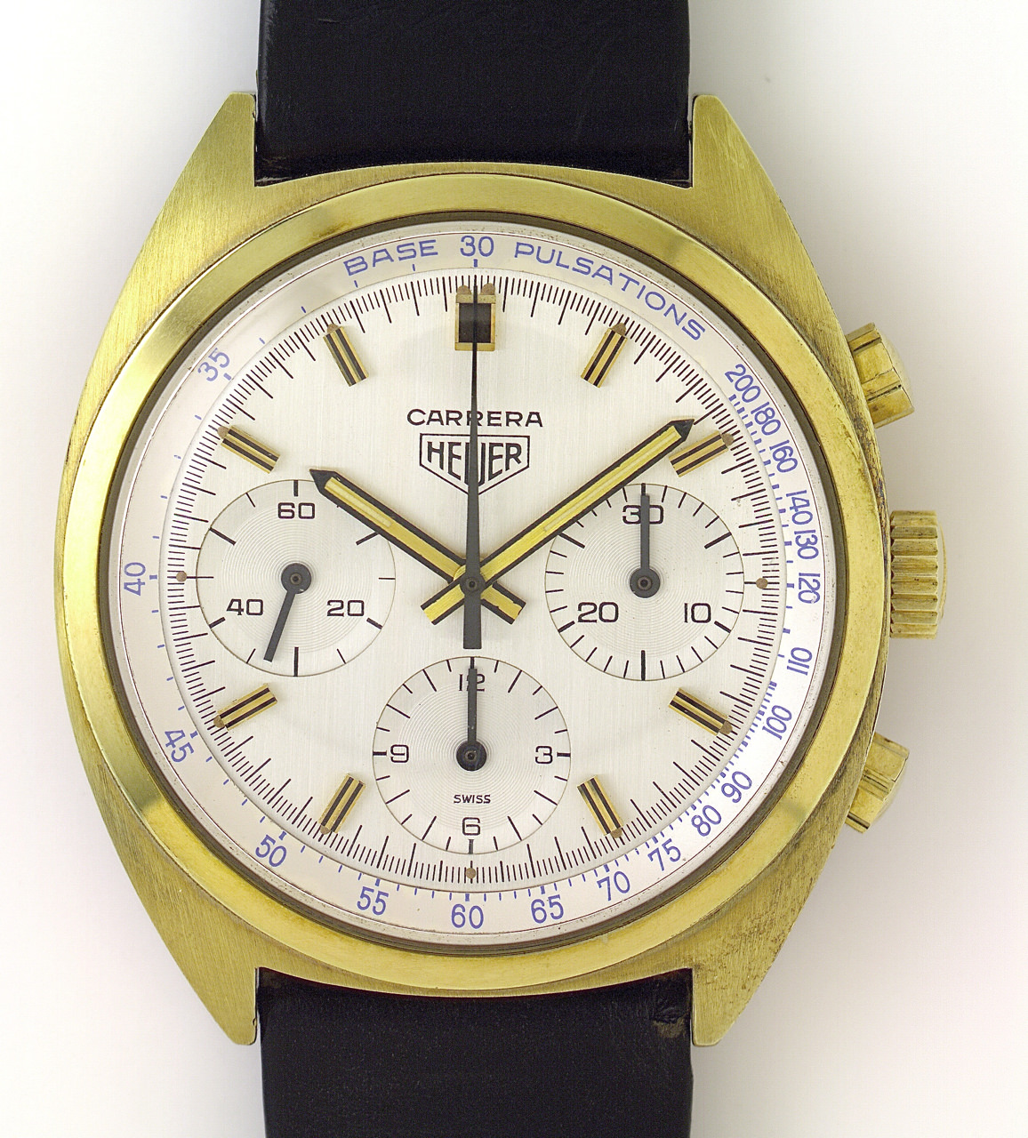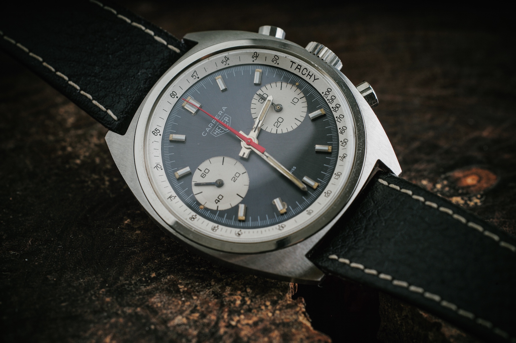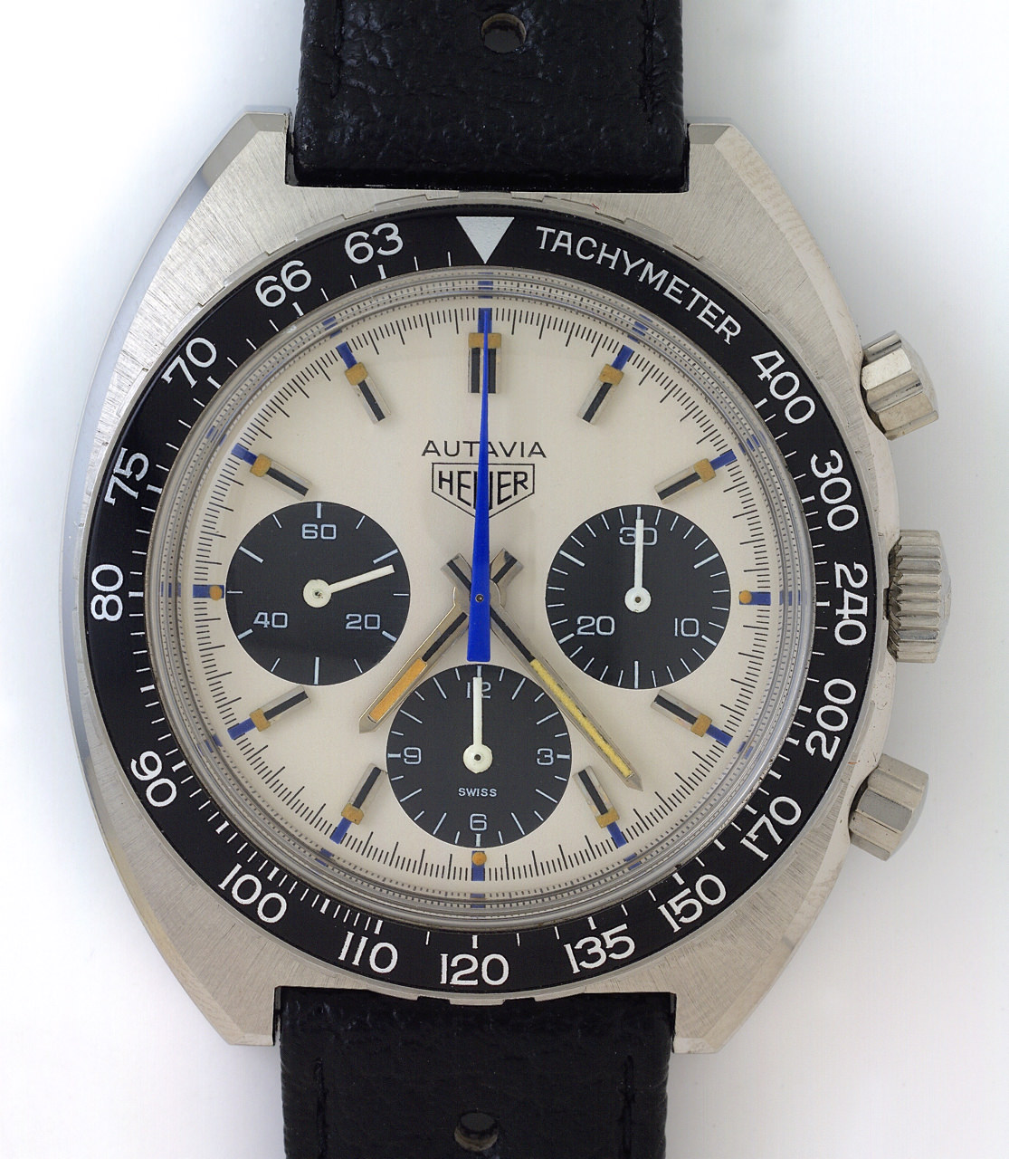 ·From the launch of the automatic Calibre 11/ 12 in 1969, the manual-wind Valjoux movements became the poor cousins of the range throughout the 1970s. Whether it was the Autavia, Carrera or Monaco, when you look at the most collectible models today, they're all automatics. I guess part of this is the preference for Heuer's own movement, and I also think that the crown on the left is also a drawcard.