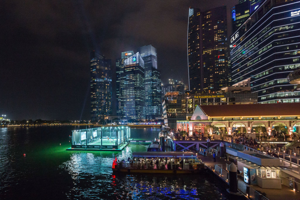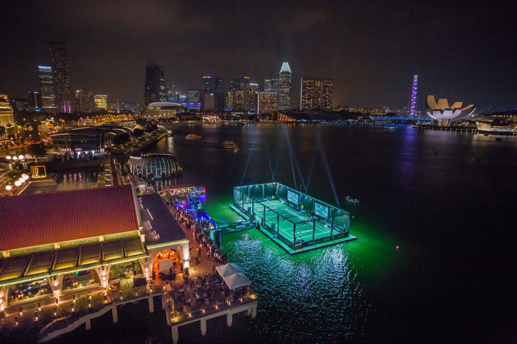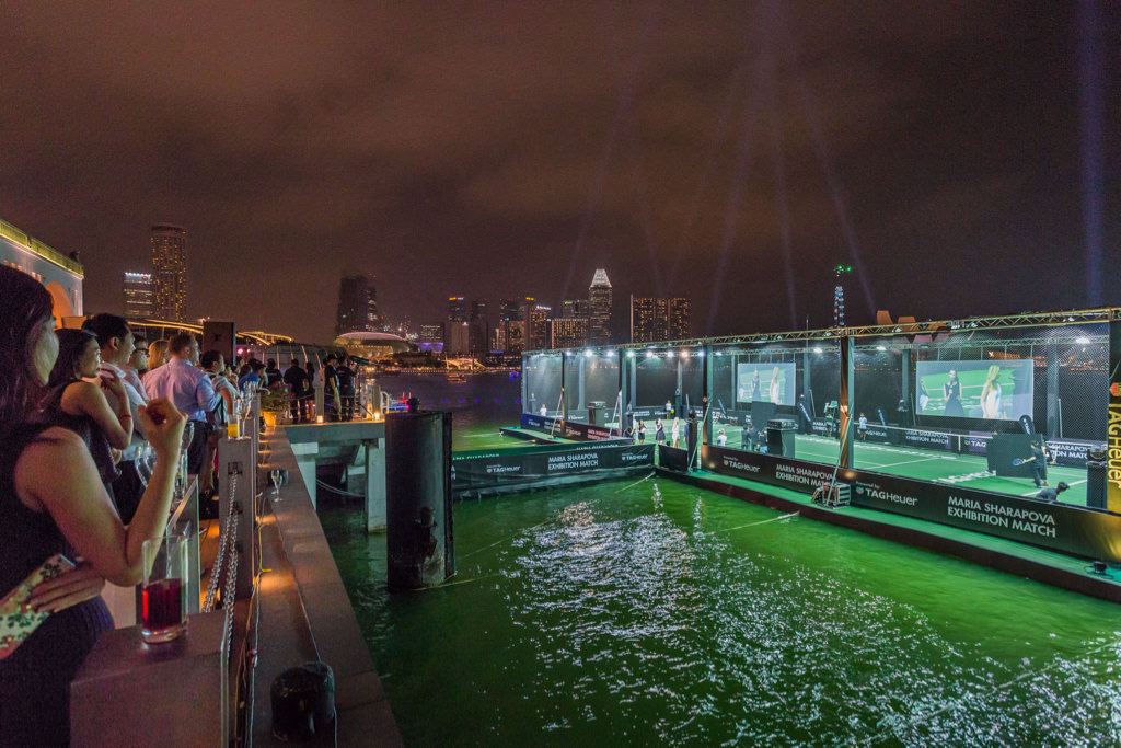 SINGAPORE, OCTOBER 23, 2015 - TAG Heuer unveiled Singapore’s first floating tennis platform at Clifford Pier last night in front of hundreds of invited guests and members of the public who had gathered along the waterfront to catch a glimpse of the spectacle.