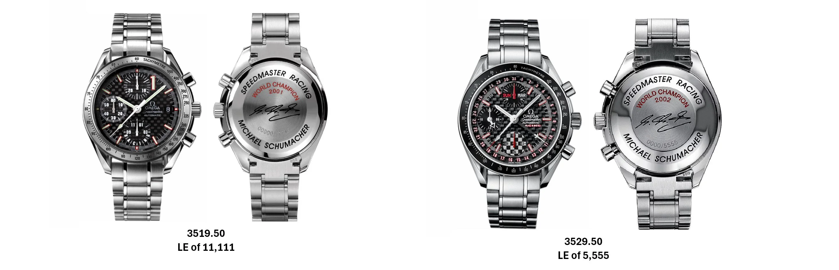 Anyway, I was always aware of the Schumacher Speedmaster - and its various incarnations - but never truly appreciated it. Watches played a large role Schumacher's life and he was a collector.