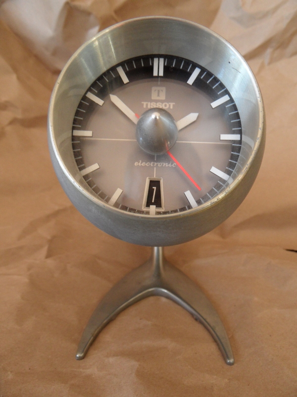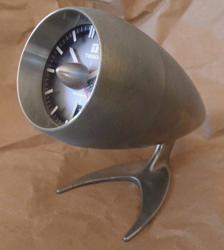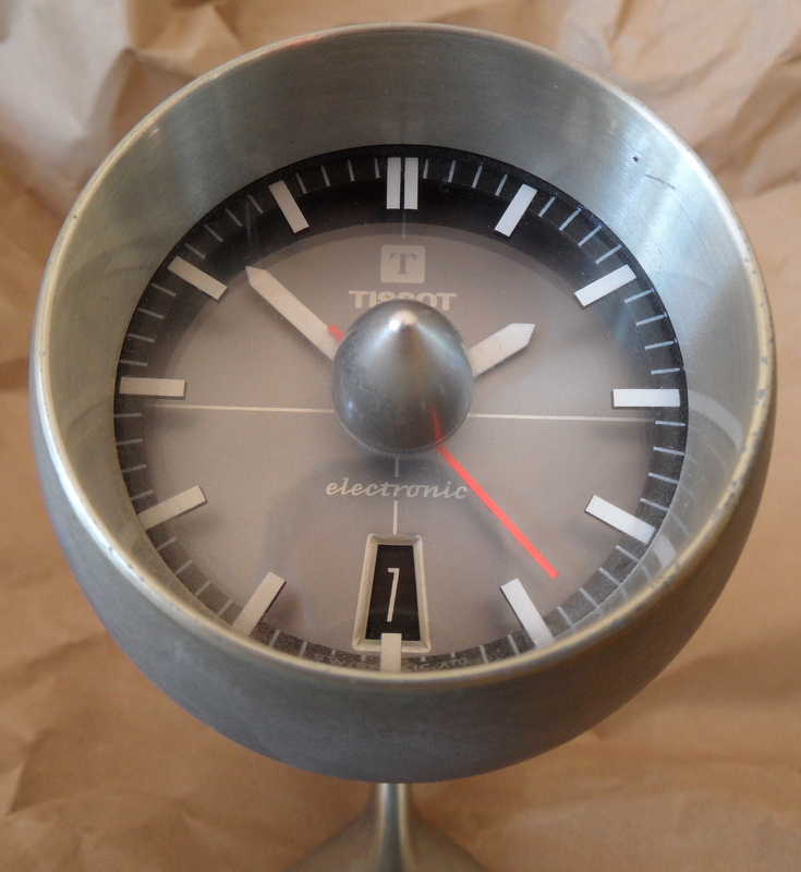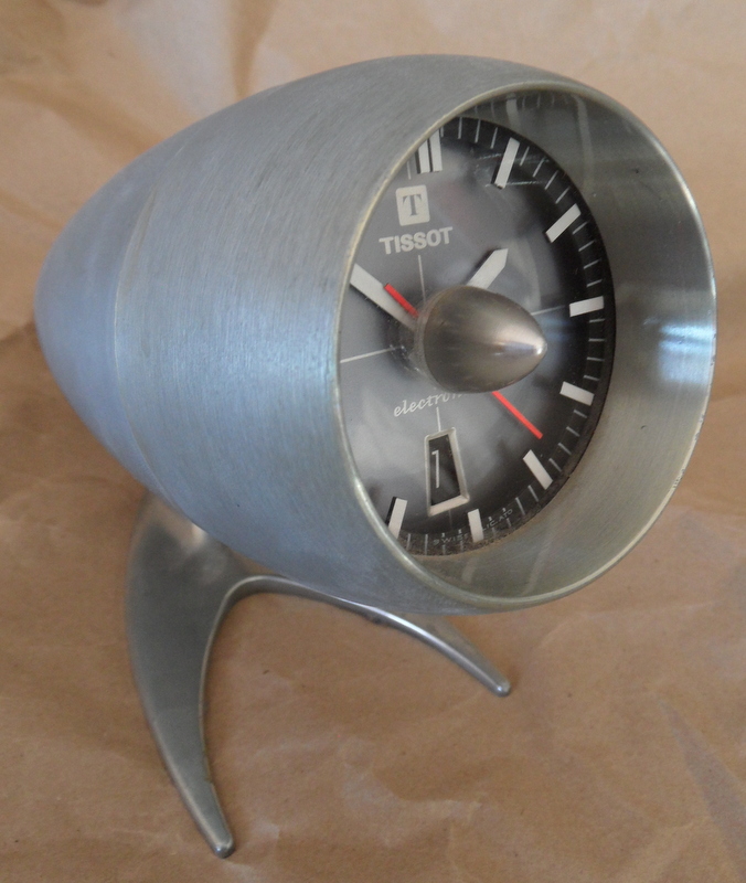 Jet engine inspired, Tissot Electronic, 1x AA battery, electro-mechanical (?), pre-quartz (?) clock.